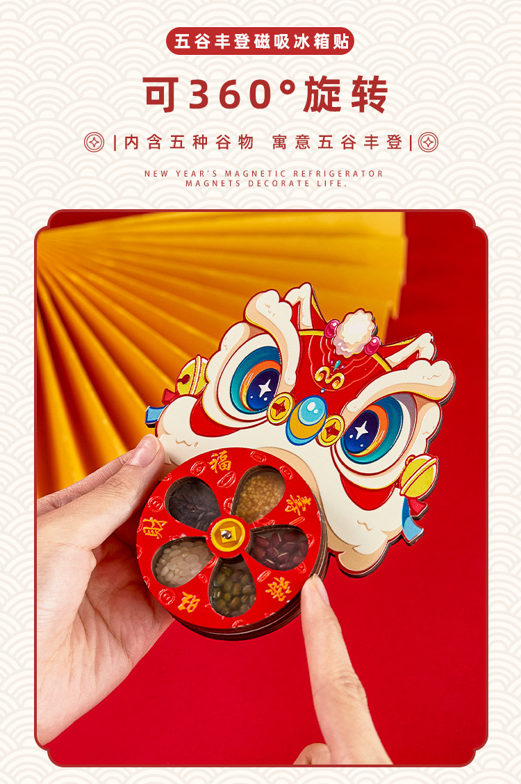 2026 Wugu Fengdeng refrigerator sticker New Year housewarming decoration rotating refrigerator sticker new lion awakening personalized magnetic suction sticker