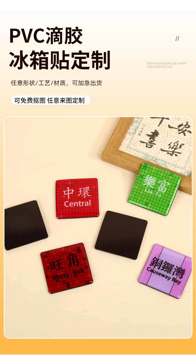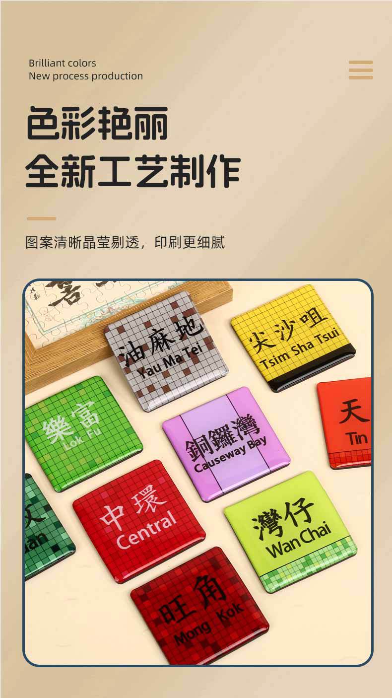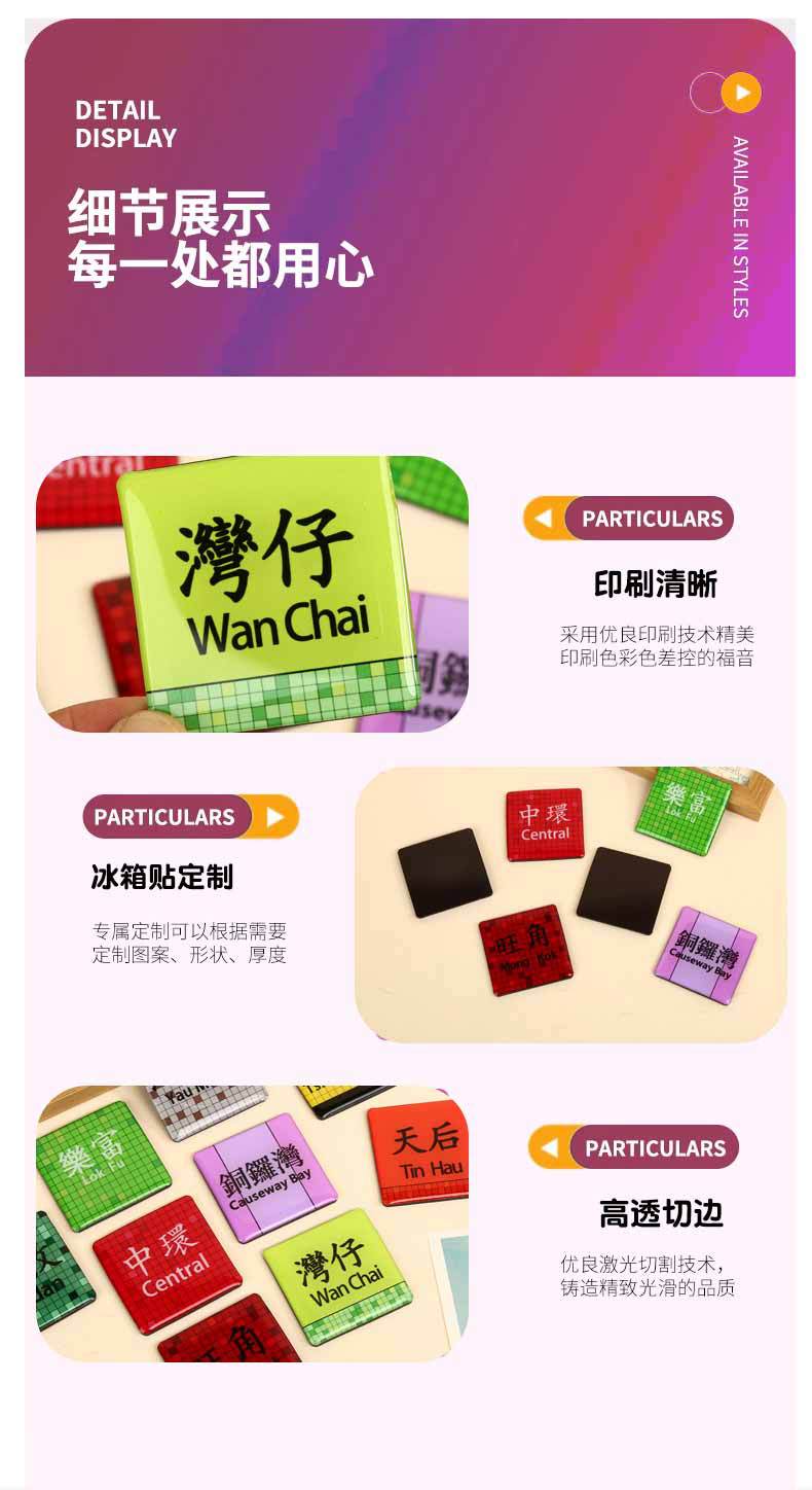 Customized Drip Glue Refrigerator Stickers for Hong Kong Popular Tourist Cities Cultural and Creative Souvenirs Creative Text Magnetic Tape Customization