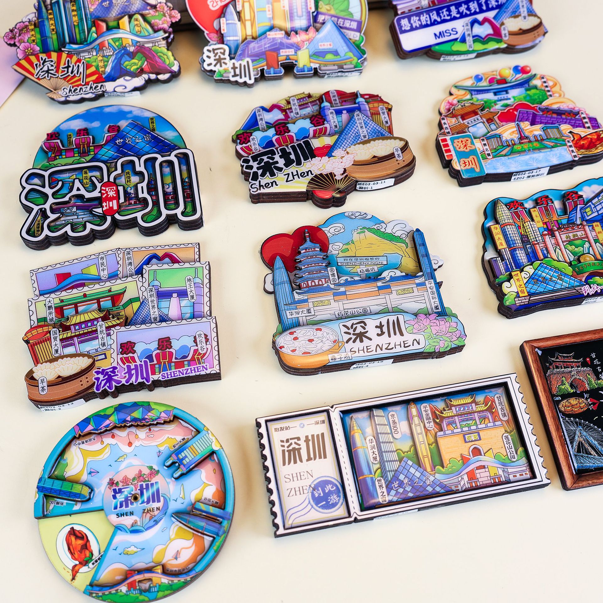 Shenzhen Tourism City Cultural and Creative Refrigerator Stickers Landmark Architecture Shenzhen Happy Valley Window of the World Creative Refrigerator Stickers
