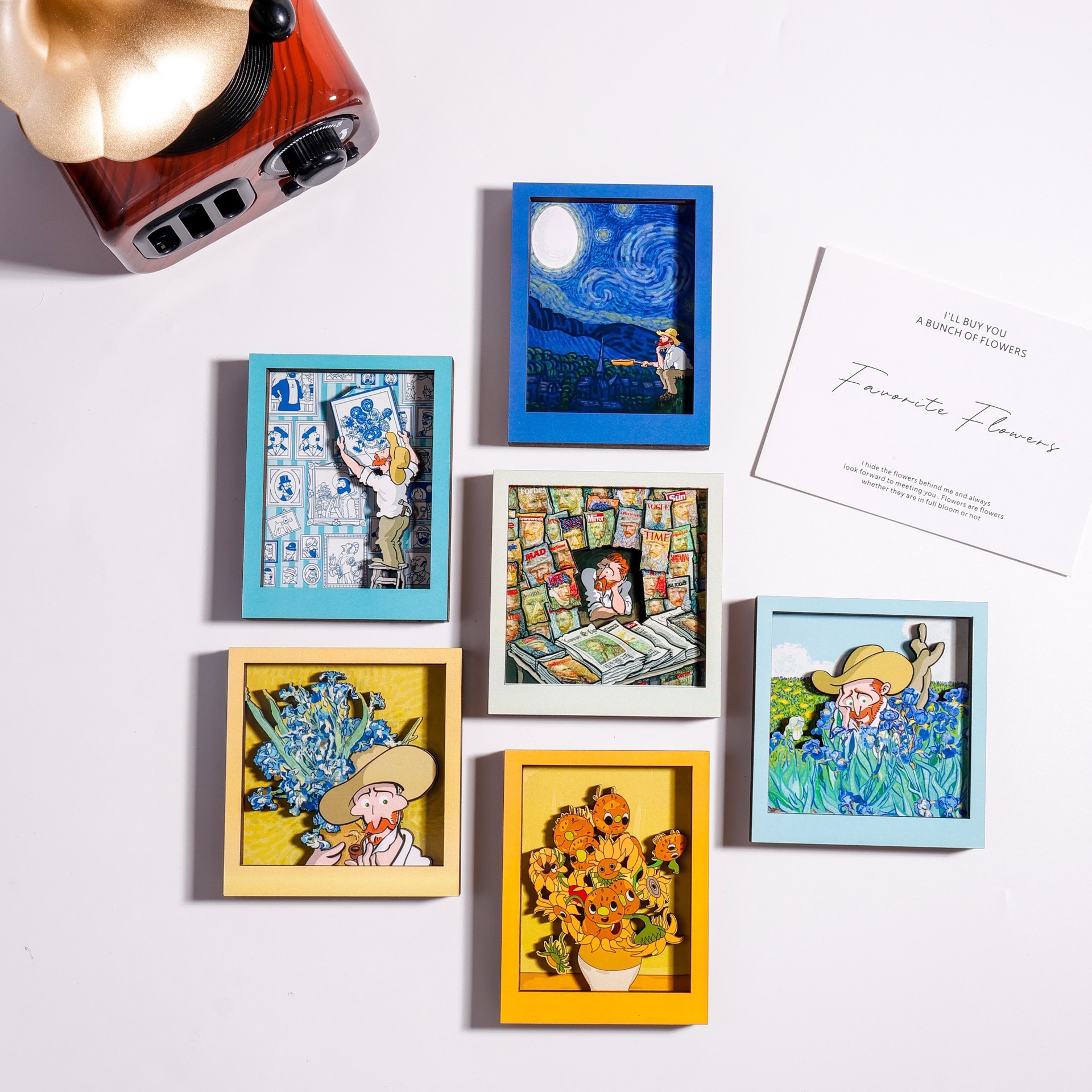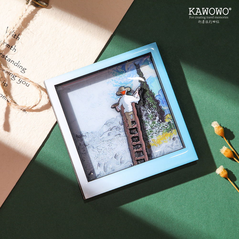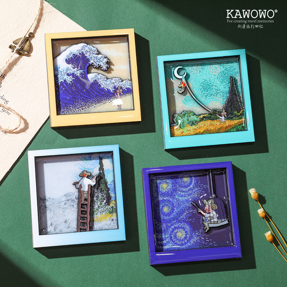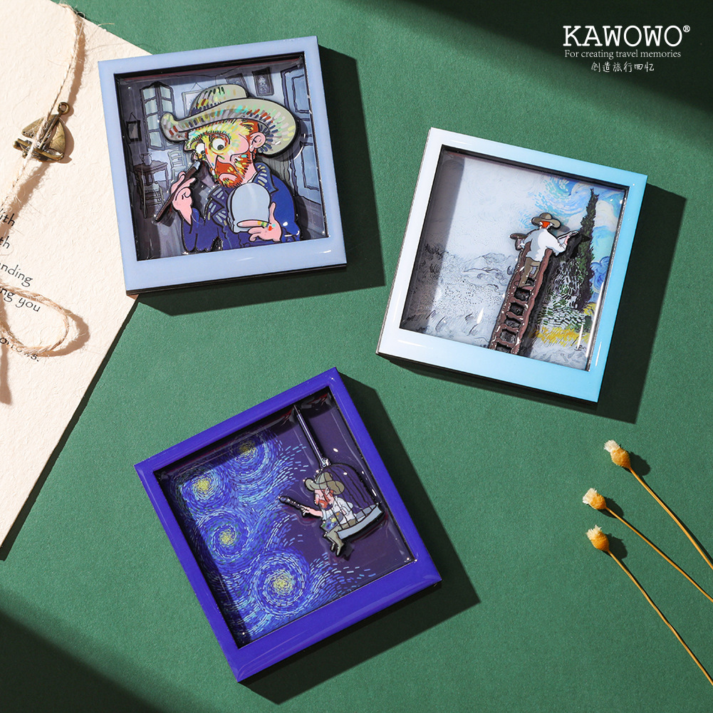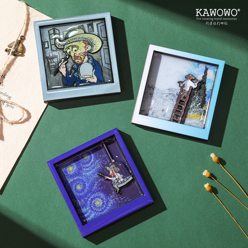 Wooden cute cartoon Van Gogh anime cultural creativity refrigerator sticker personalized creative magnetic sticker refrigerator decoration