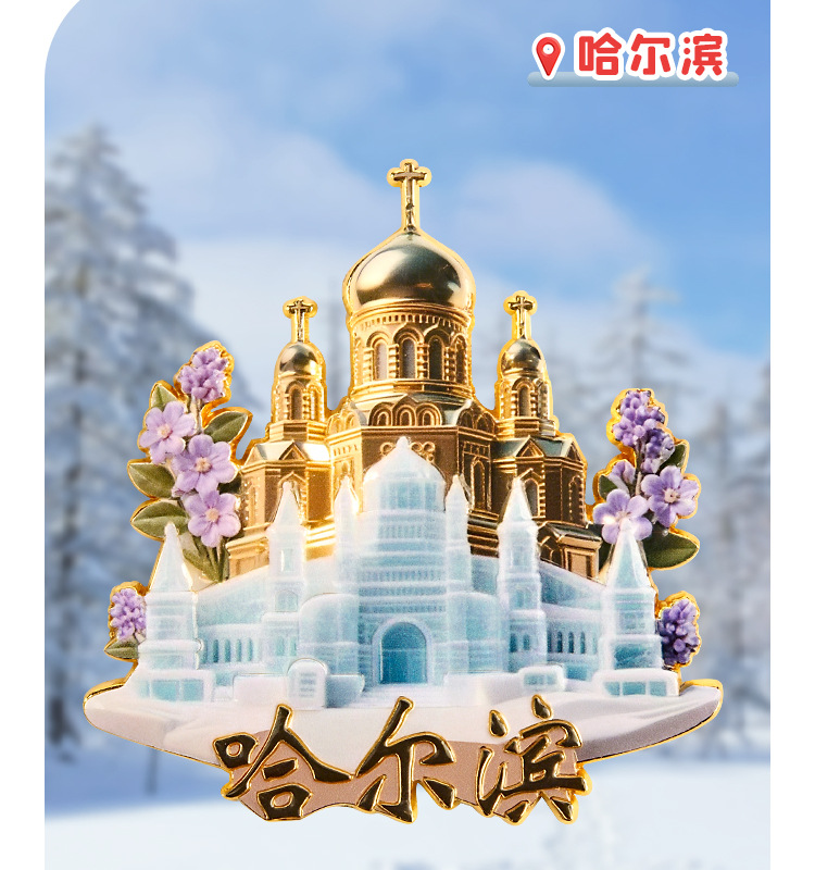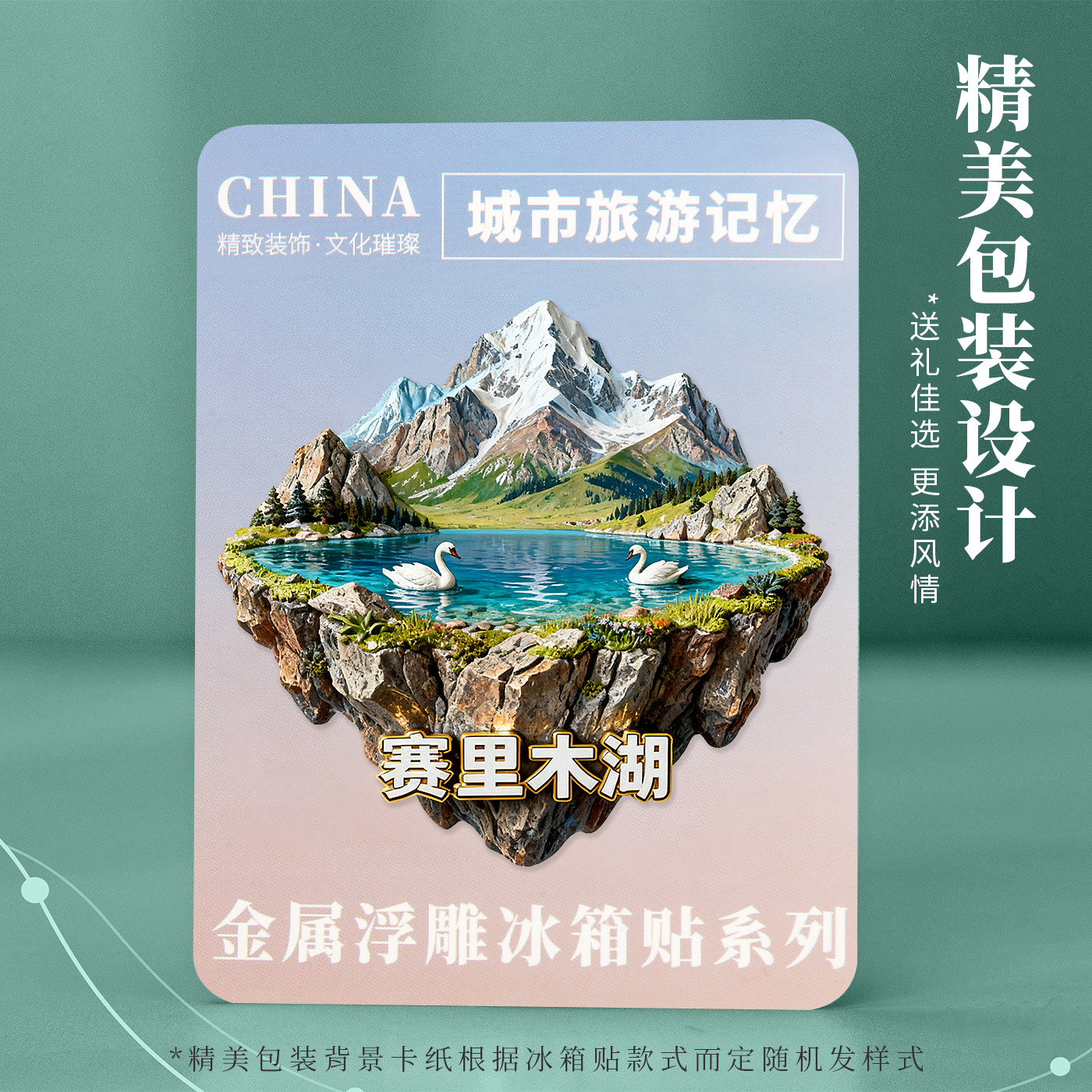 Metal refrigerator stickers, cultural and creative city landmark gifts, magnetic suction stickers, scenic spot magnetic stickers, souvenirs in Sailimu Lake, Xinjiang
