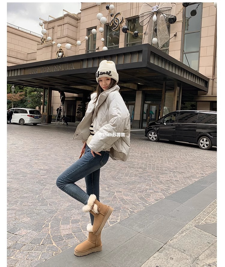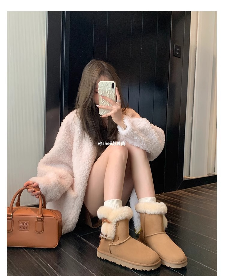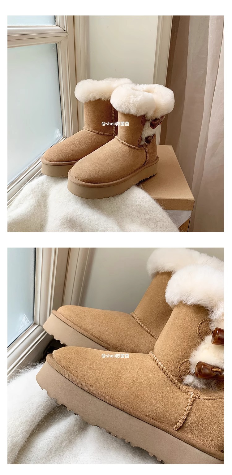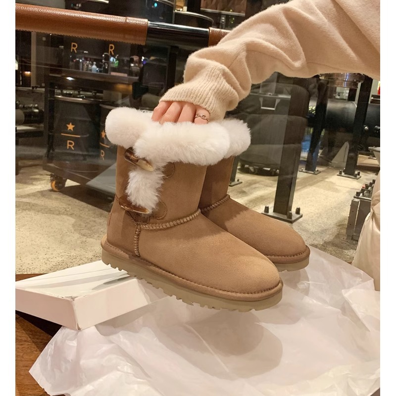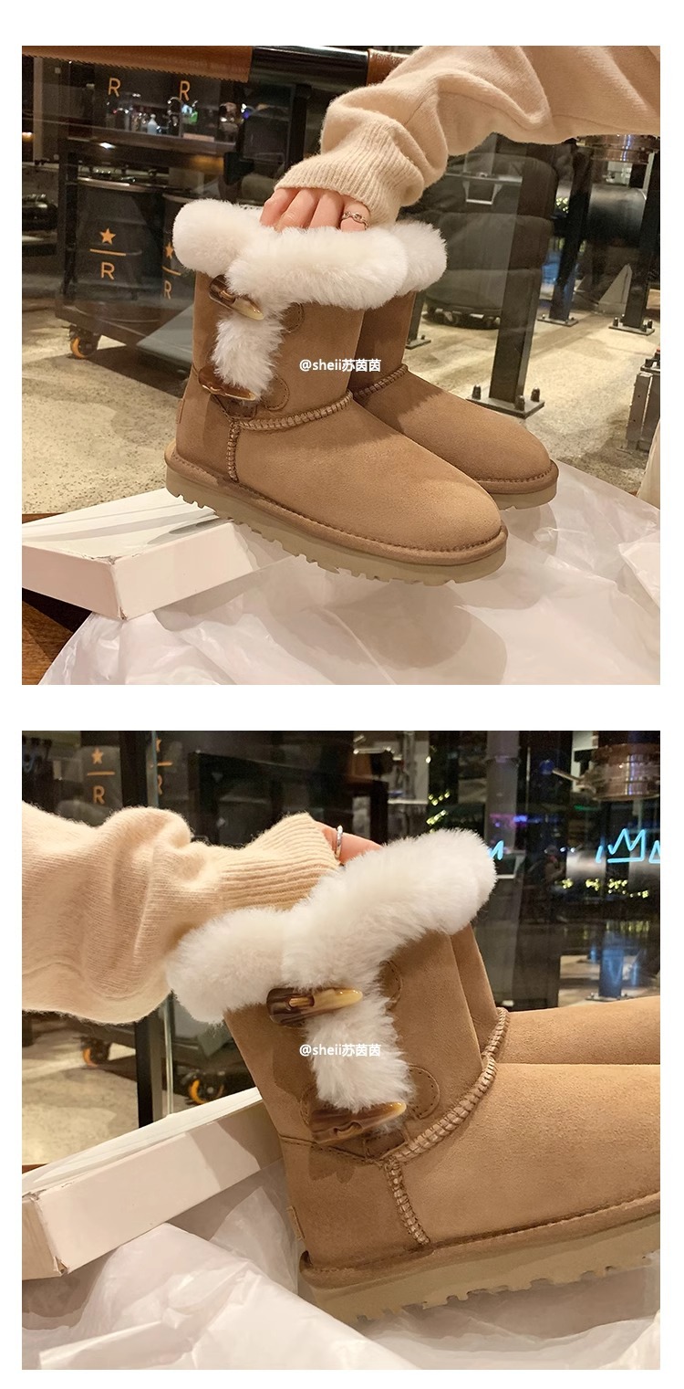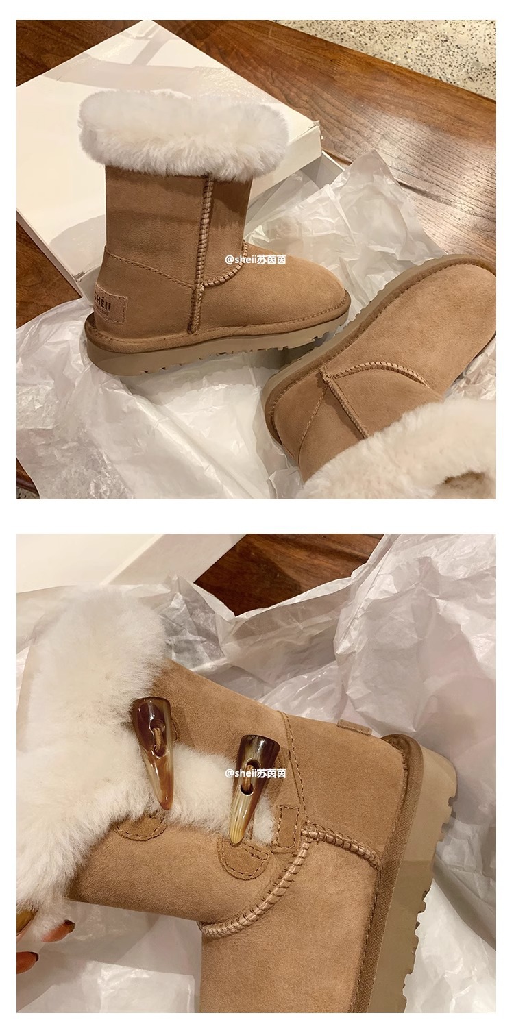 Сампо, овечья шкура, толстый рог, пряжка для снега, женские зимние плюшевые, теплые, кожаные хлопчатобумажные сапоги