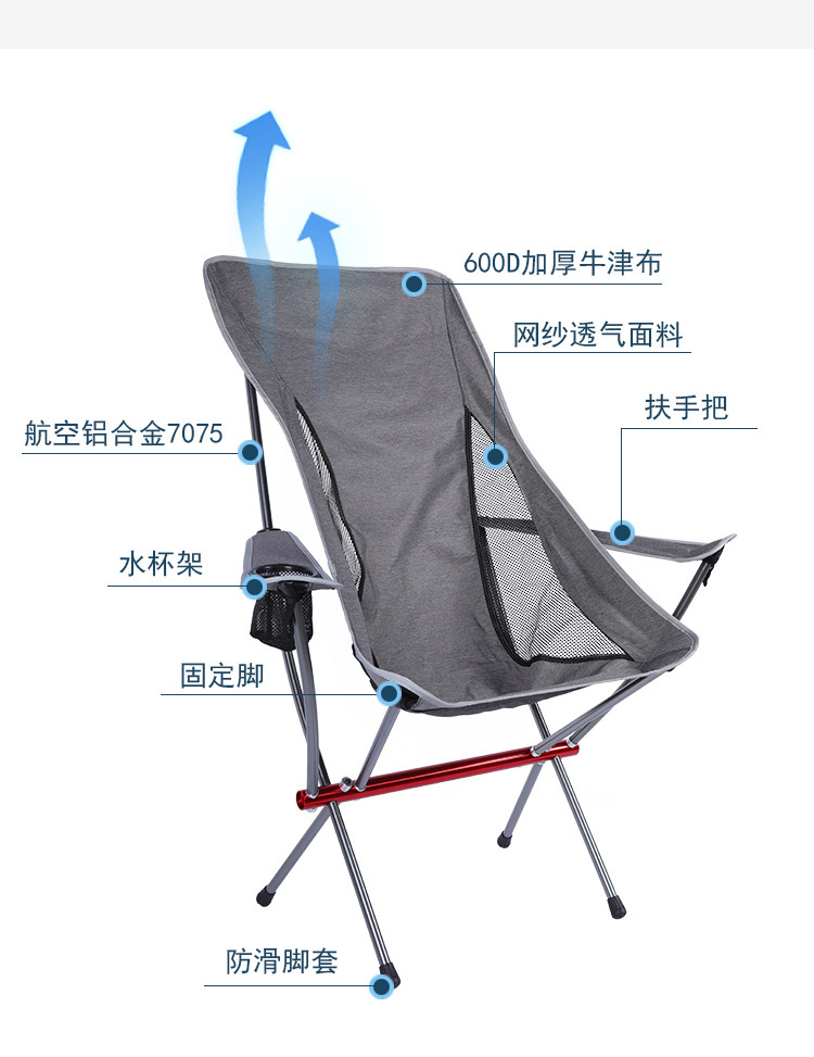 Портативные кресла из алюминиевого сплава на открытом воздухе, кемпинг на пляже, барбекю на пляже, лунное кресло, кресло для отдыха и рыбалки