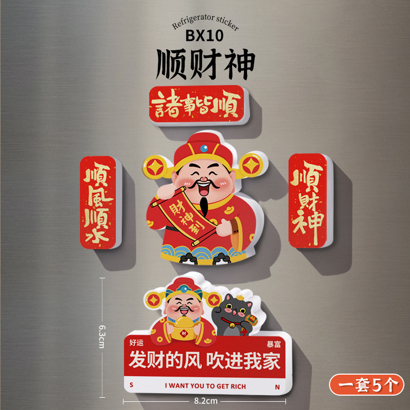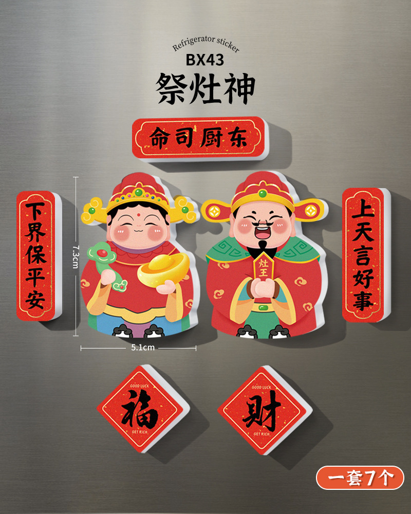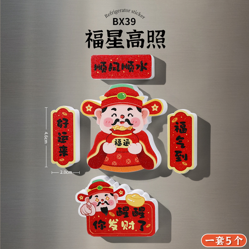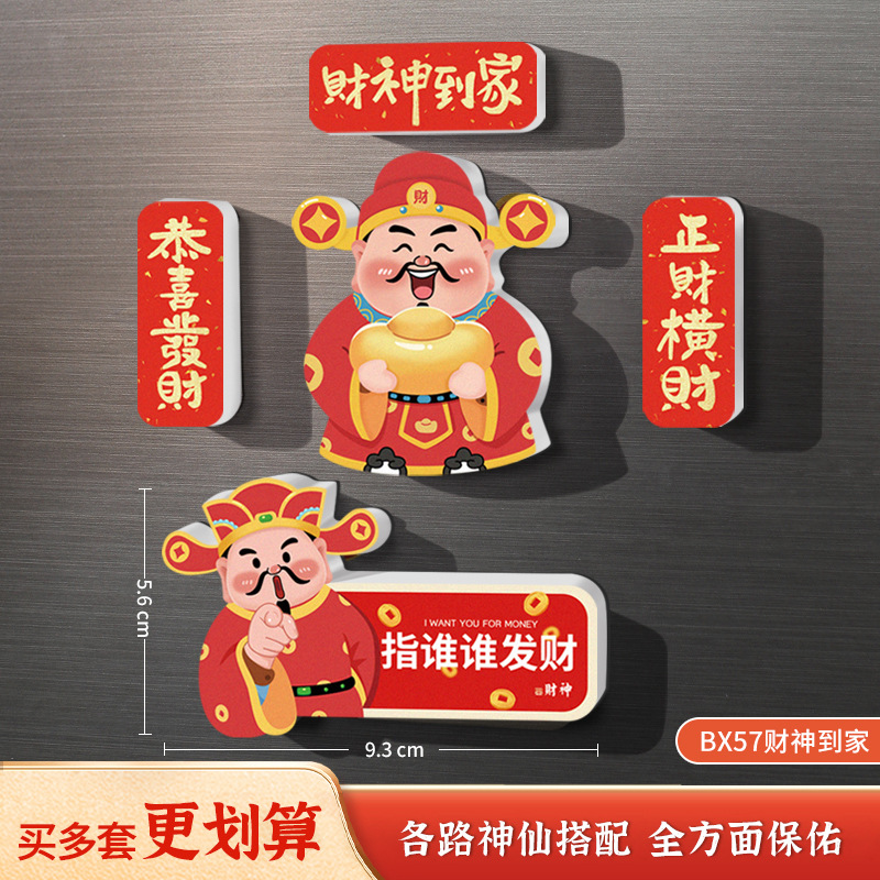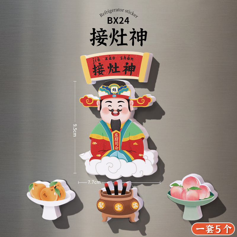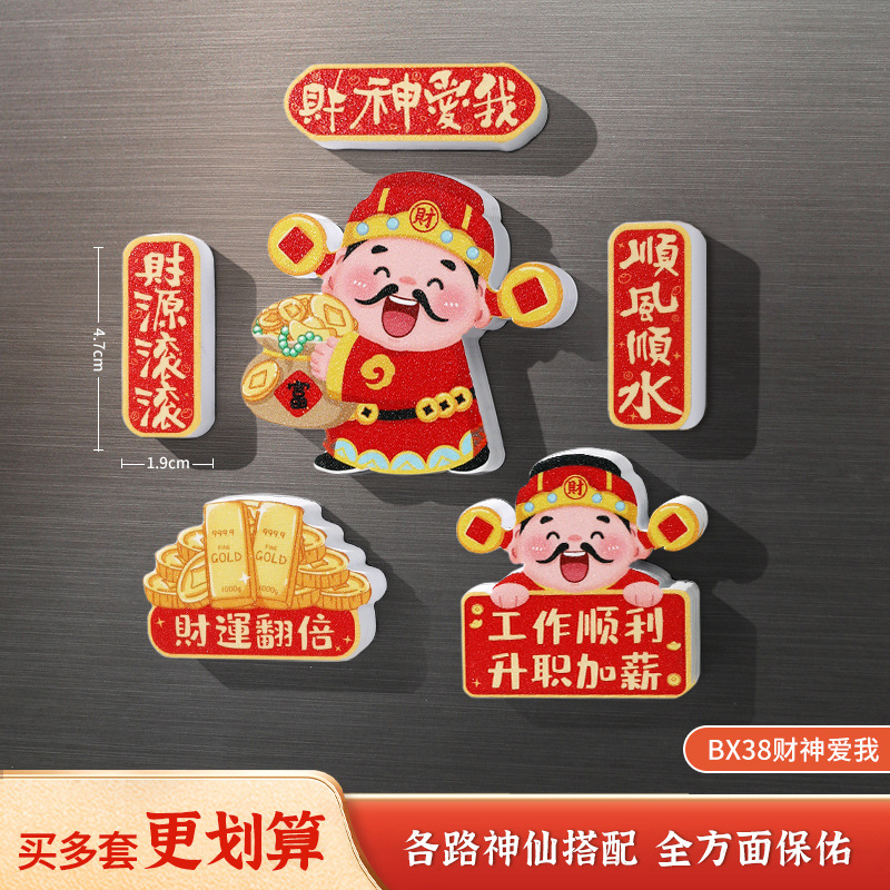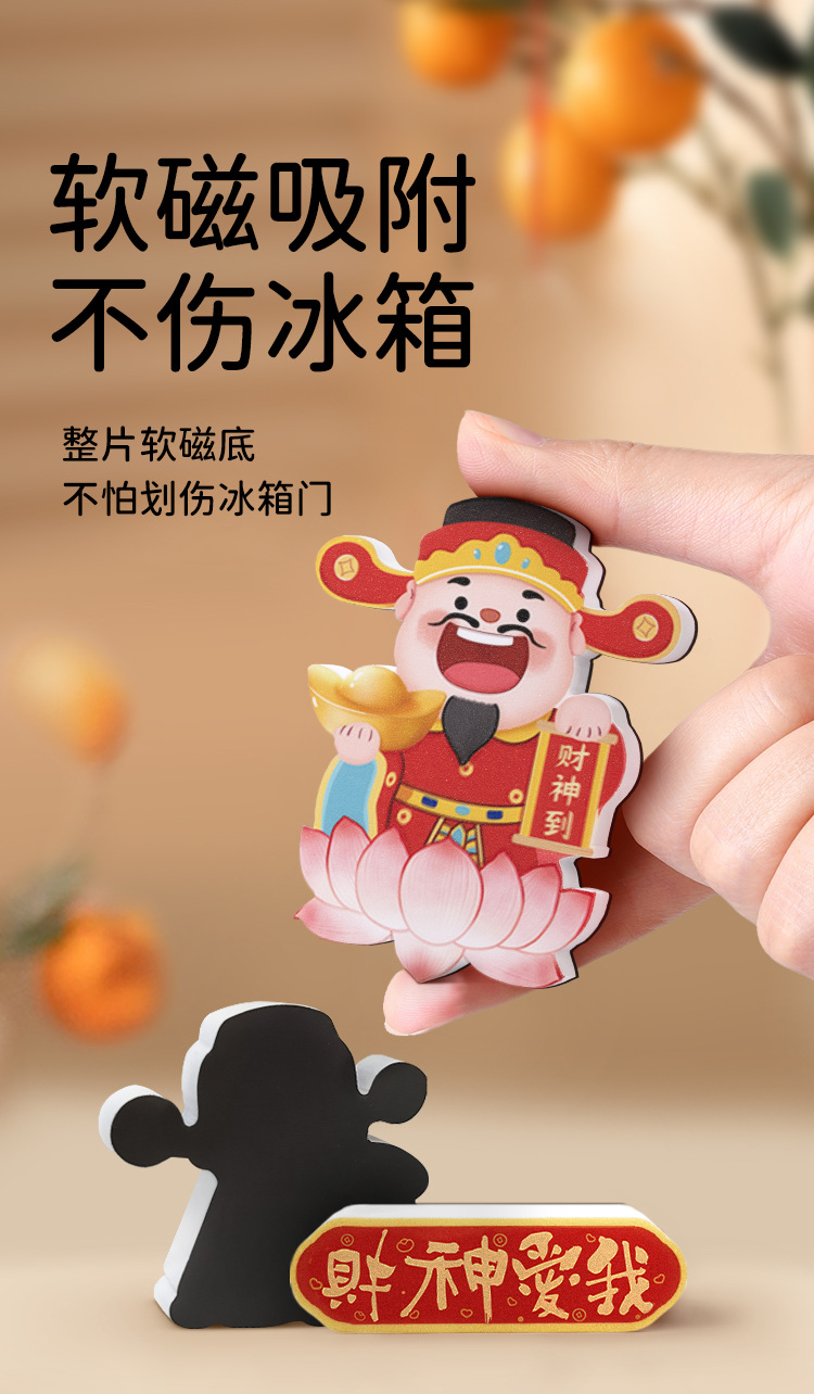 New Year's refrigerator sticker creative three-dimensional magnetic suction God of Wealth God Kitchen God magnetic sticker cartoon cute festive decoration new style