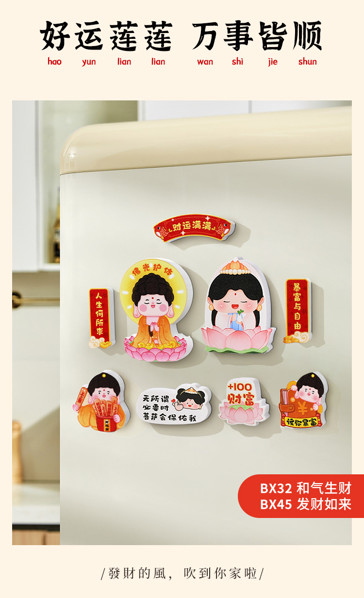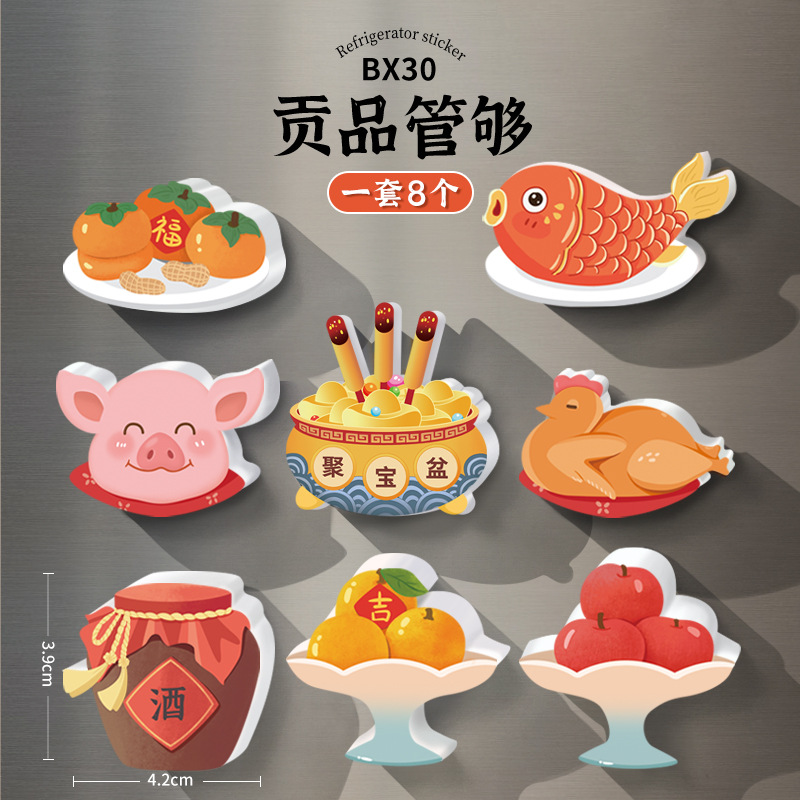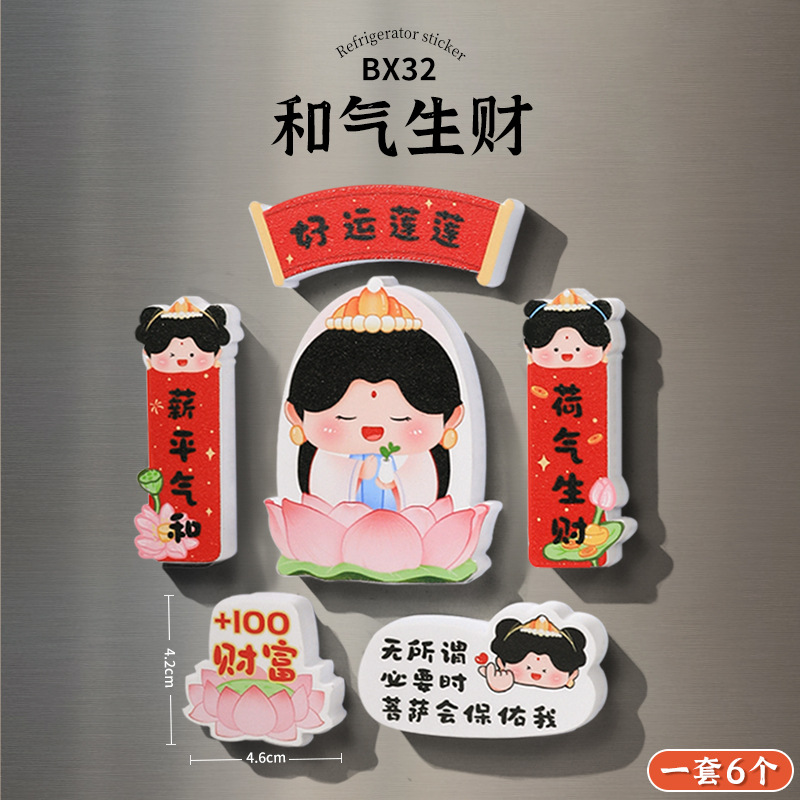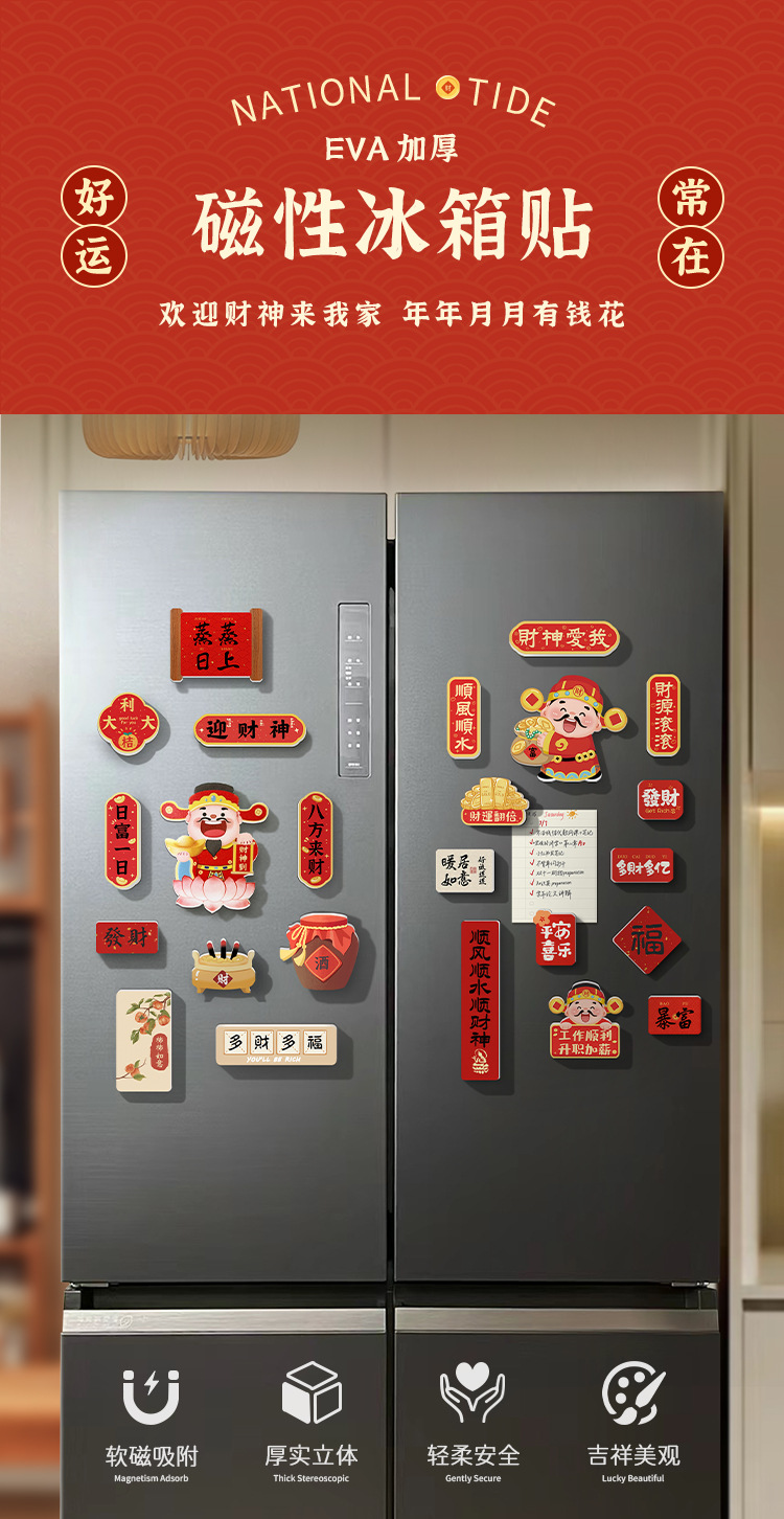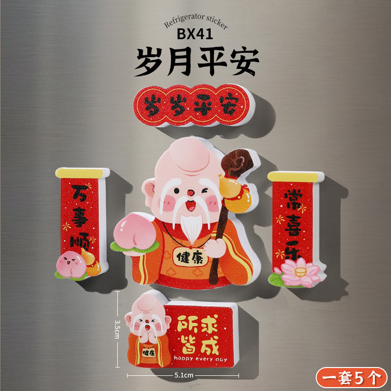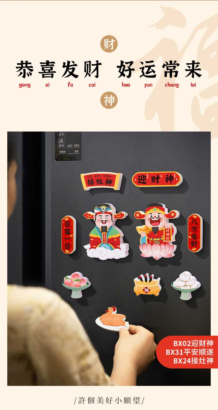 New Year's refrigerator sticker creative three-dimensional magnetic suction God of Wealth God Kitchen God magnetic sticker cartoon cute festive decoration new style