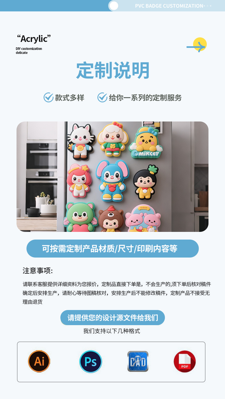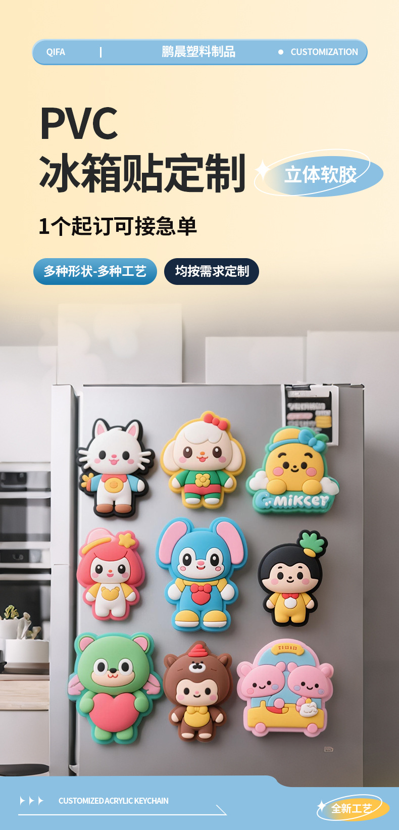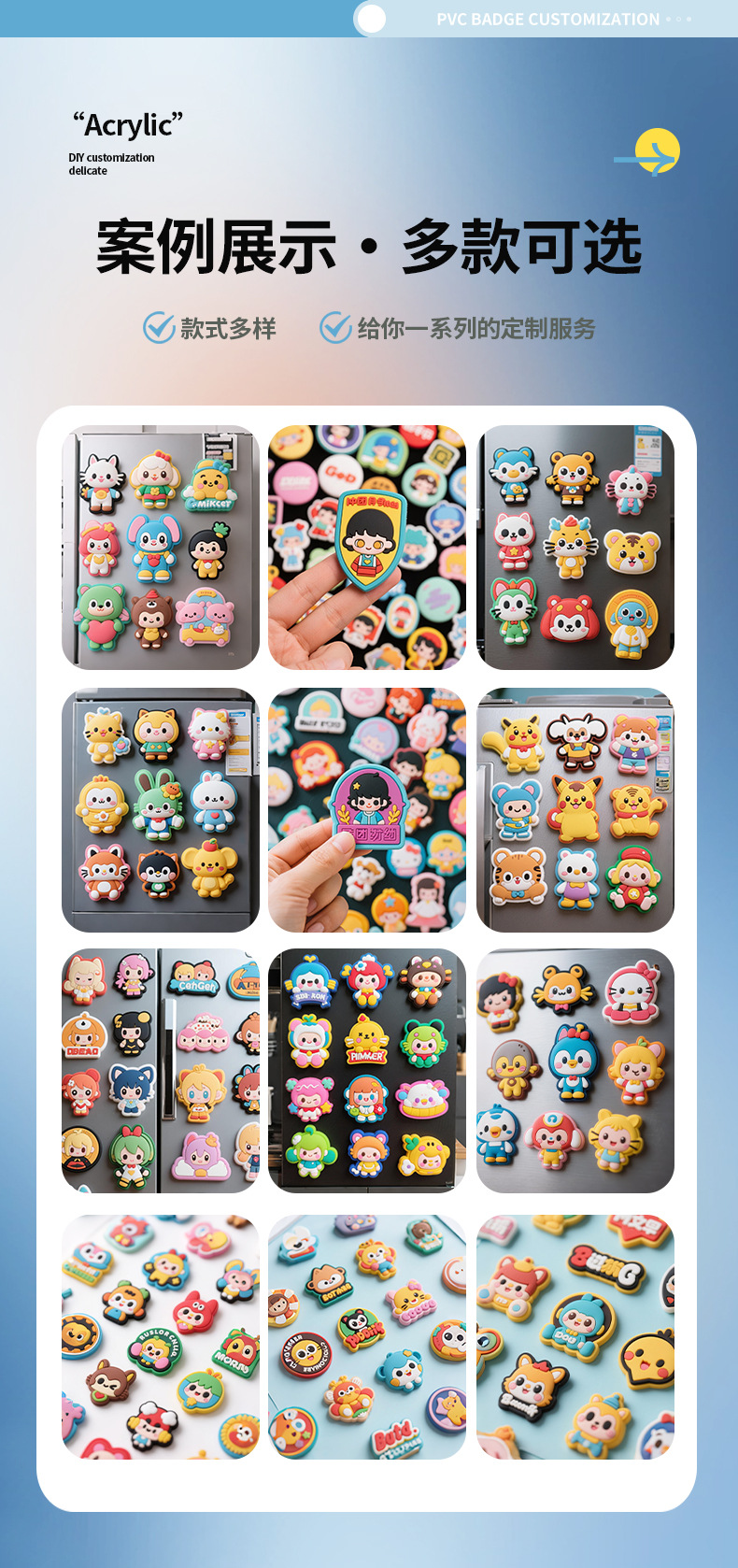 Small order customized PVC creative magnetic suction cultural and creative refrigerator stickers cute cartoon anime decoration soft silicone magnetic tiles