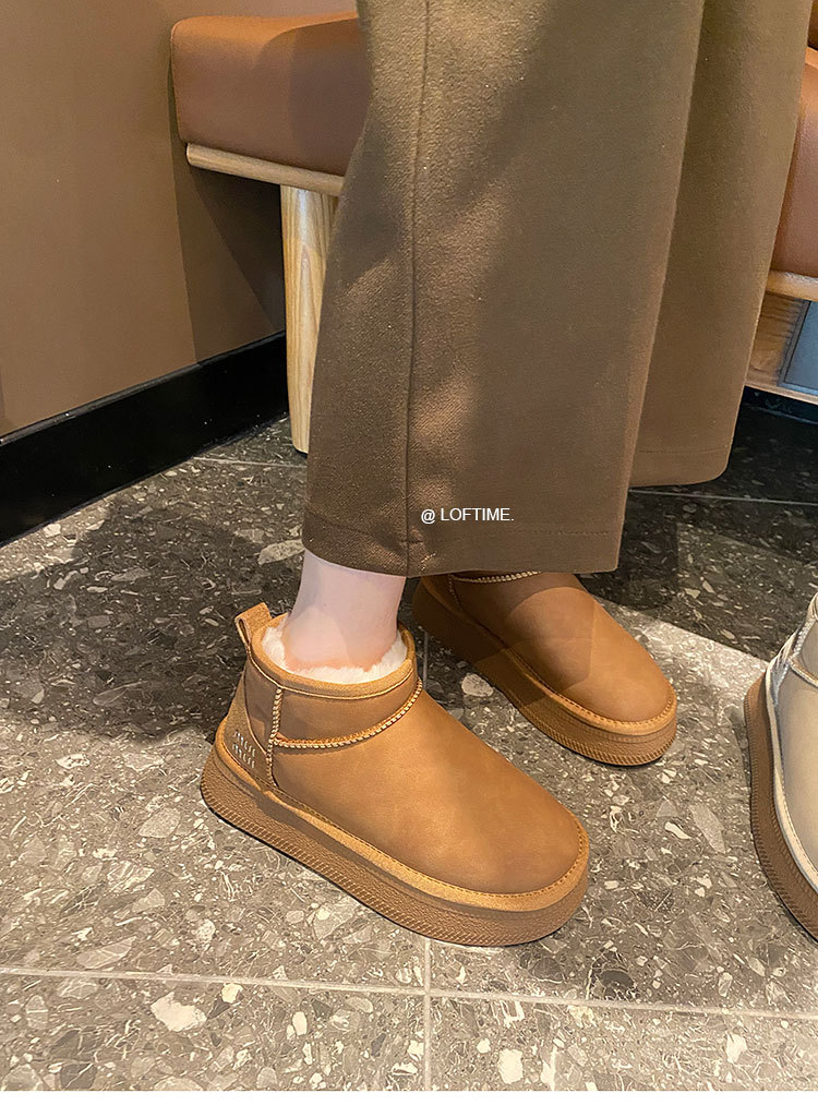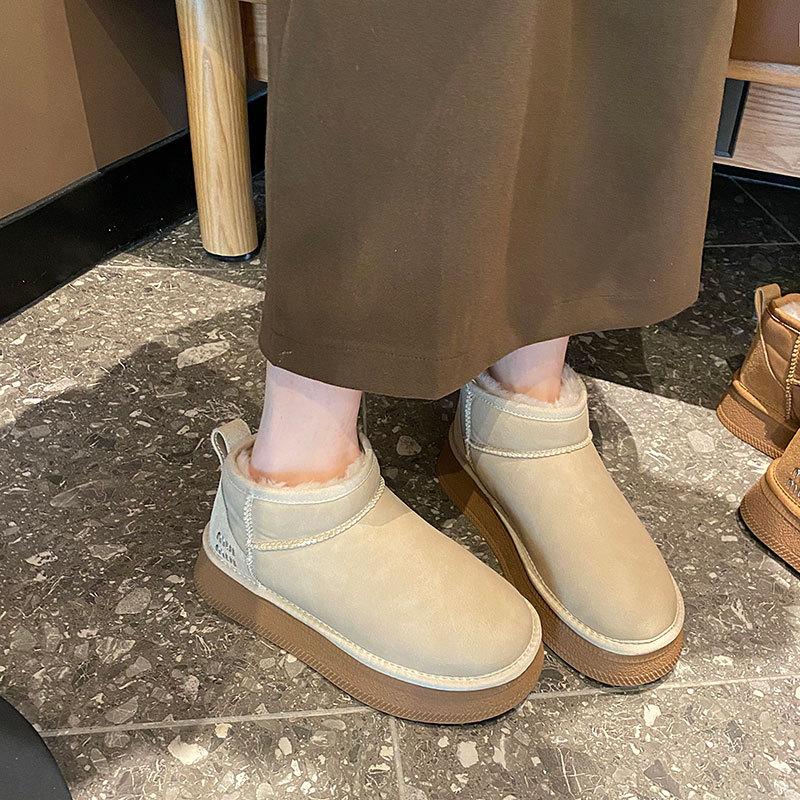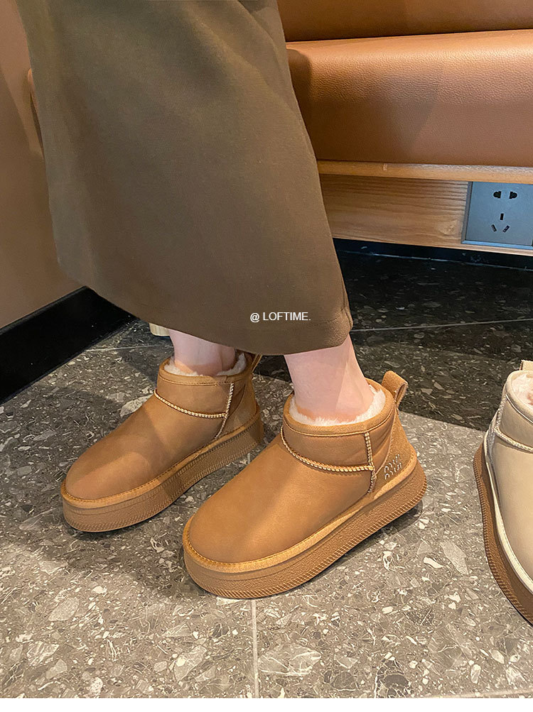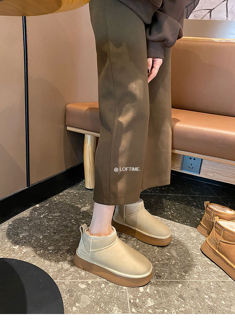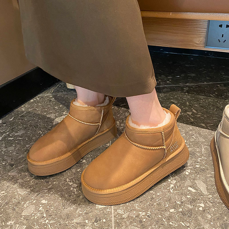 2025 Зима Новый зимний дождь с толстым дном снежных сапог Женская мягкая кожа короткая труба водонепроницаемая толщина хлопчатобумажная обувь прилив