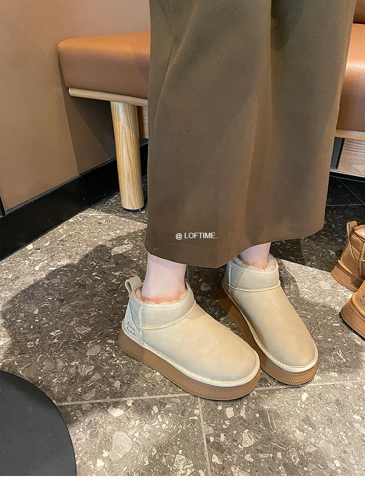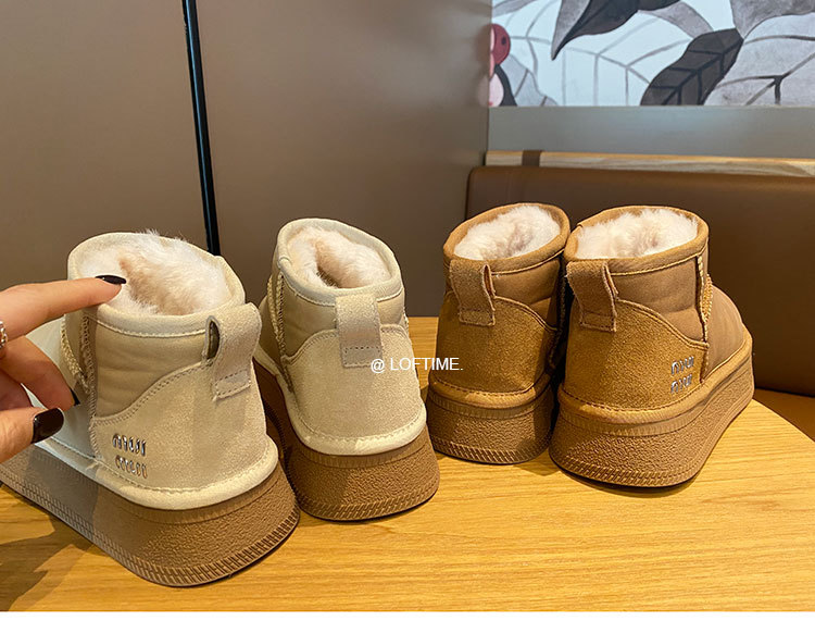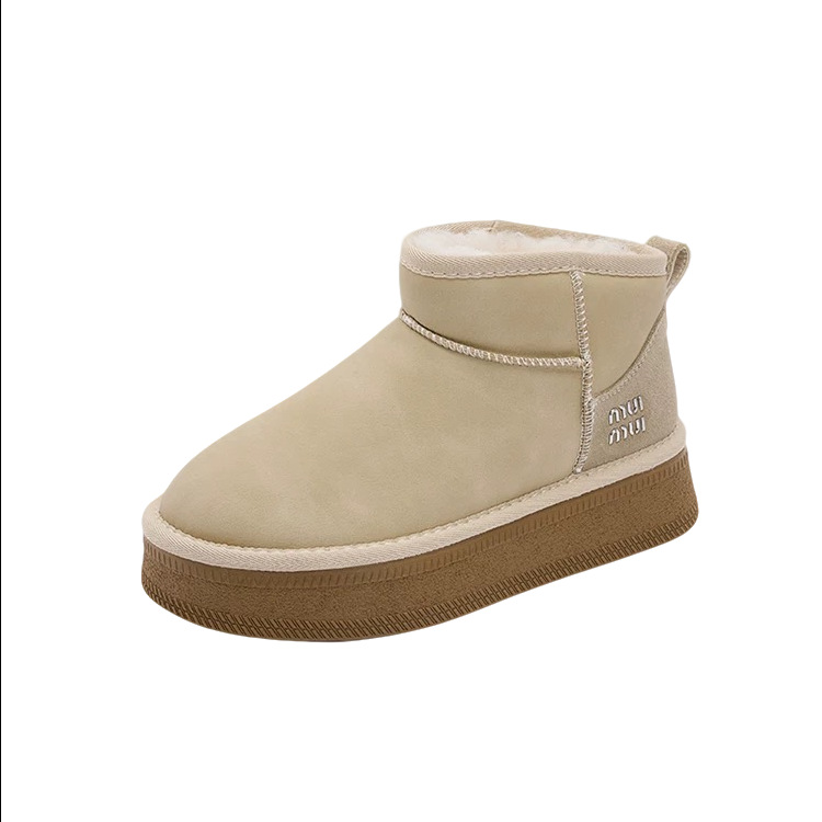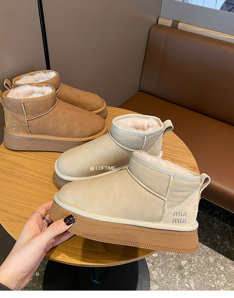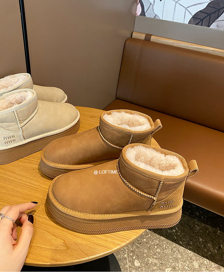 2025 Зима Новый зимний дождь с толстым дном снежных сапог Женская мягкая кожа короткая труба водонепроницаемая толщина хлопчатобумажная обувь прилив