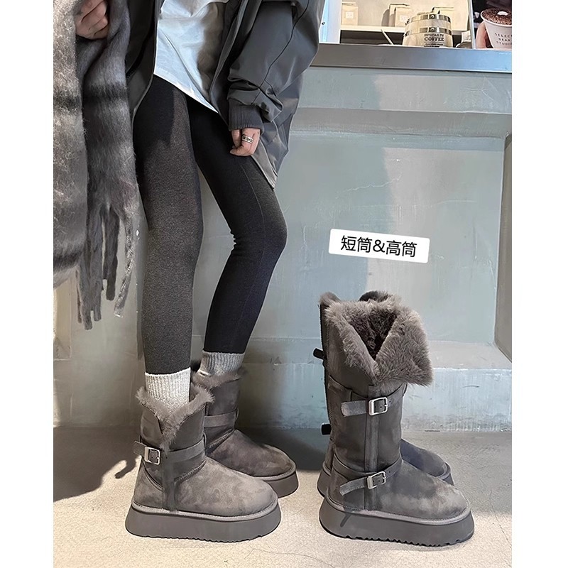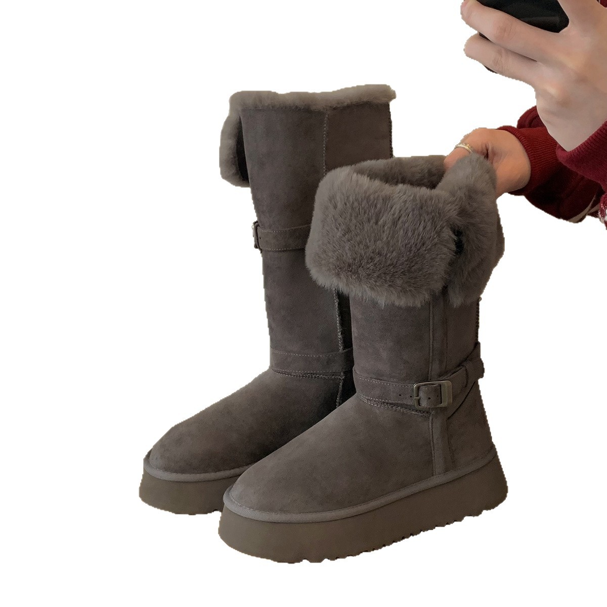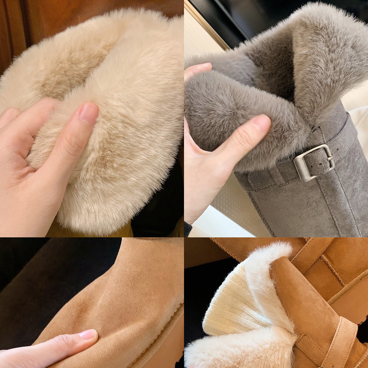 Серые сапоги, женский мех, плюшевые туфли, теплые хлопчатобумажные туфли, сапоги, сапоги.