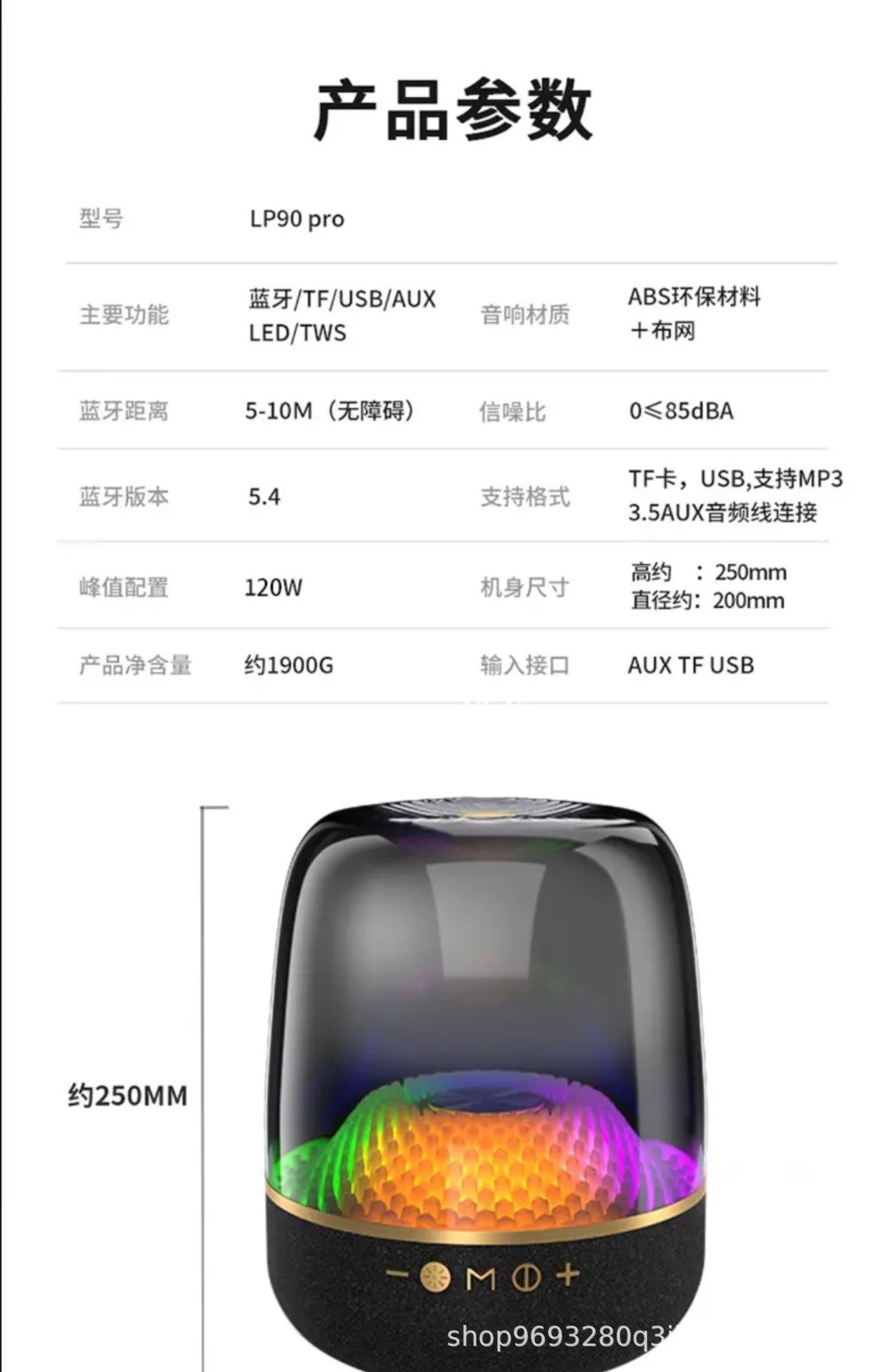 | 外观尺寸 | 208*208*256 |