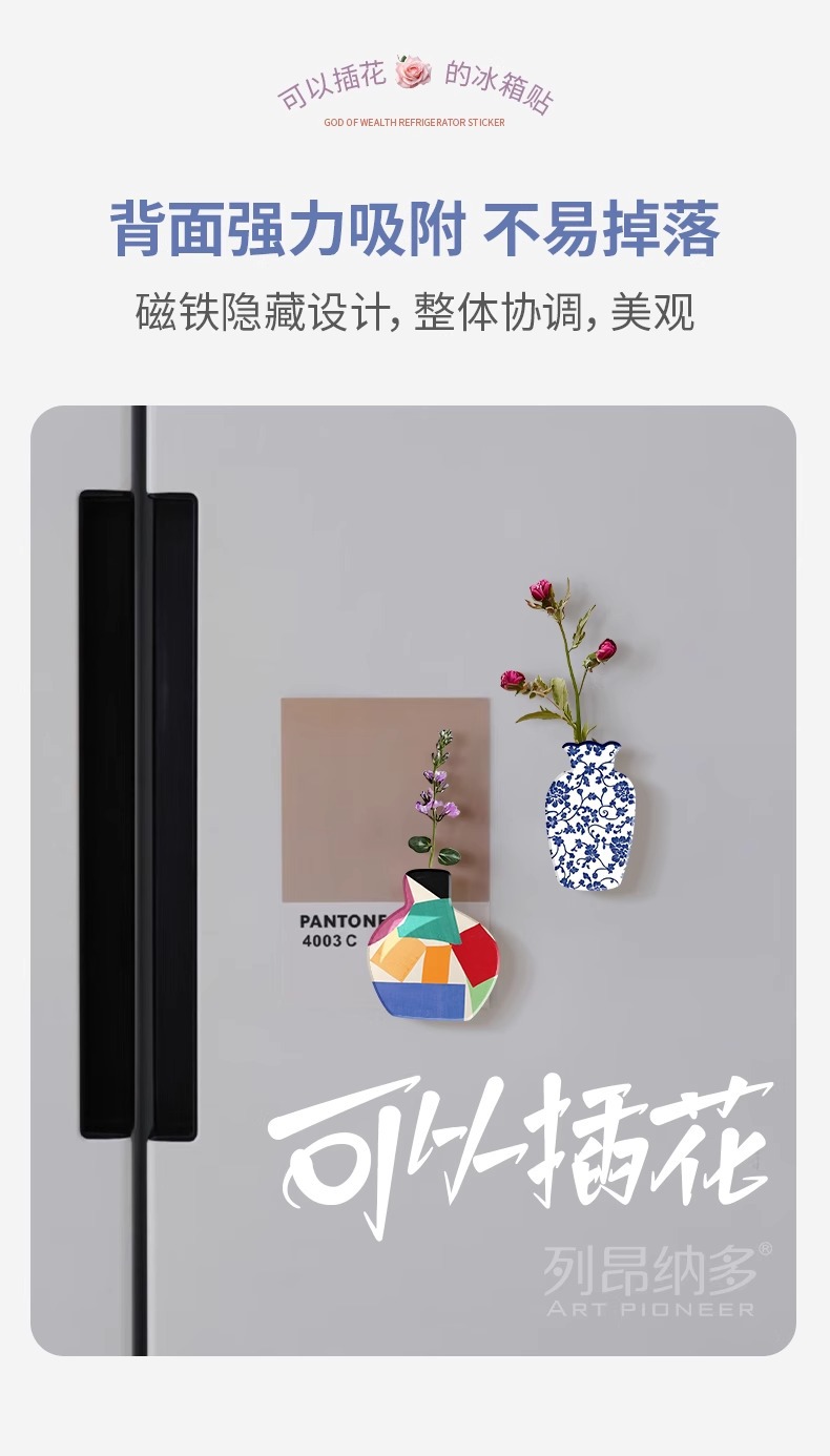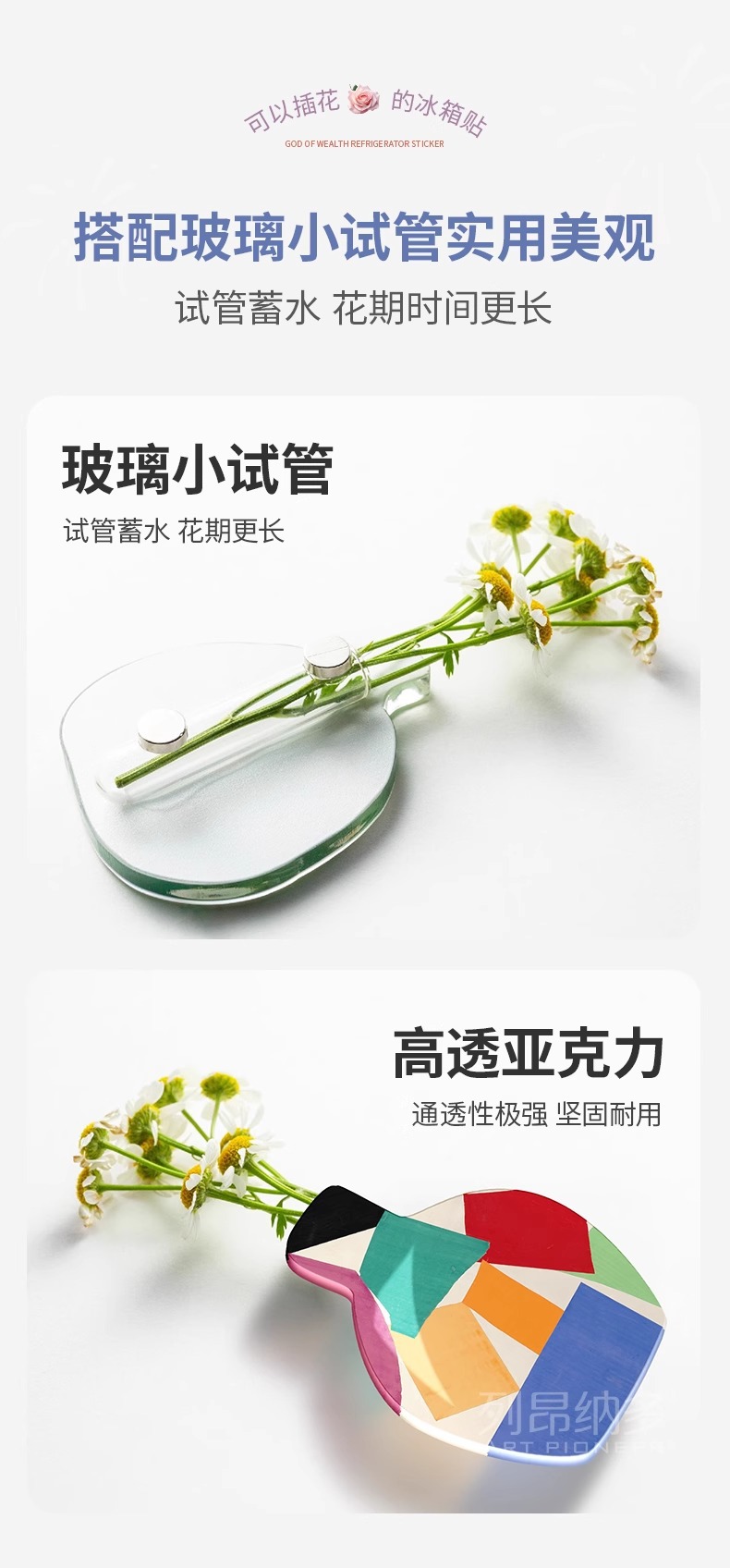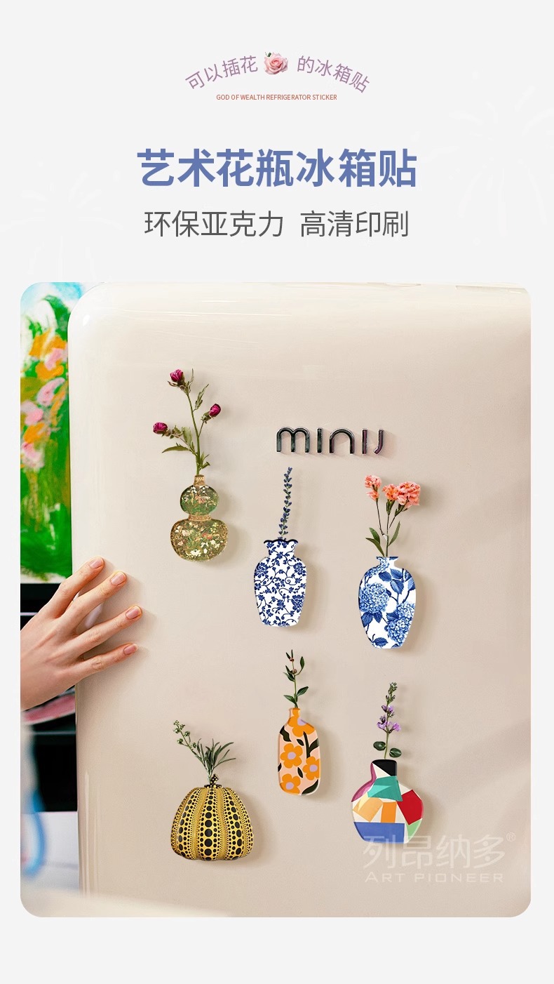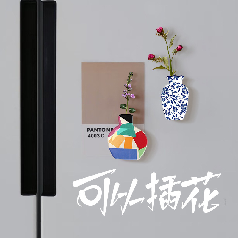 Acrylic magnetic refrigerator sticker 3D 2025 new creative refrigerator decoration magnetic sticker vase can be inserted with flowers magnetic sticker