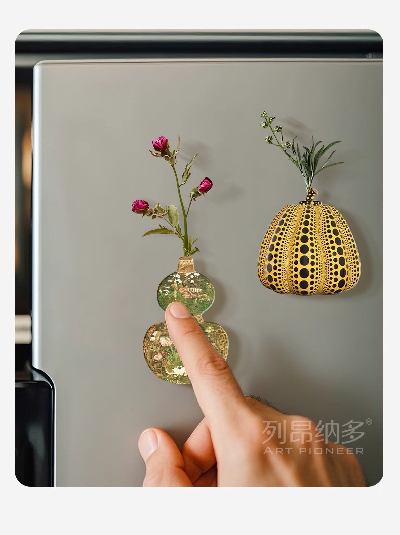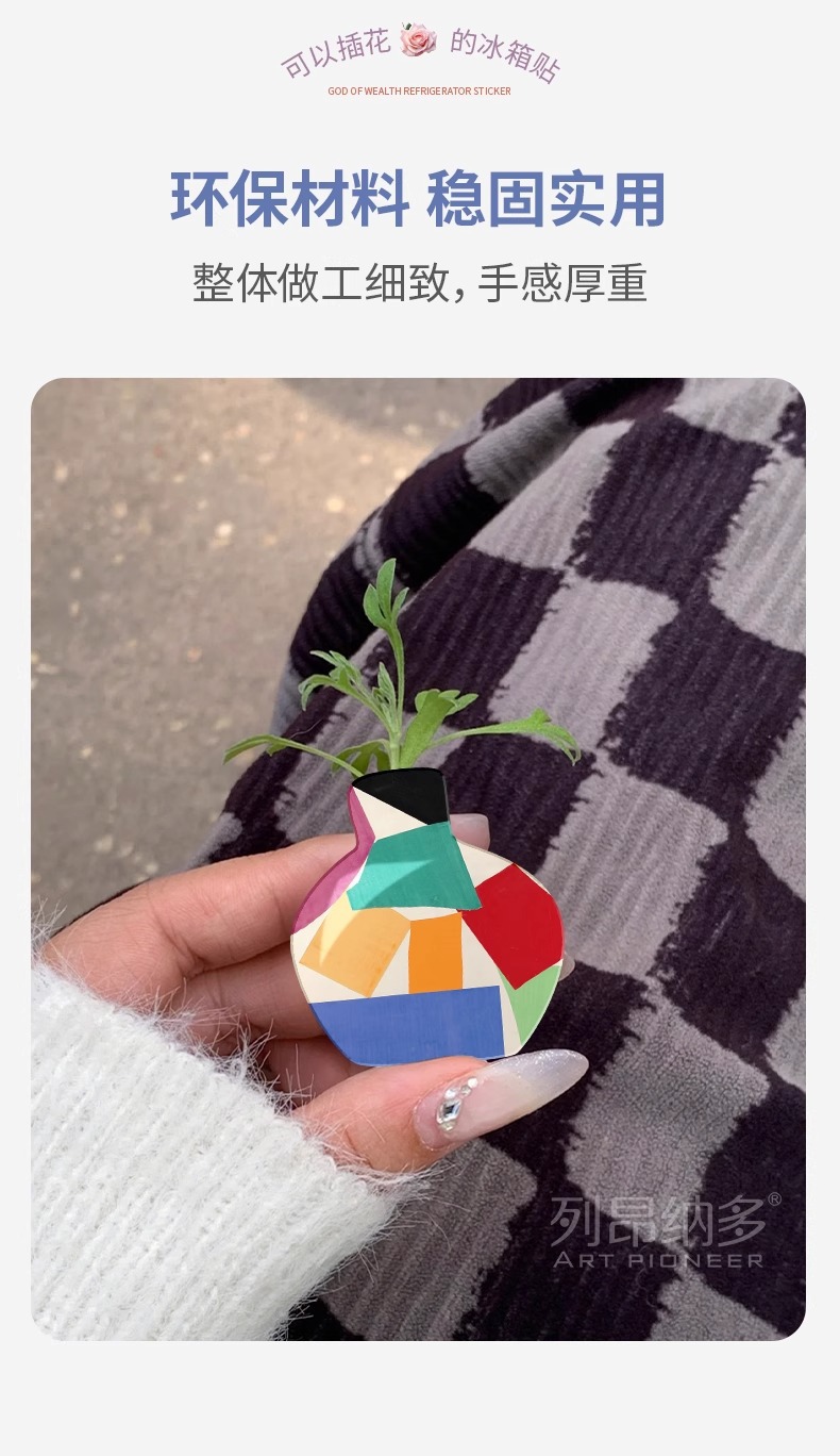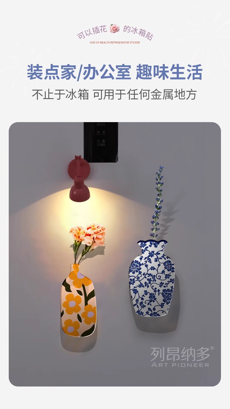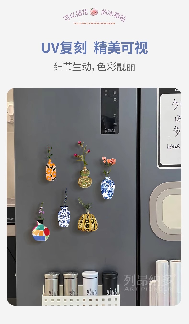 Acrylic magnetic refrigerator sticker 3D 2025 new creative refrigerator decoration magnetic sticker vase can be inserted with flowers magnetic sticker