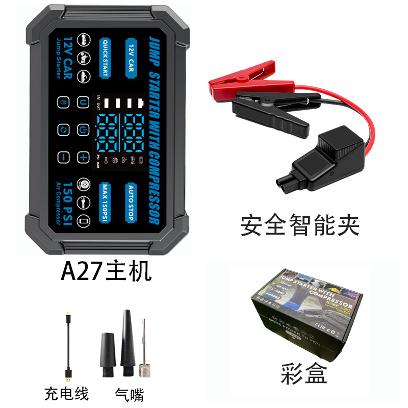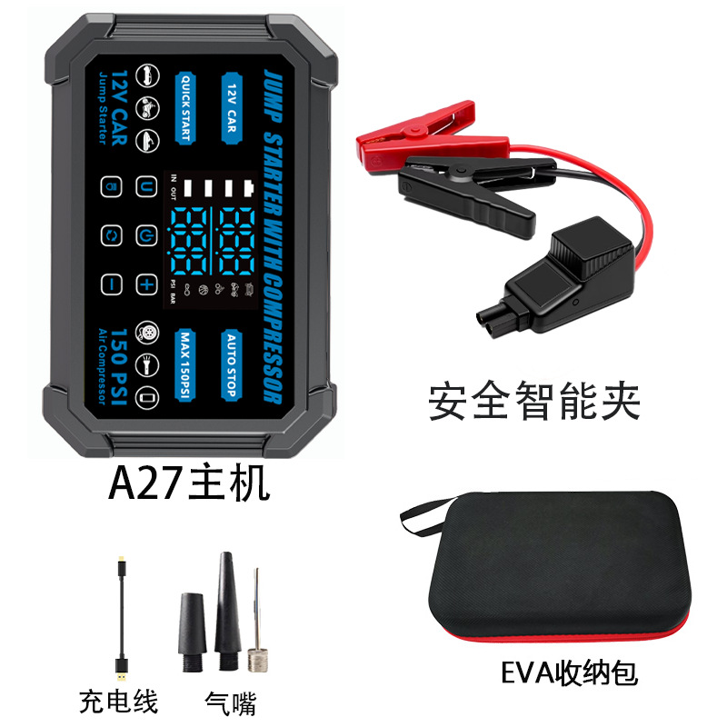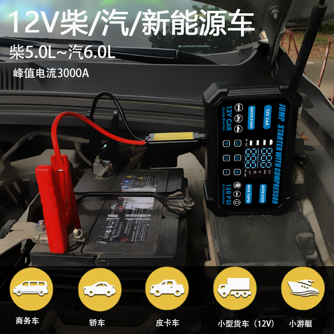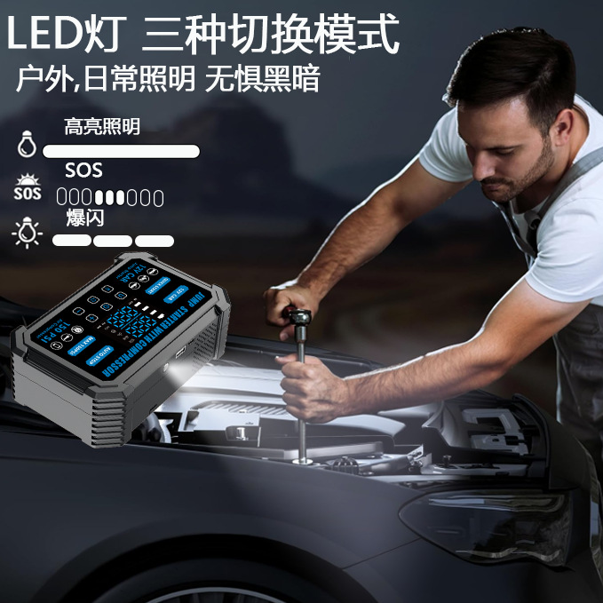 车载无线充气泵便携式汽车轮胎车用打气泵测压应急启动电源一体机