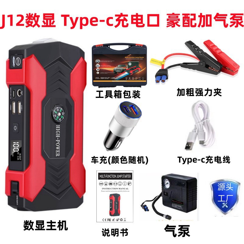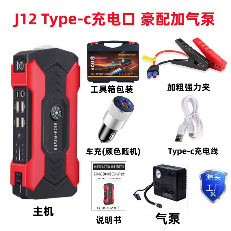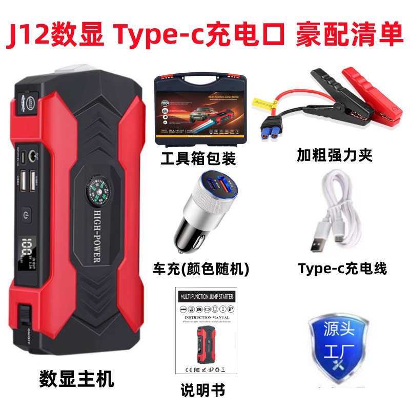 Car emergency starting power supply 12v large capacity mobile power bank, car backup battery ignition and power on device
