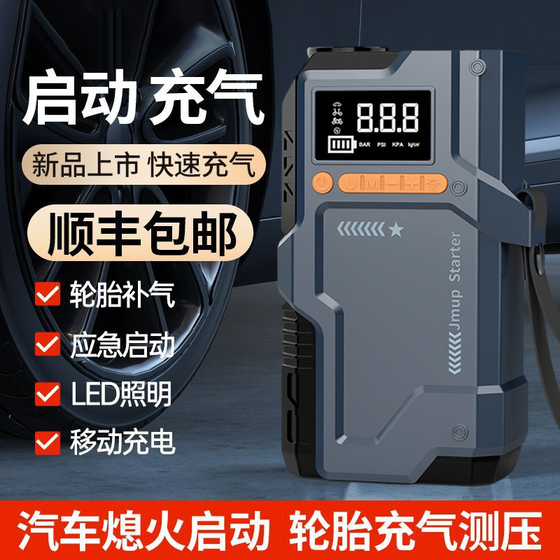 【 Cross border Exclusive 】 Car Emergency Start Power Supply, Car Inflator Pump, Dual purpose Multi functional Integrated Machine, Large Capacity