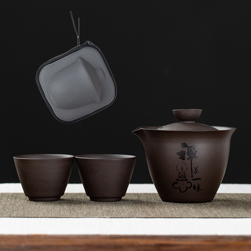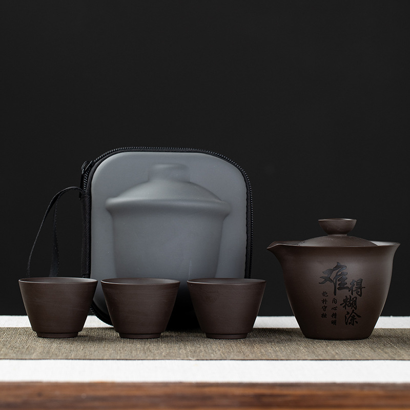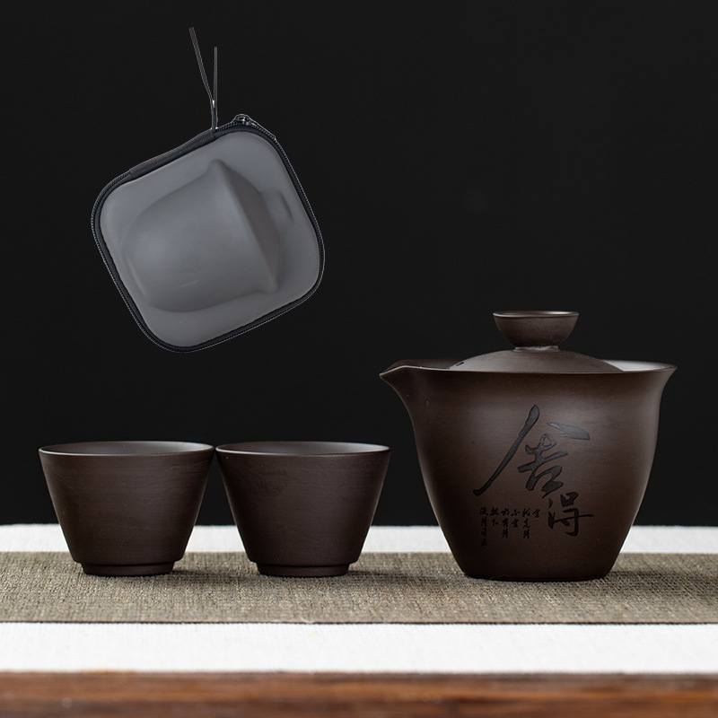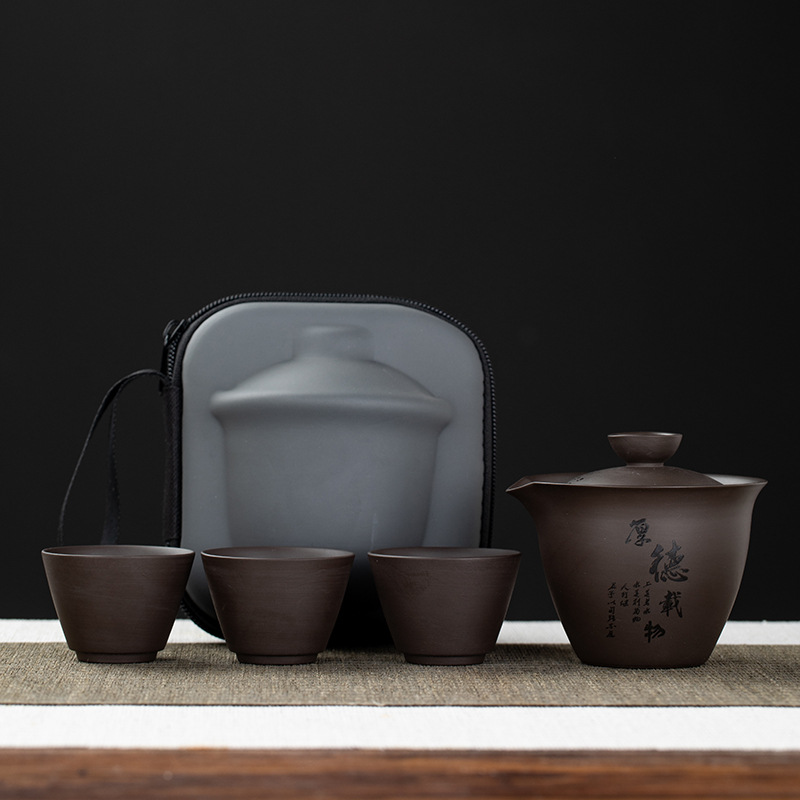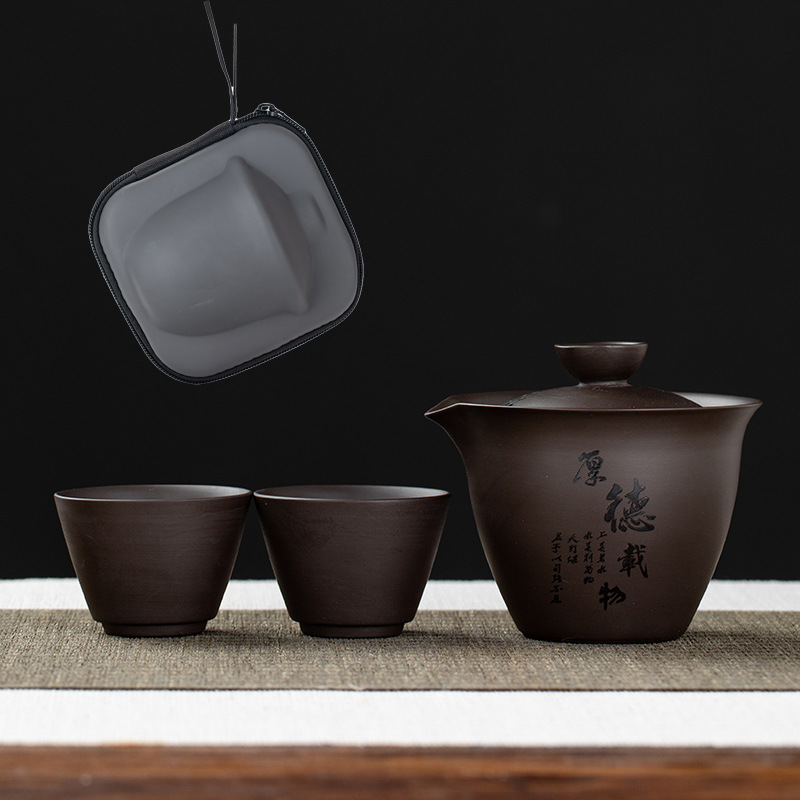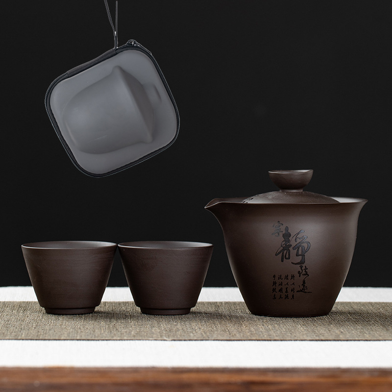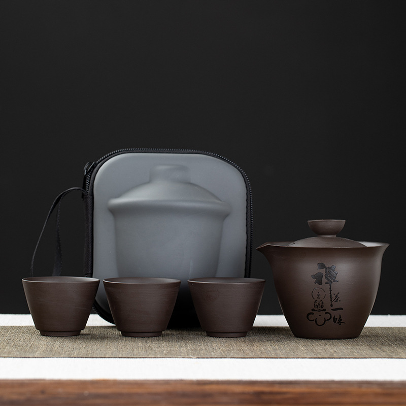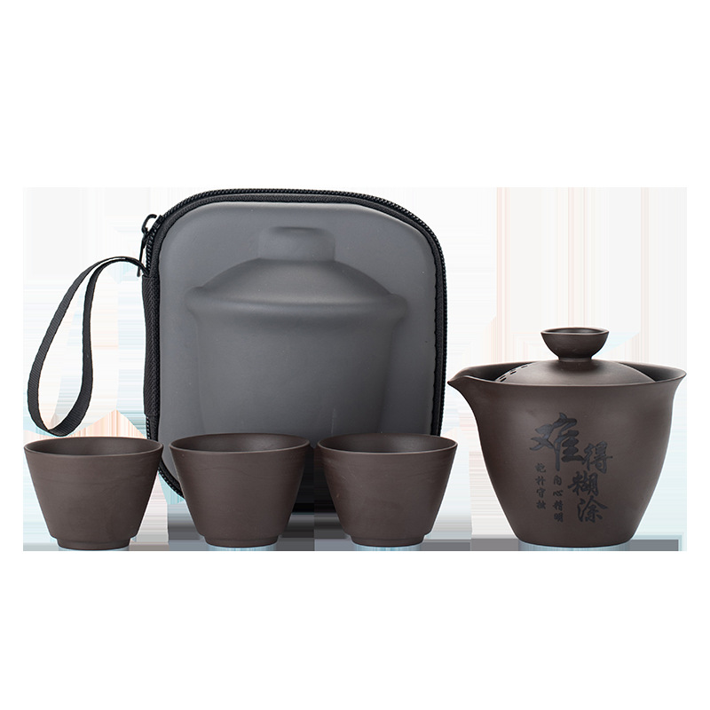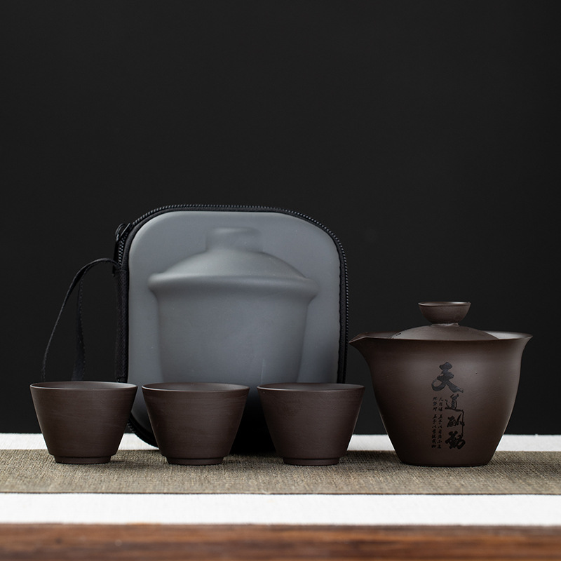 Purple clay teapot, purple clay teapot, business travel tea set, fast guest cup, portable storage bag, outdoor bubble, car, one pot, three cups