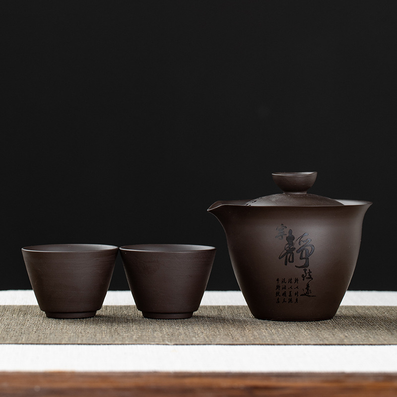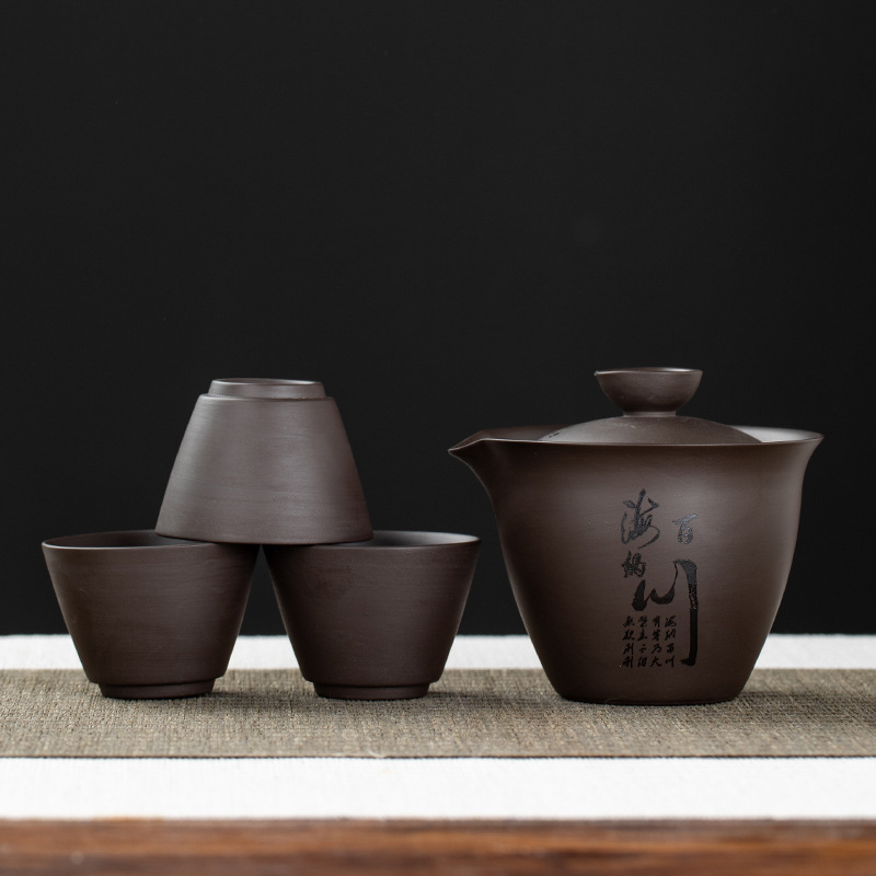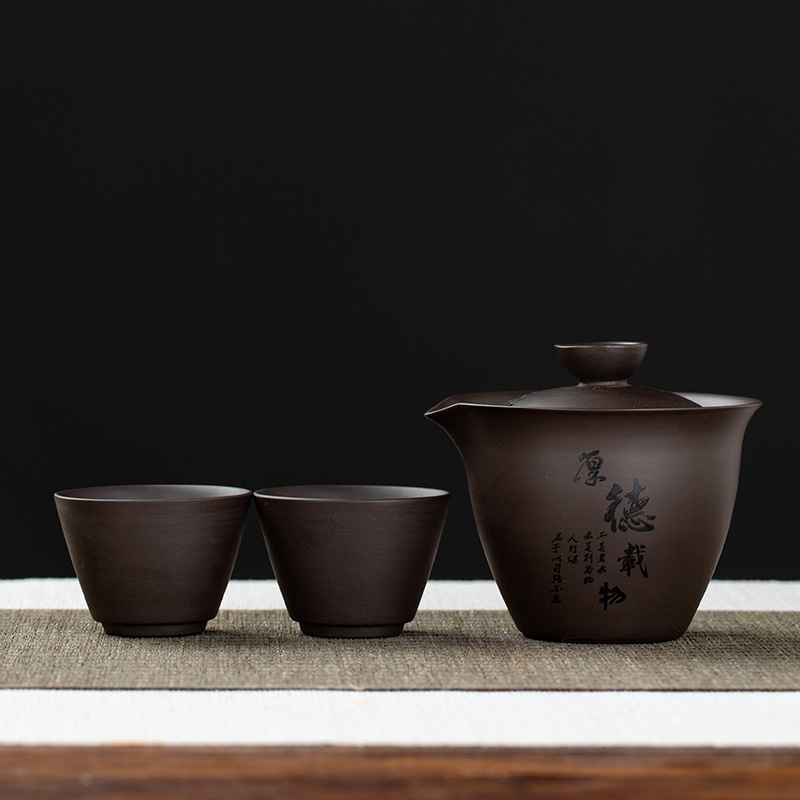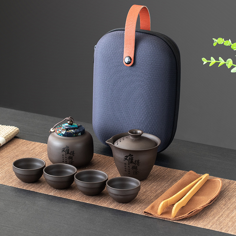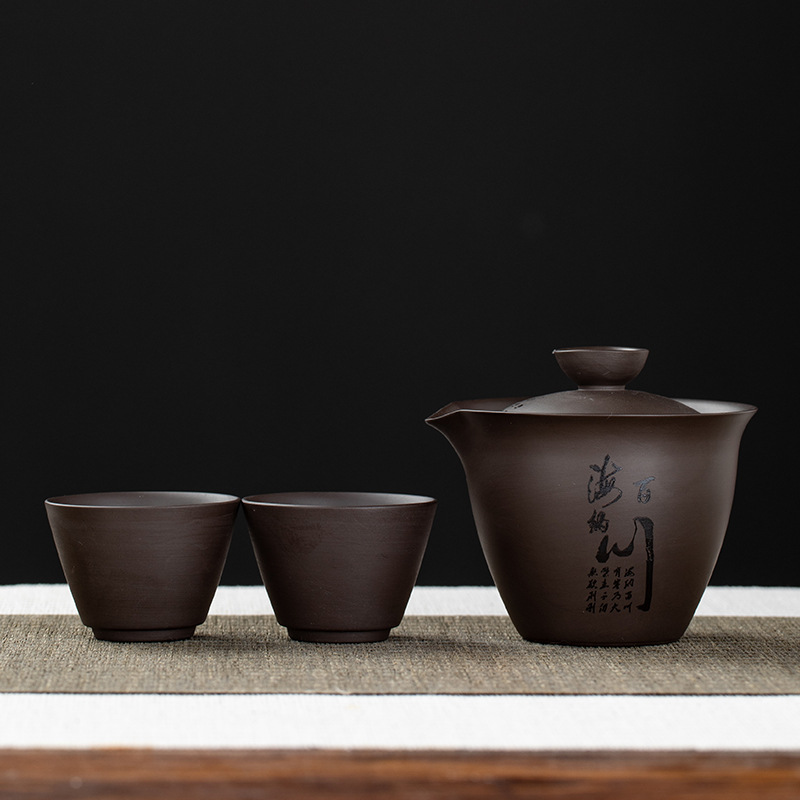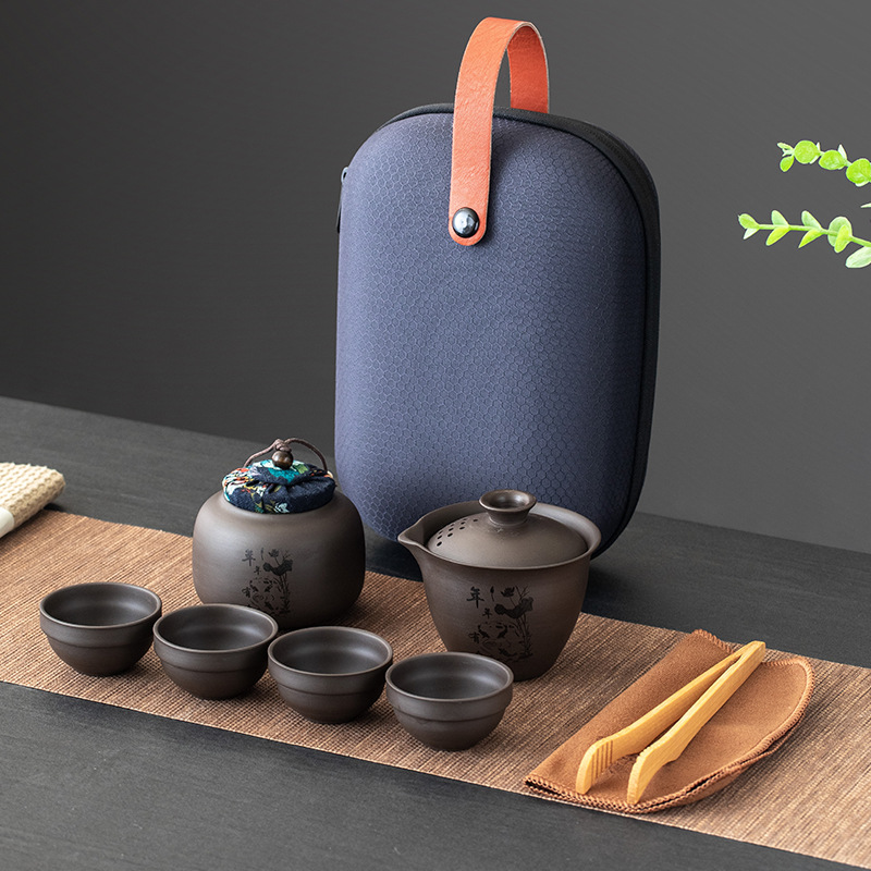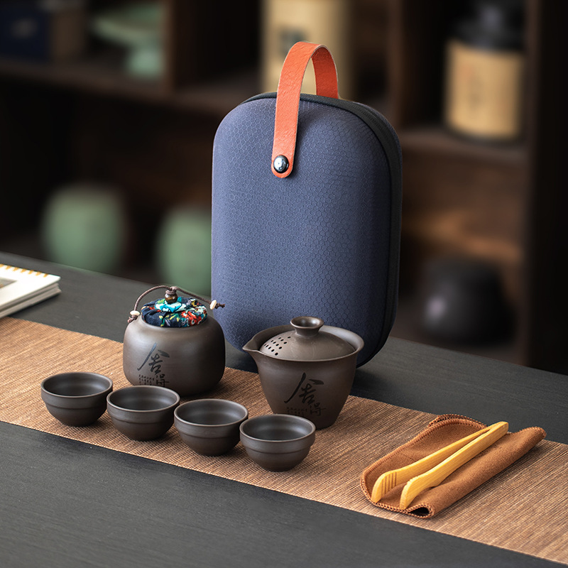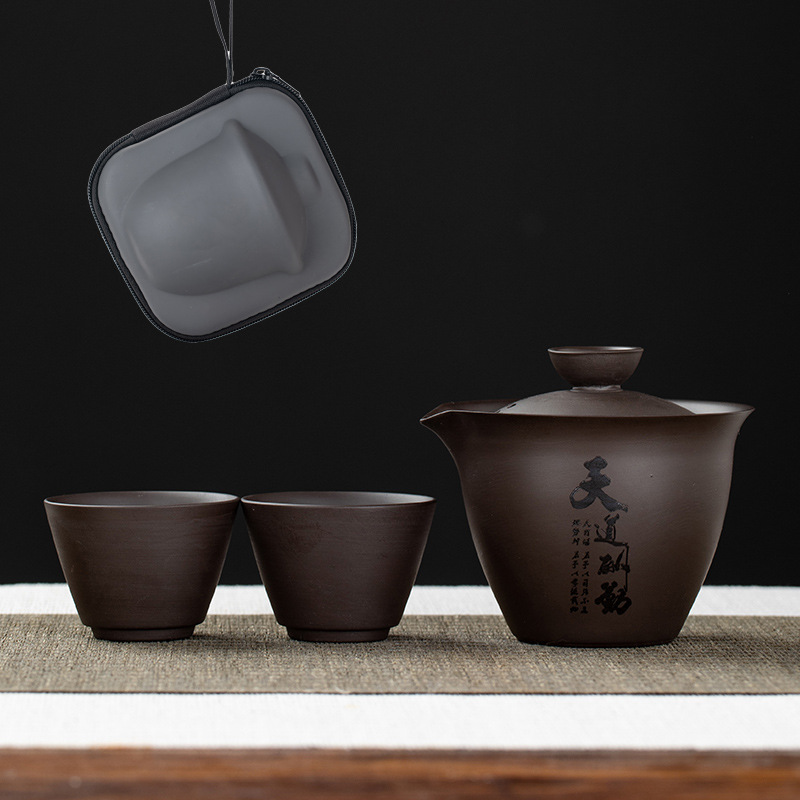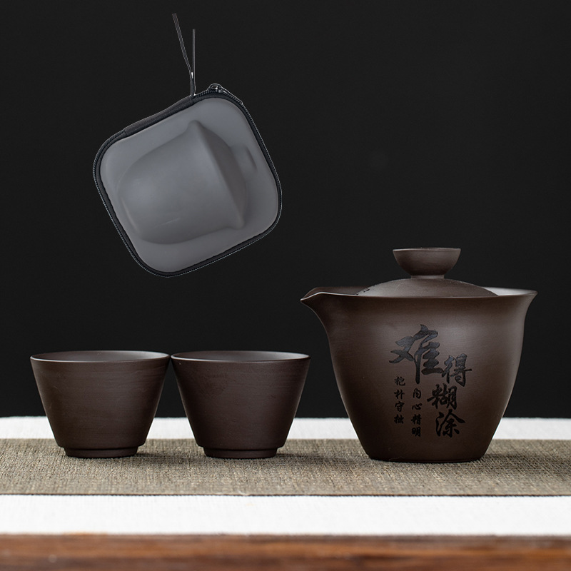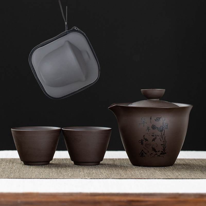Purple clay teapot, purple clay teapot, business travel tea set, fast guest cup, portable storage bag, outdoor bubble, car, one pot, three cups