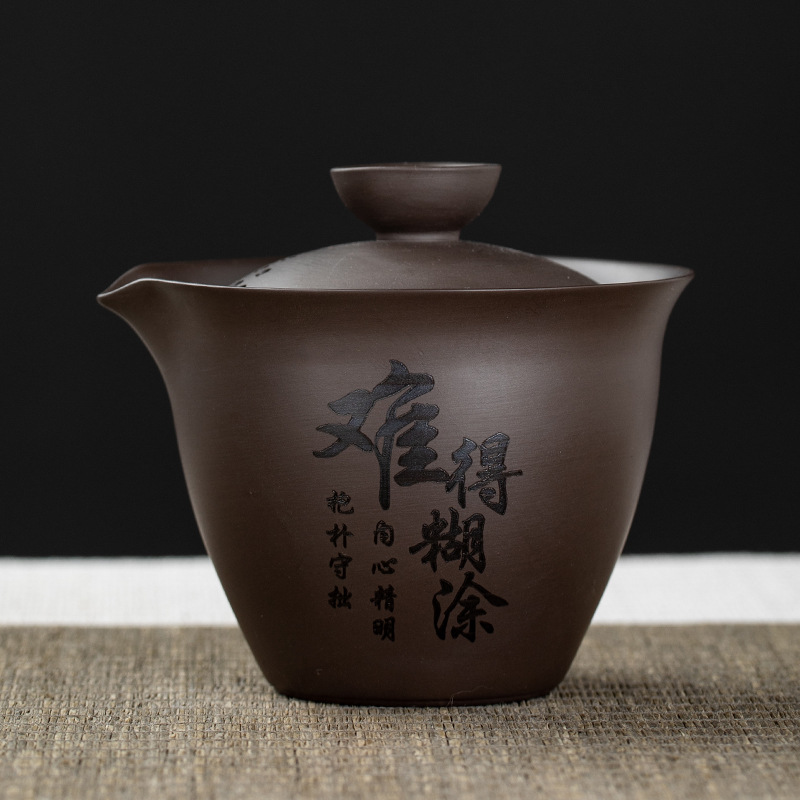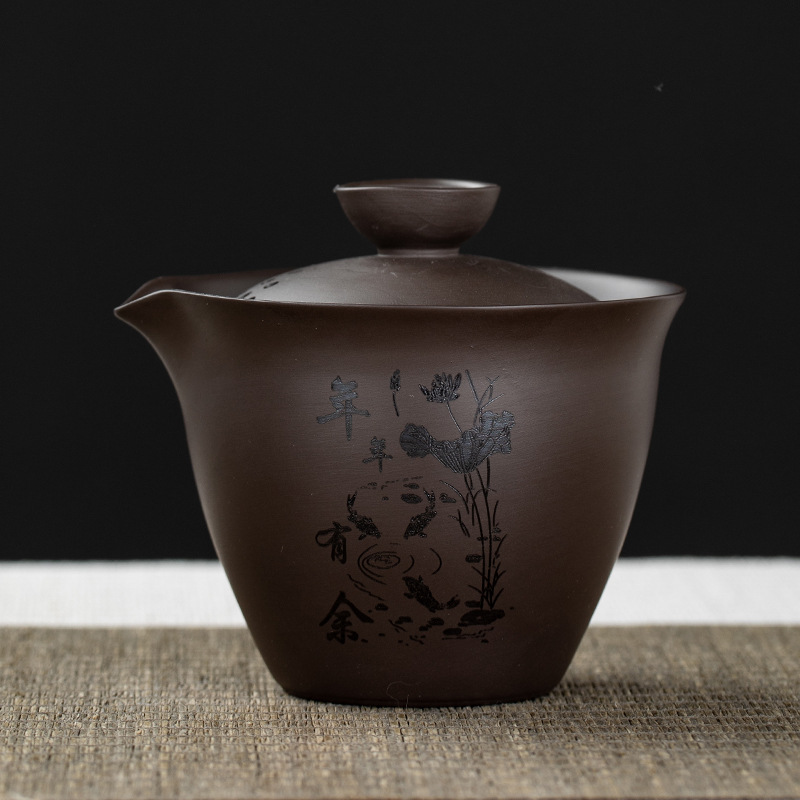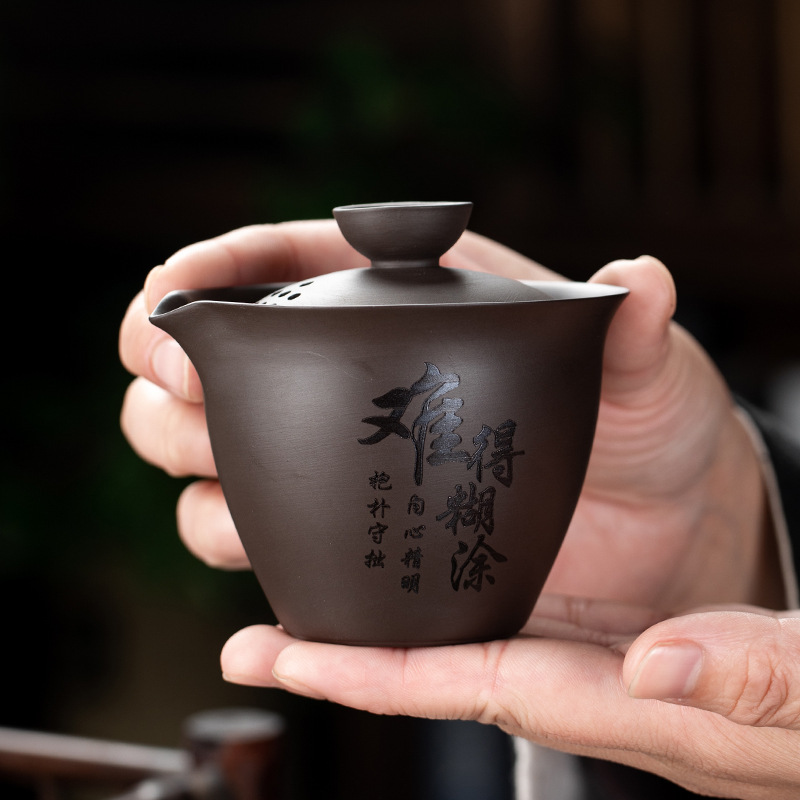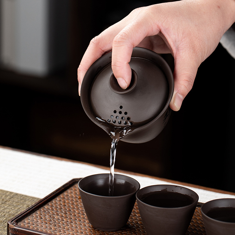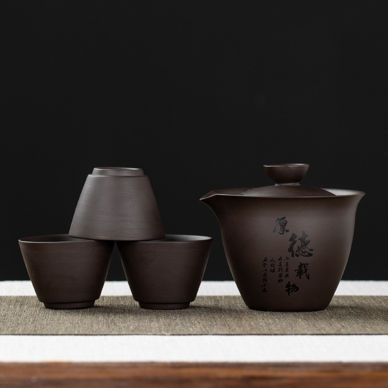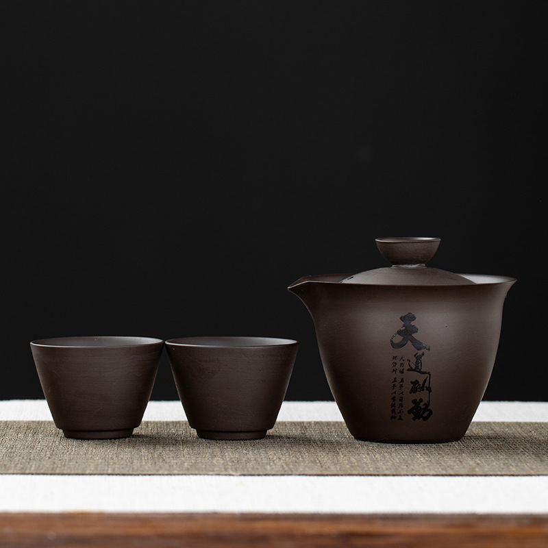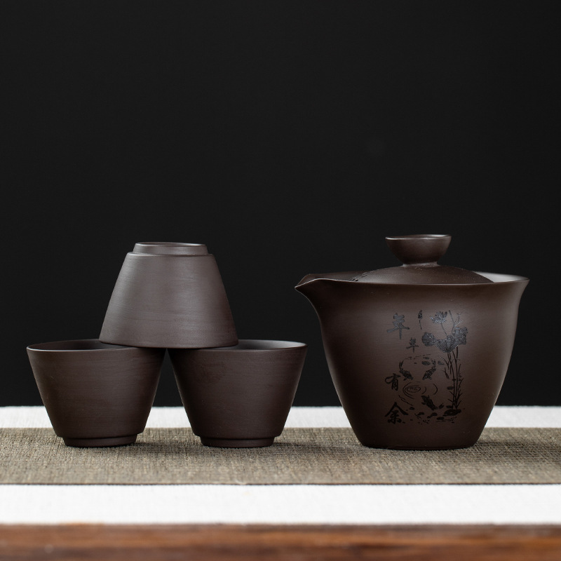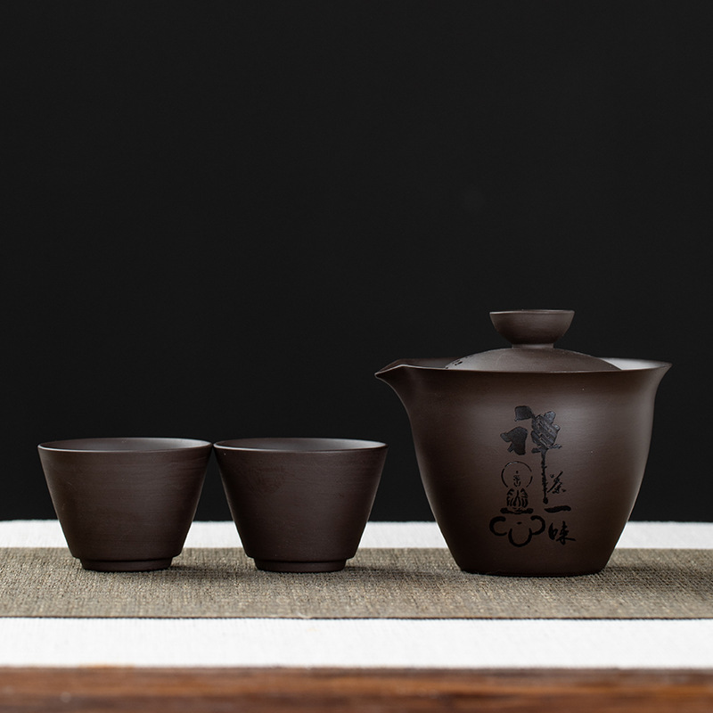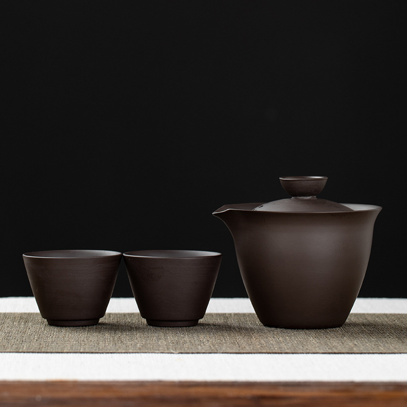 Purple clay teapot, purple clay teapot, business travel tea set, fast guest cup, portable storage bag, outdoor bubble, car, one pot, three cups