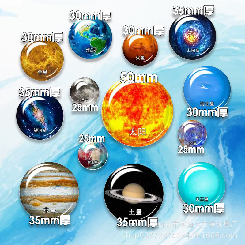 太阳系八大行星水晶玻璃冰箱贴地球宇宙银河系磁性贴天文教具模型