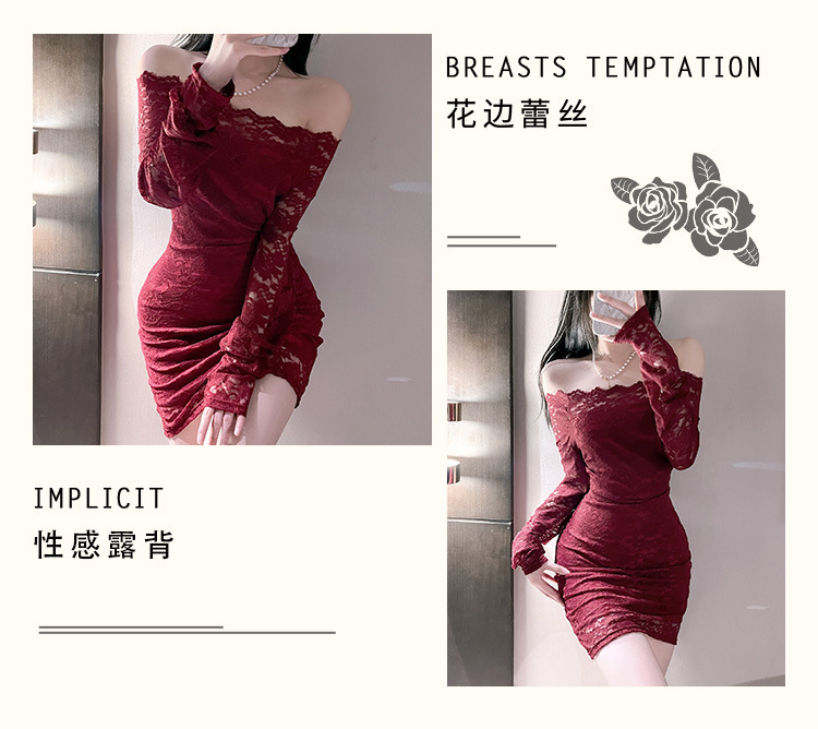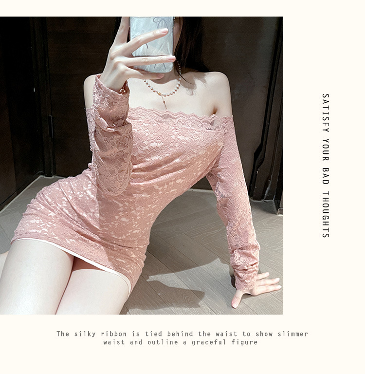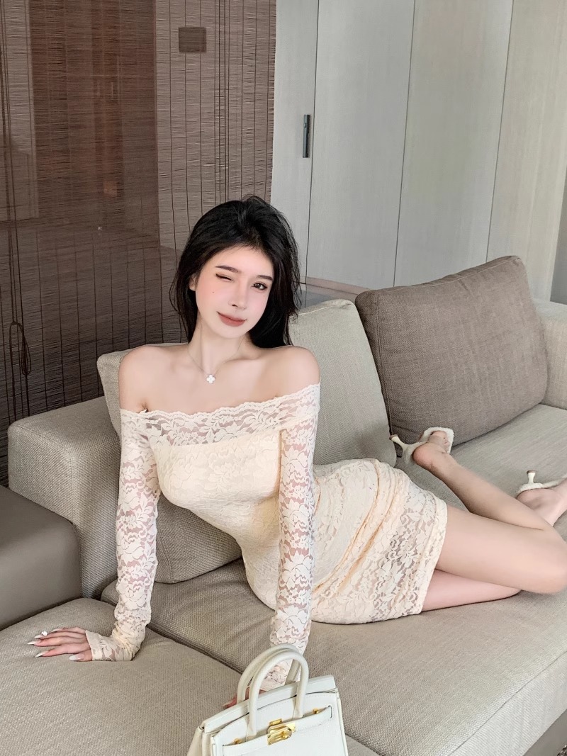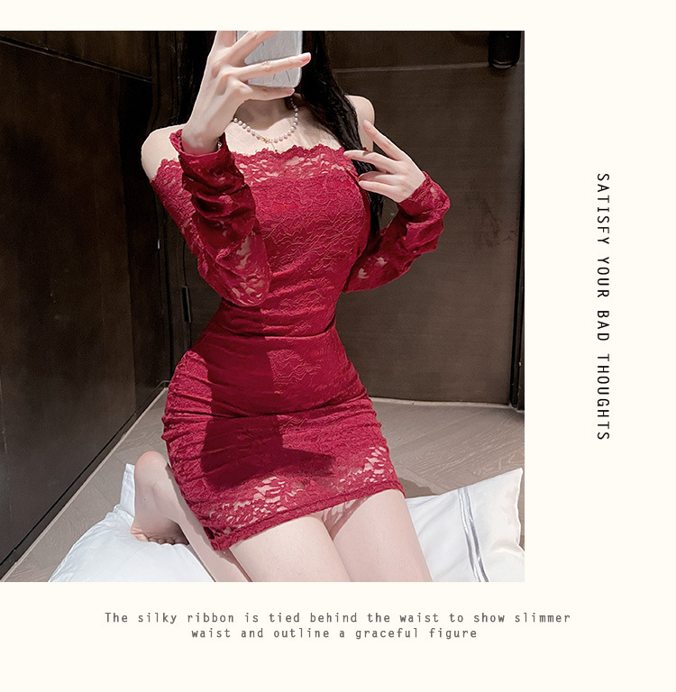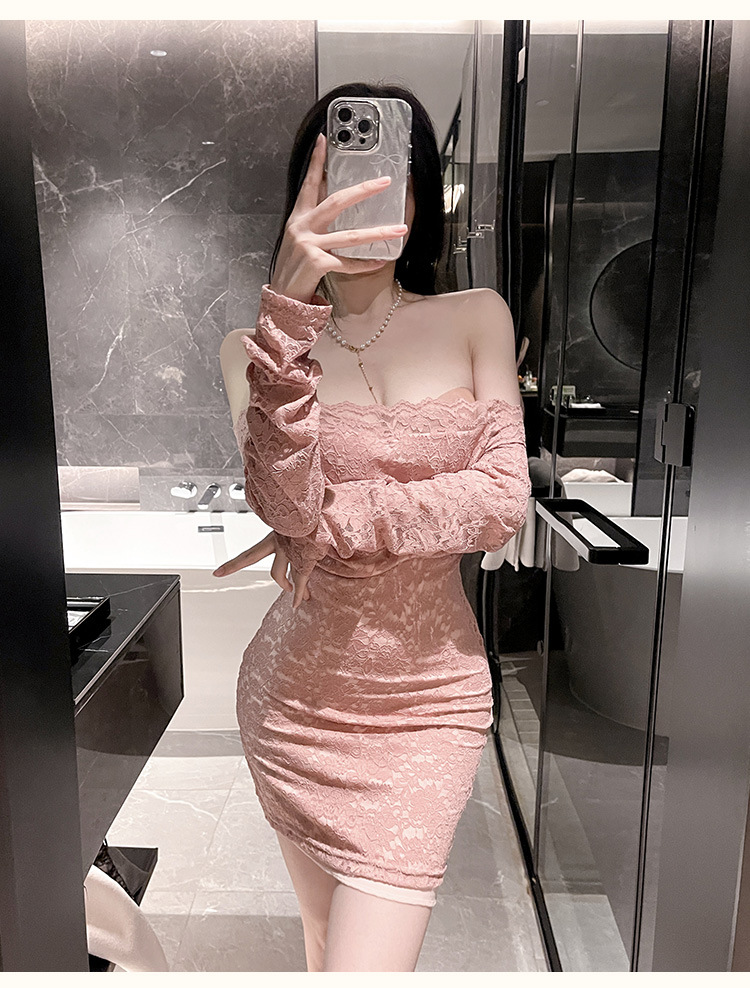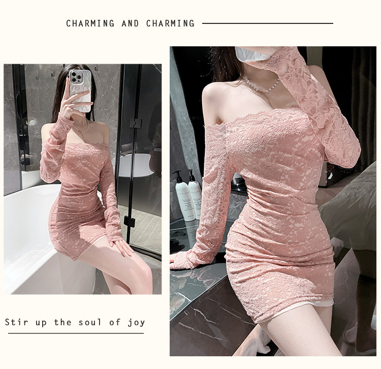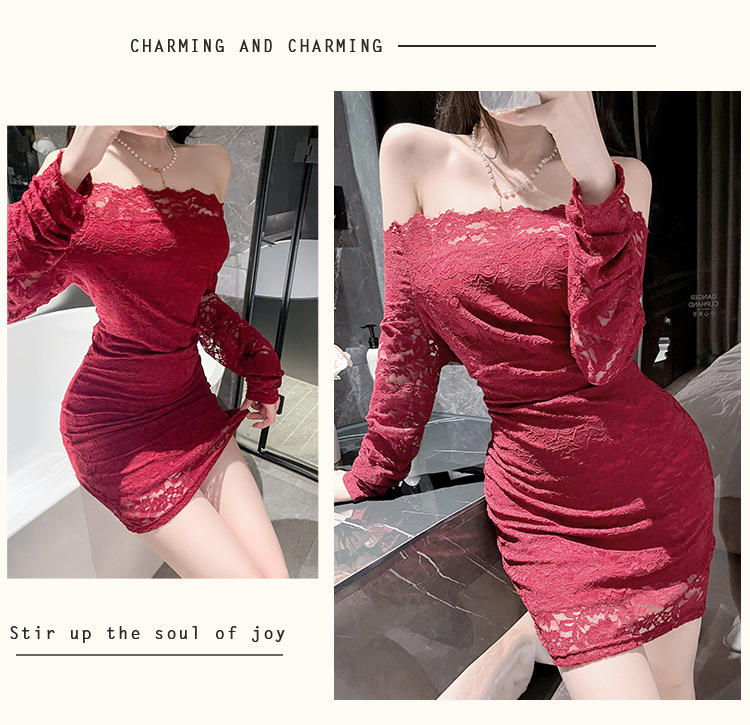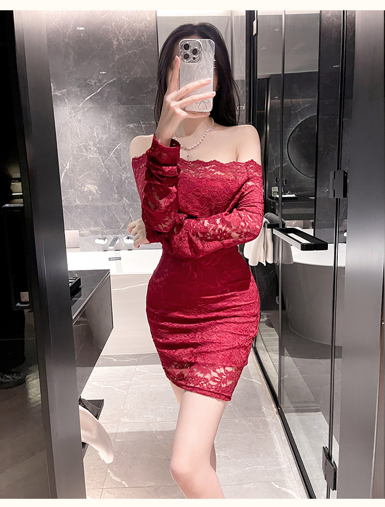 Платье с длинными рукавами, сексуальное кружево, высокое чувство плеча, толстый пакет, юбка с ягодицами.