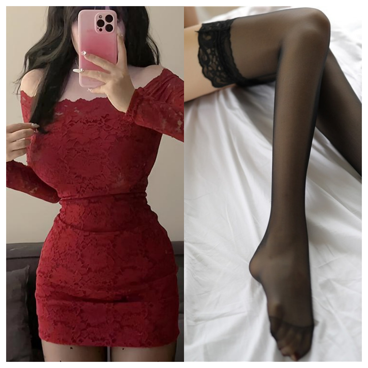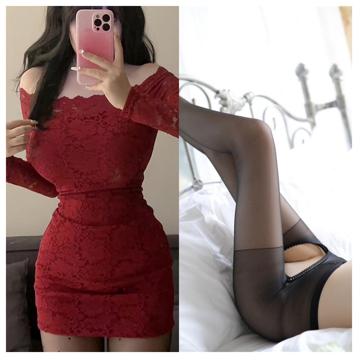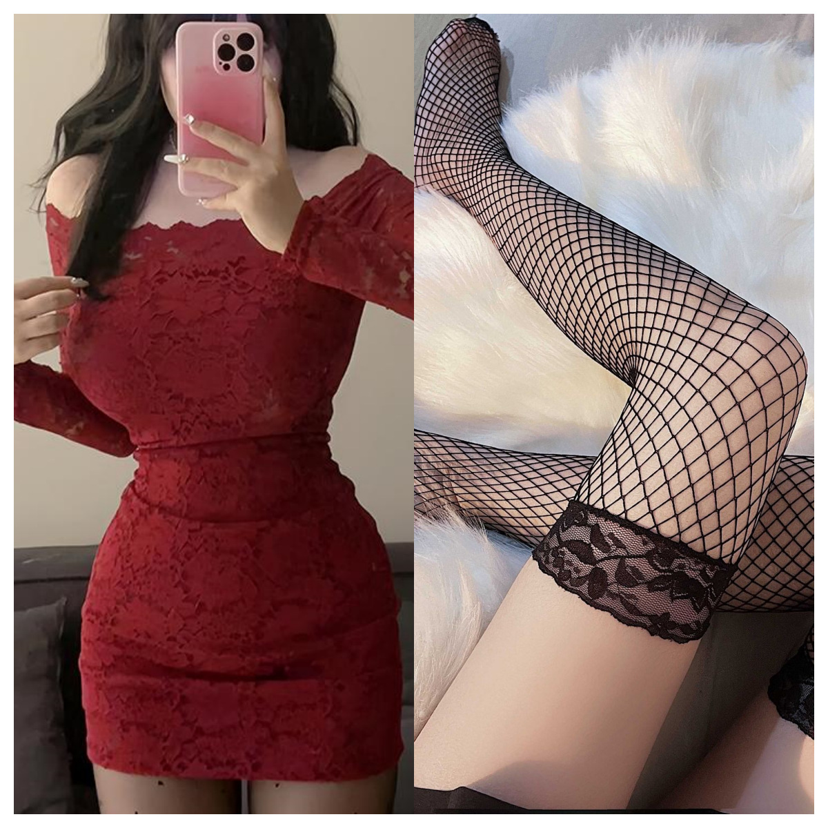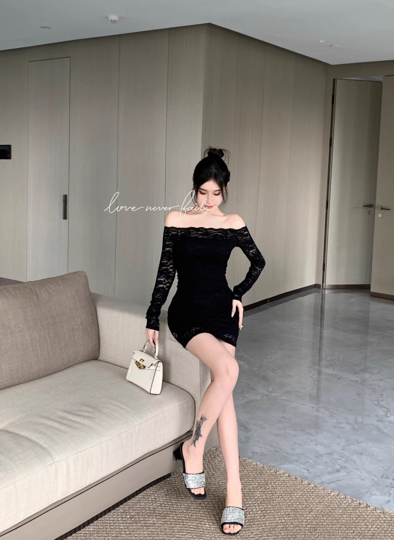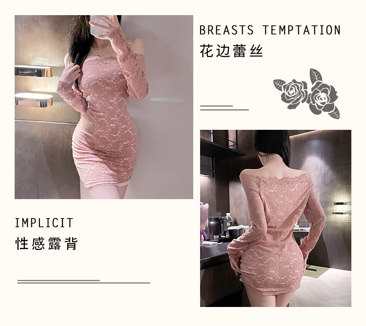 Платье с длинными рукавами, сексуальное кружево, высокое чувство плеча, толстый пакет, юбка с ягодицами.