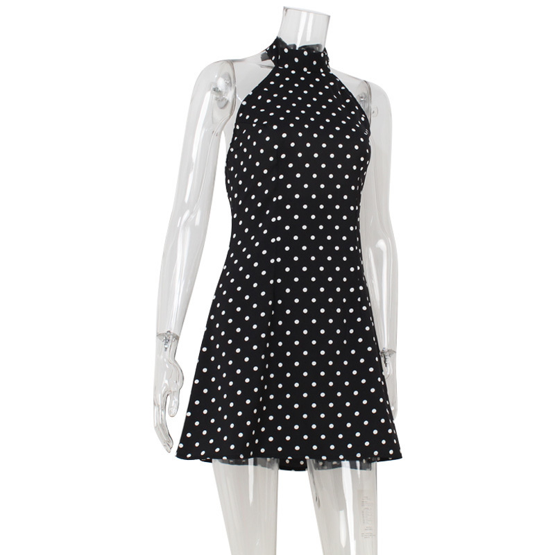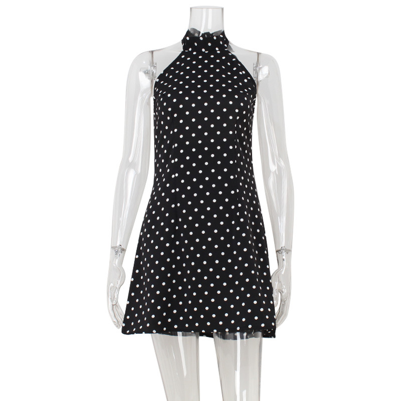 Cross border temperament French hanging neck backless slim fit fashionable polka dot print sexy pure desire European and American style A-line dress