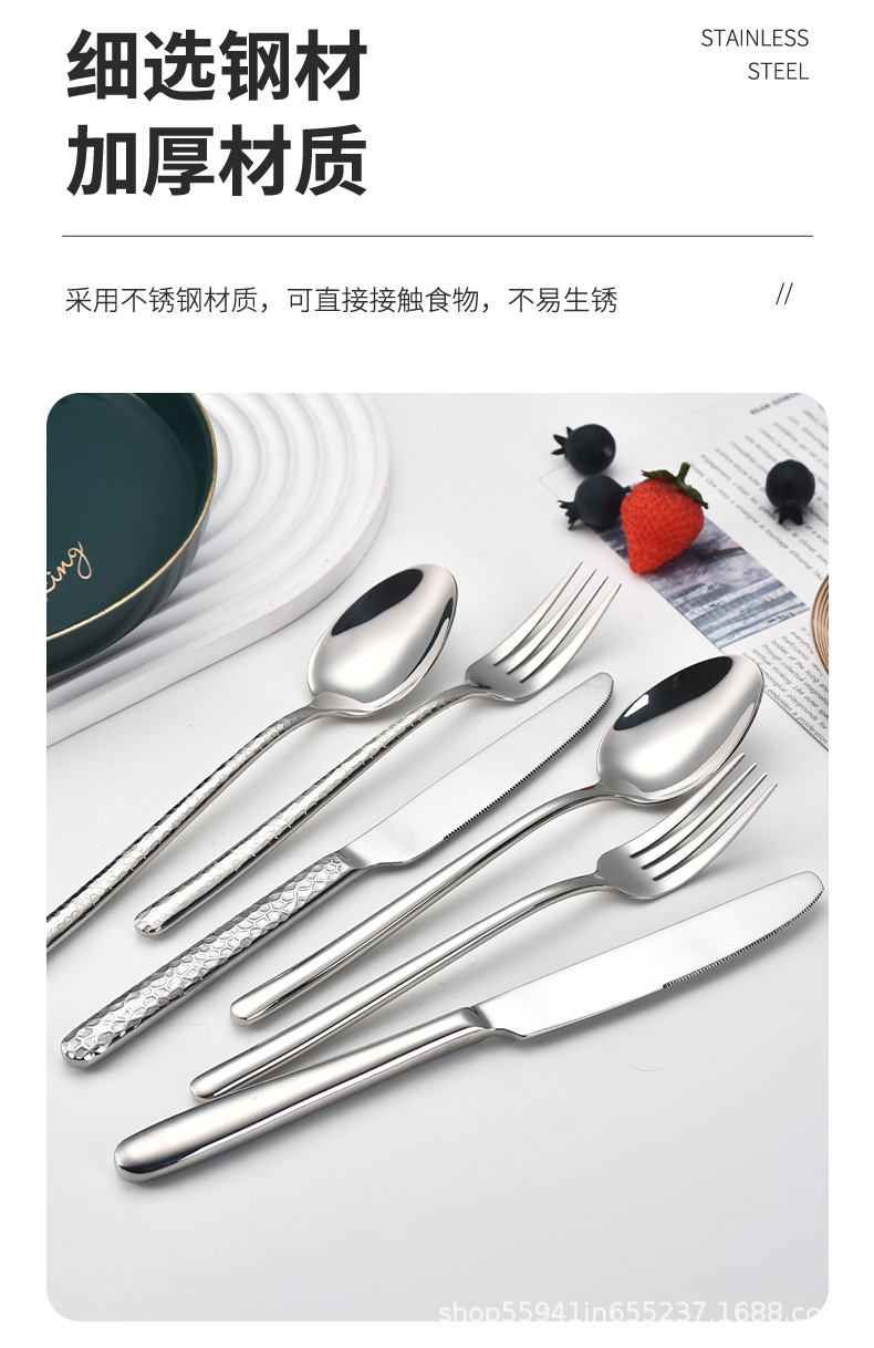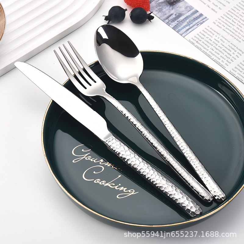 Amazon трансграничный молоток нержавеющая сталь посуда западная кухня нож вилка ложка стейк нож вилка десерт ложка элитный отель