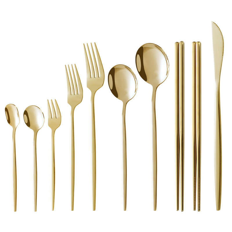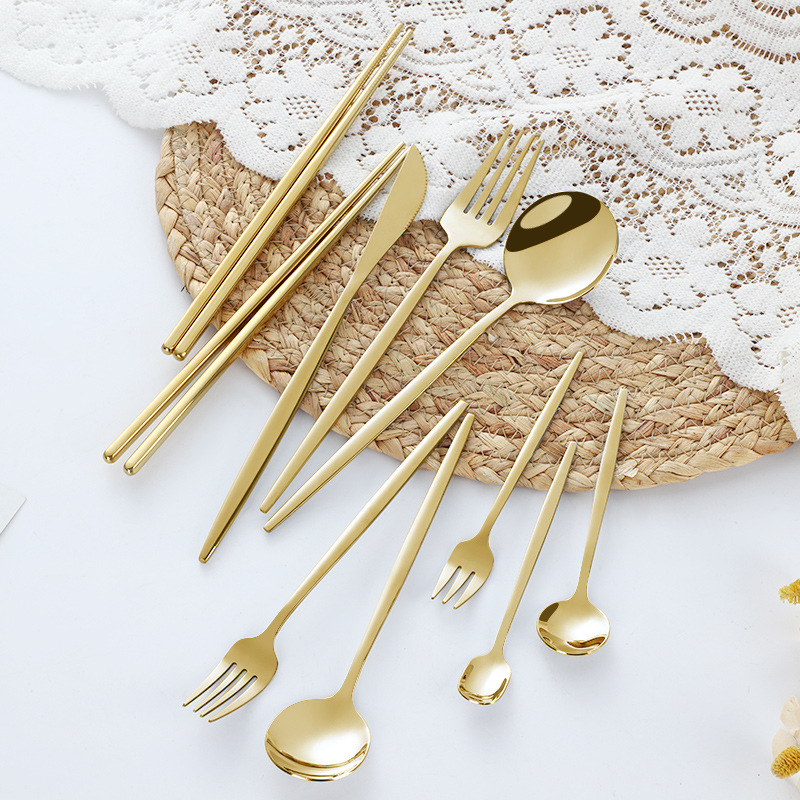 Wholesale stainless steel knives, forks, spoons, Portuguese Japanese Western tableware, gold-plated dessert spoons, forks, chopsticks, ice cream spoons, fruit forks