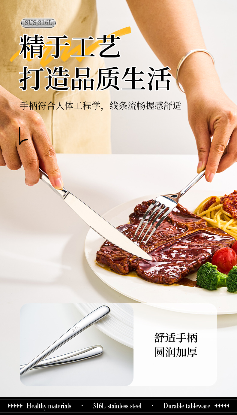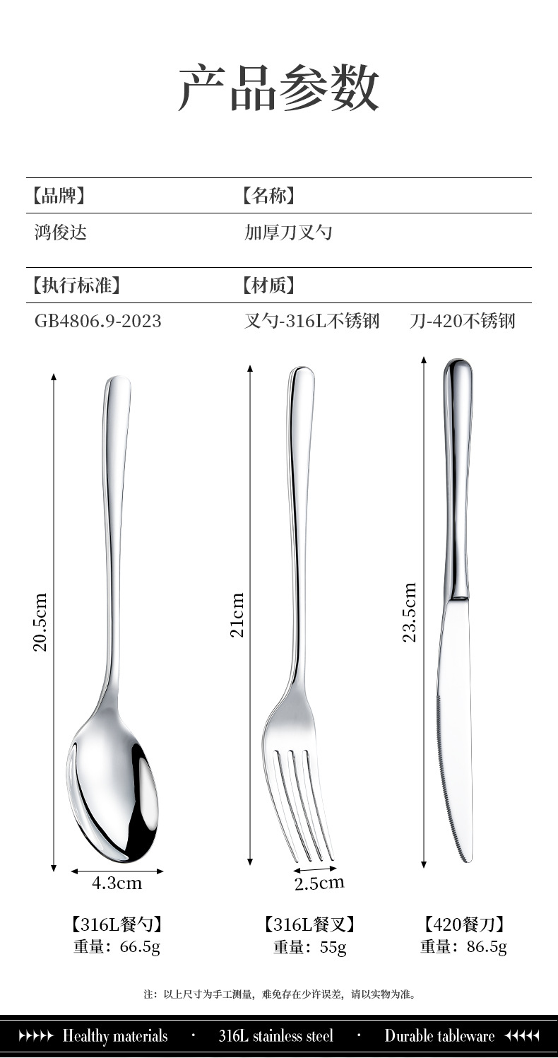 Hongjunda 316L stainless steel spoon fork thickened anti scald Western style knife steak knife hotel Western style tableware set