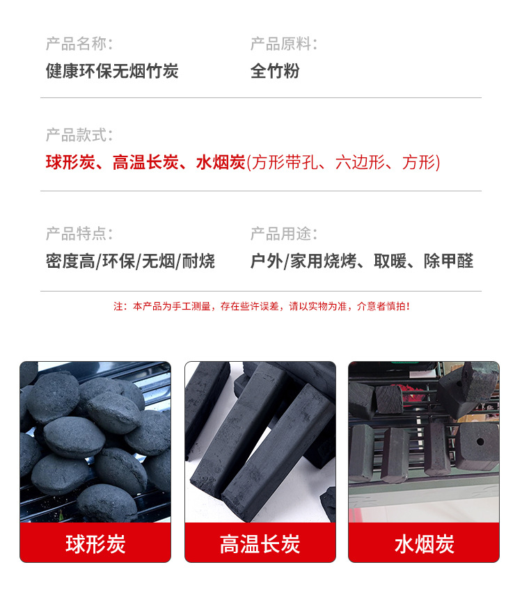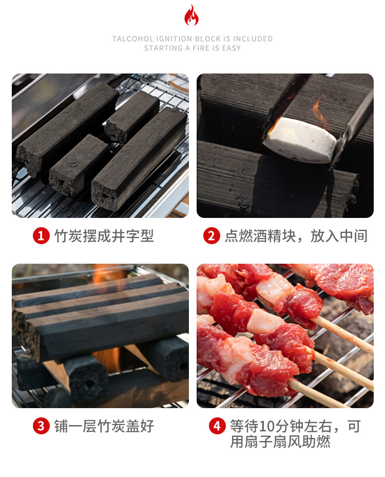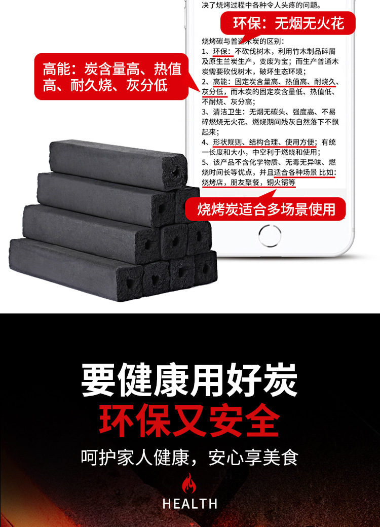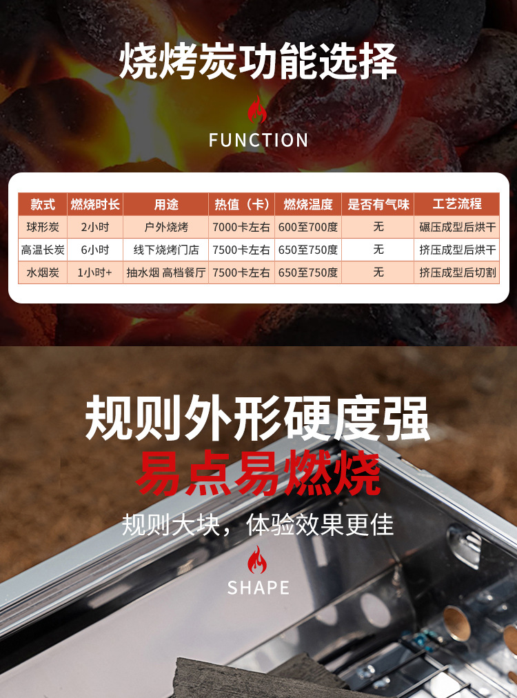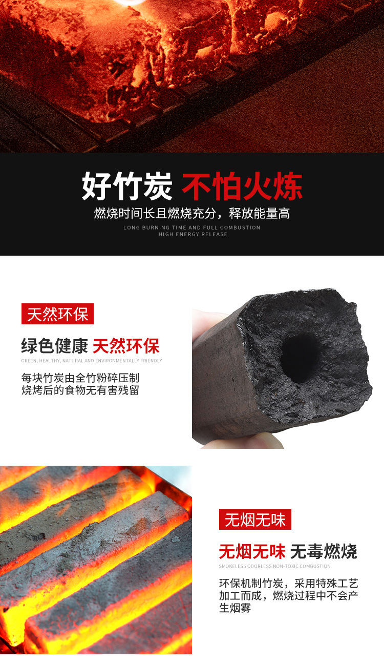 Zibo Barbecue Charcoal Household Bamboo Charcoal Hot Pot Outdoor High Temperature Heating Square Water Smoke Charcoal Ball Charcoal