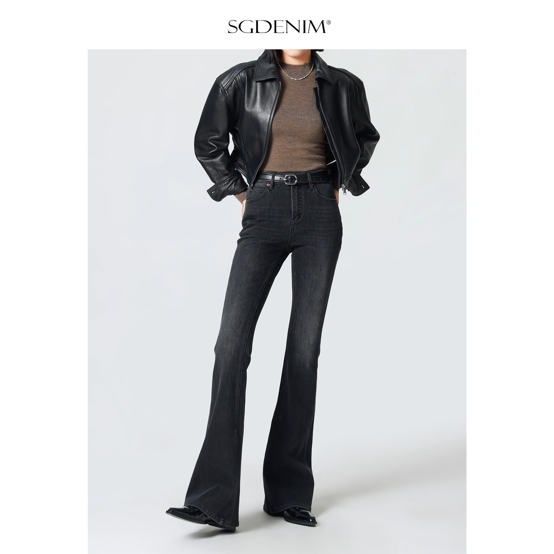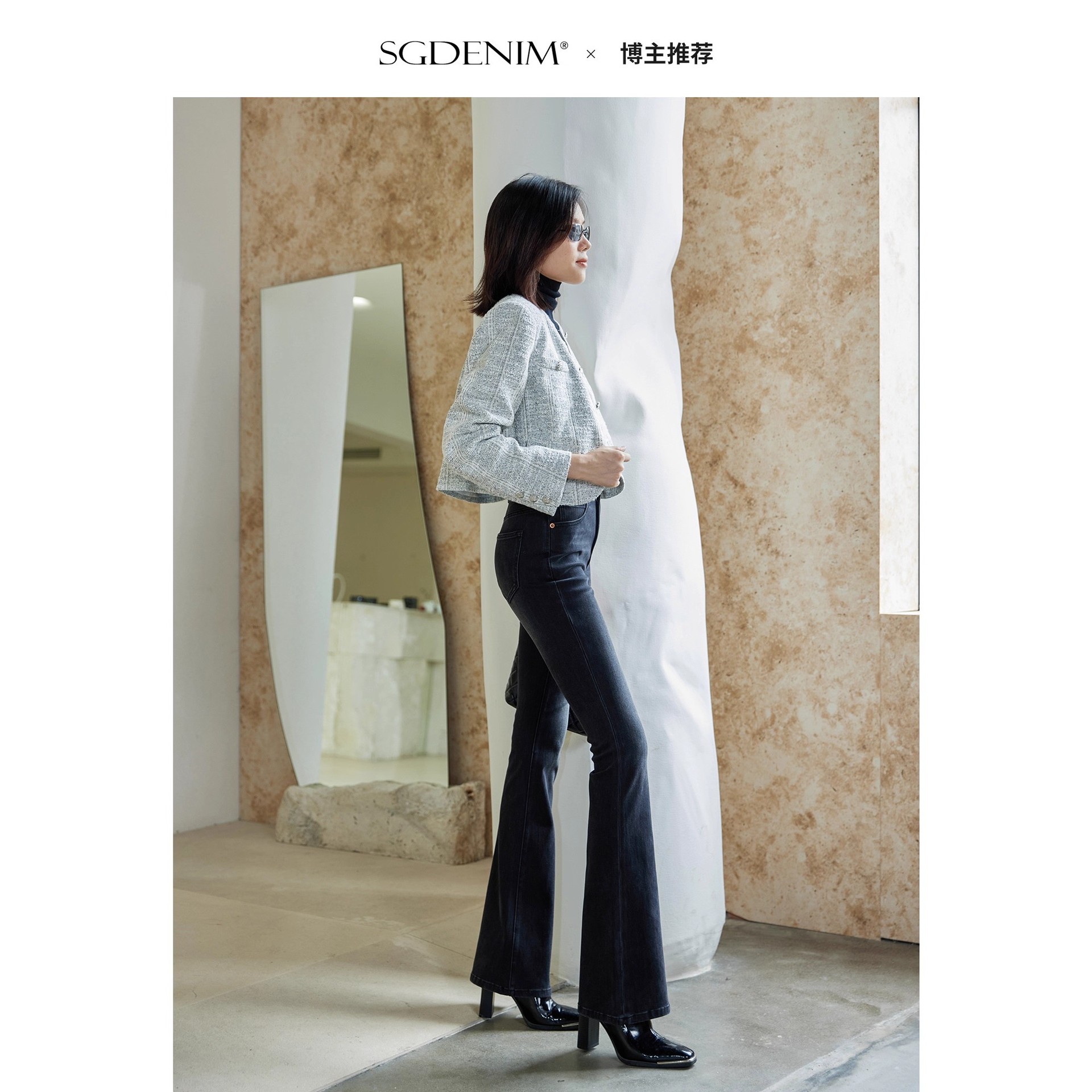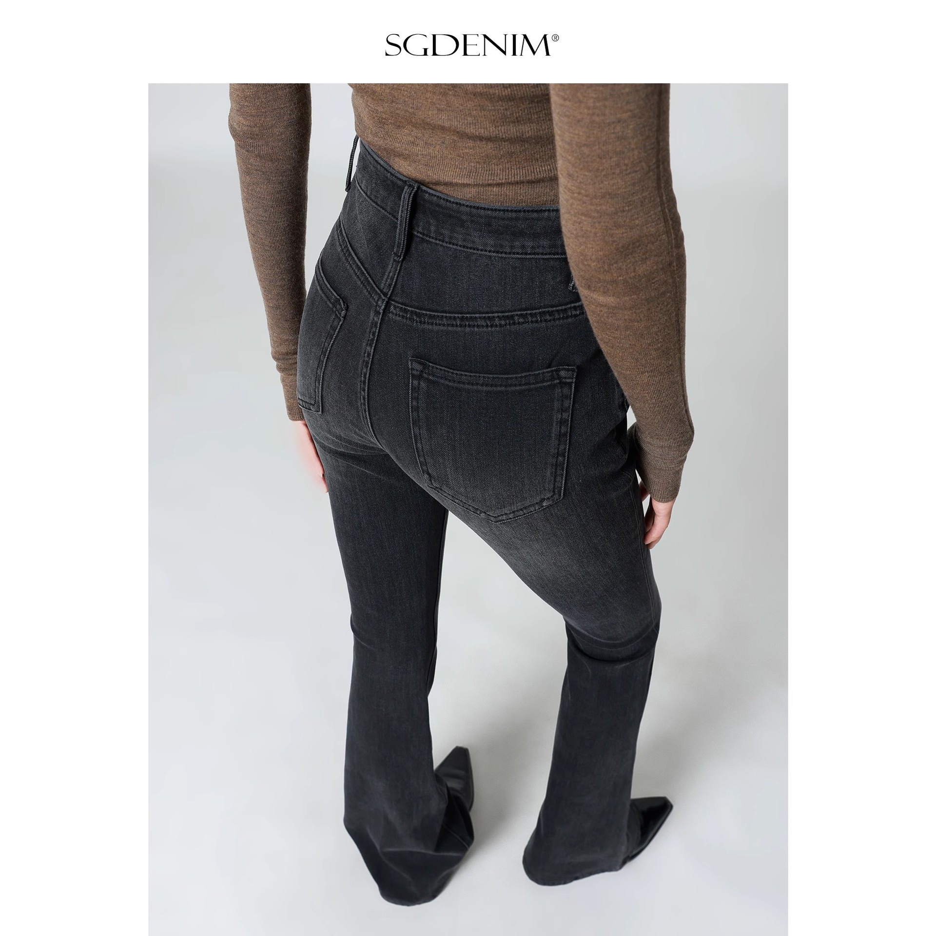 Supermodel pants/Giant slimming black gray high waisted micro flared jeans for women, elastic tight fitting and hip lifting 25 autumn style