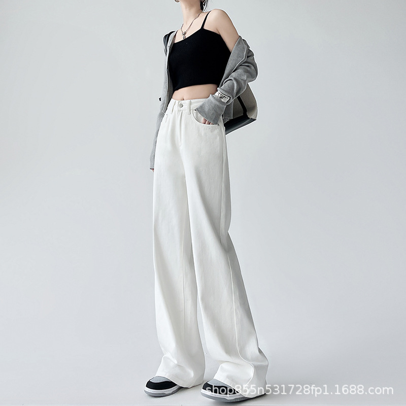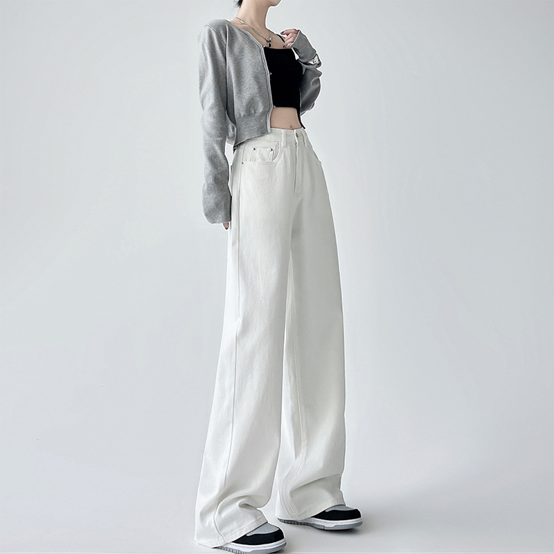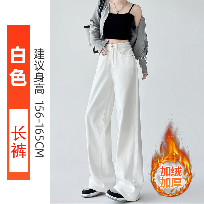 Белые брюки с широкими ногами и пуховые джинсы Осень - зима 2025 Новые брюки с высокой талией