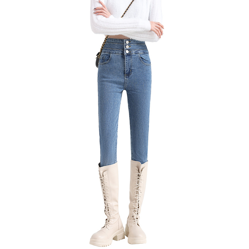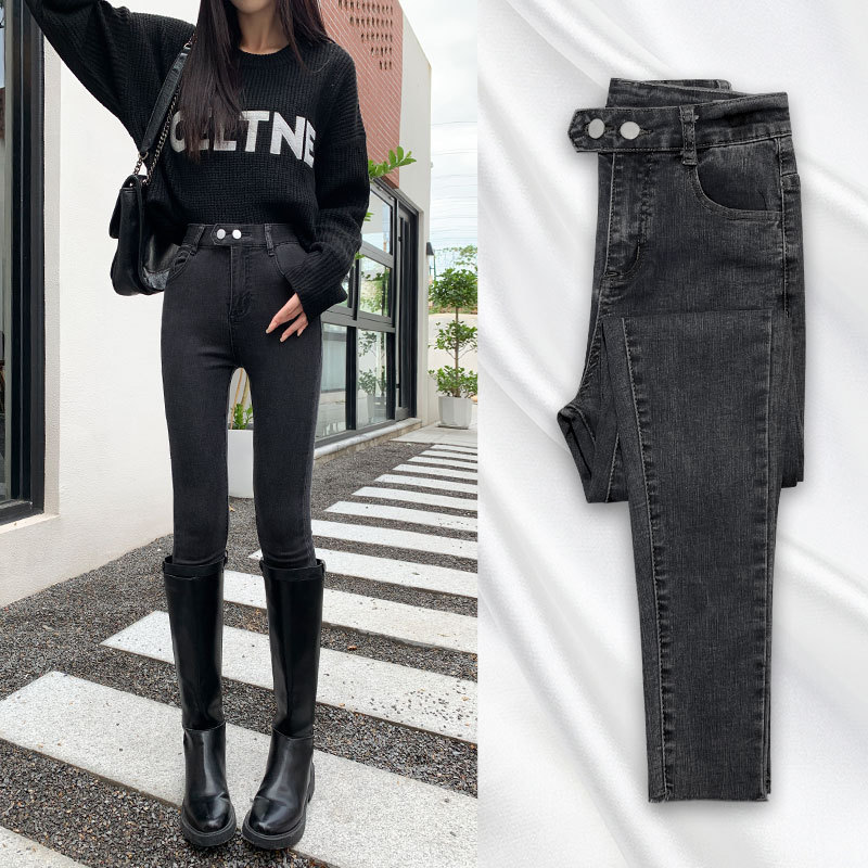 High waisted jeans for women in 2025, new spring and autumn style, tight fit and slim fit, black, slim and small, pencil pants with small feet