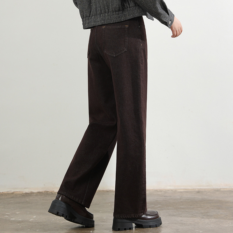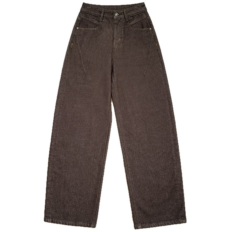 Sudu's new winter woven fleece jeans for women, fashionable coffee color, loose side, provincial slimming, versatile sickle shaped pants