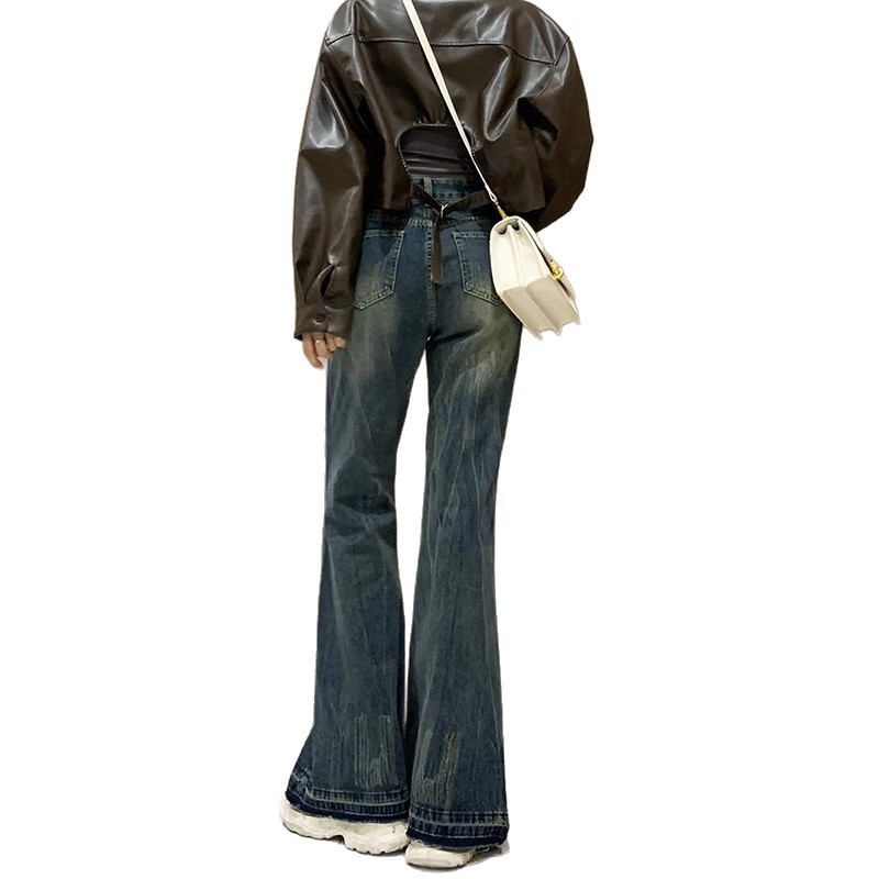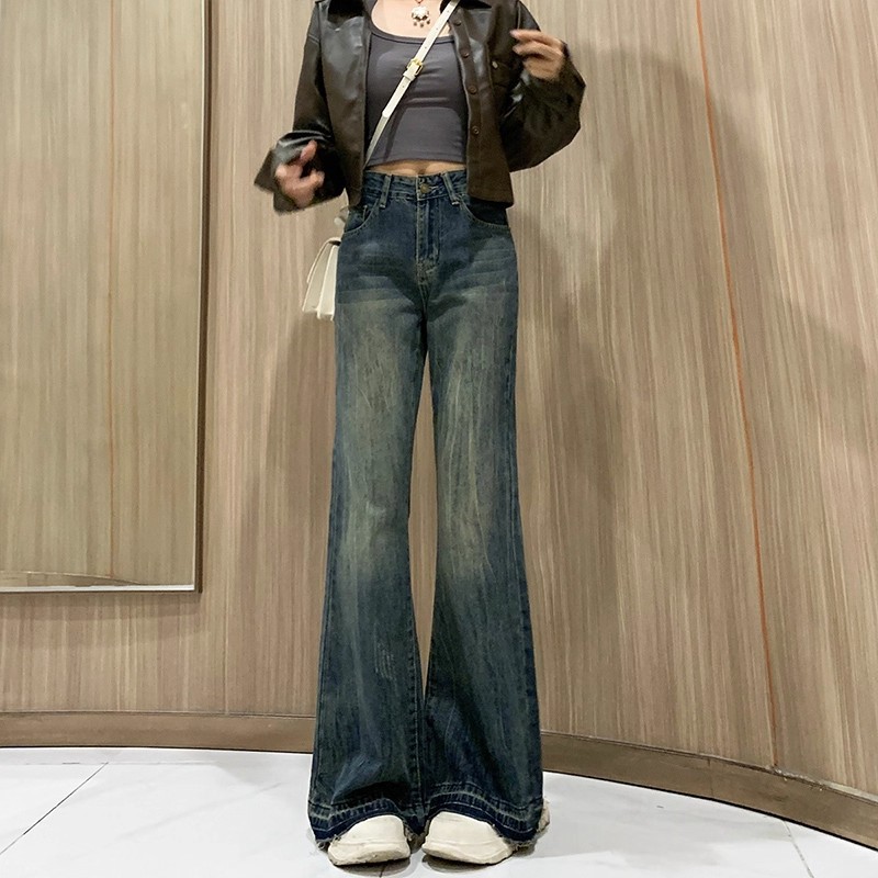 Women's Winter New Large Fat MM High Waist Loose Look Slim Narrow Version Wide Leg Pants with Velvet Thickened Micro Pull Jeans