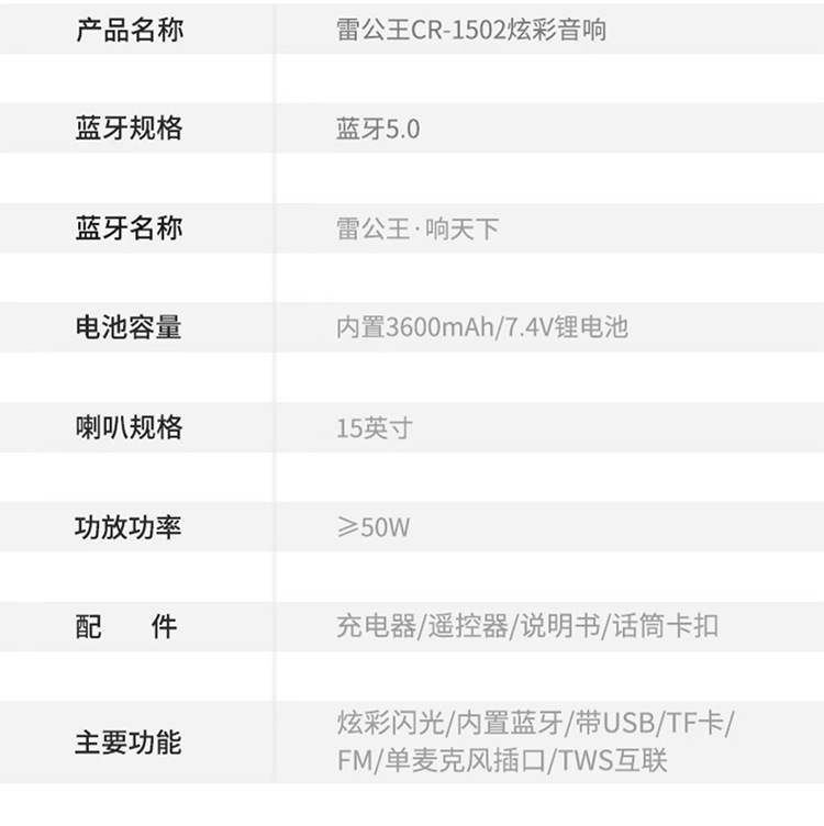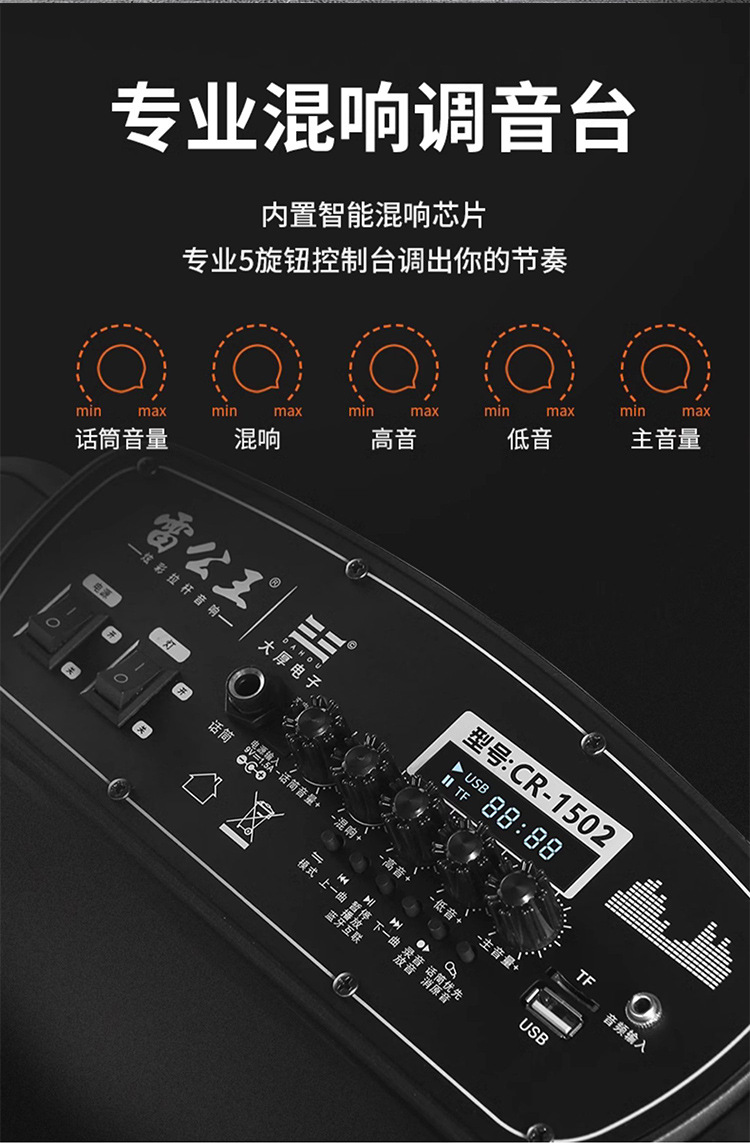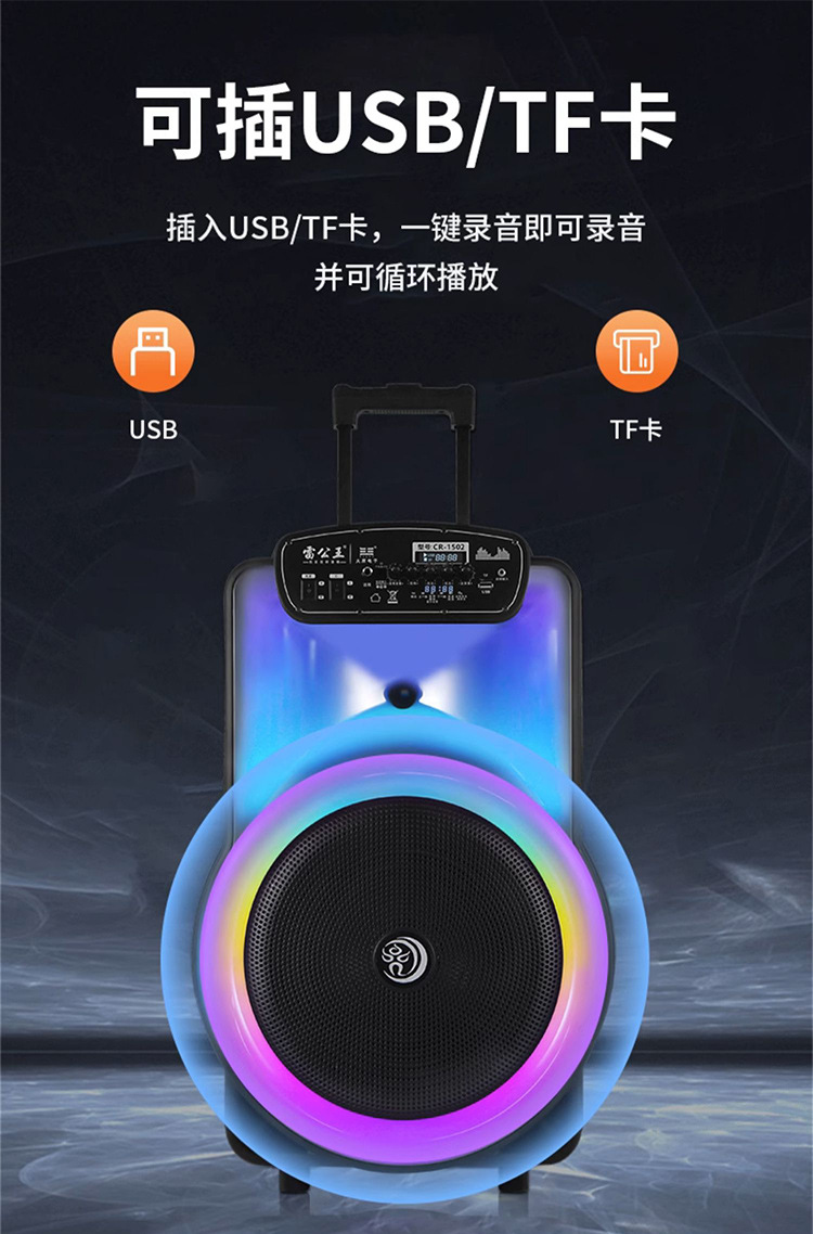 Lei Gongwang CR-1502 Multi functional Bluetooth Wireless Microphone Speaker Colorful Square Dance Speaker