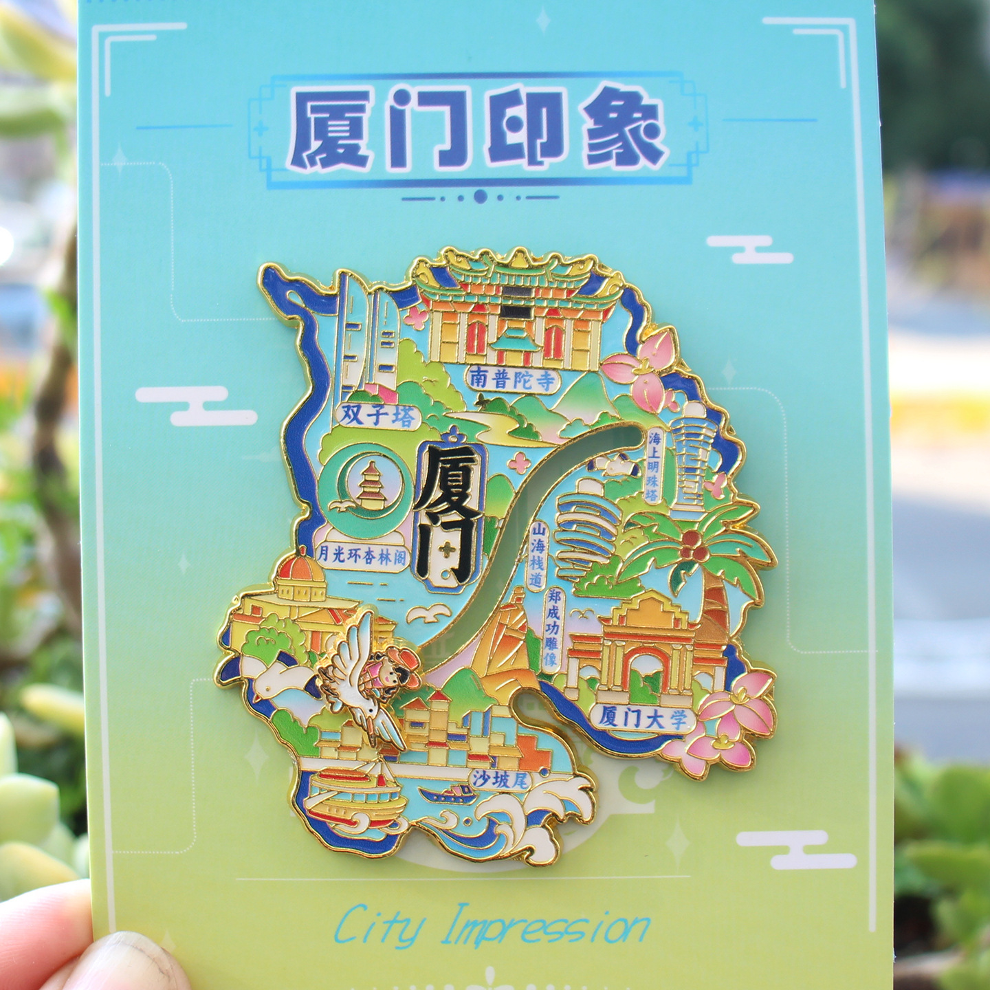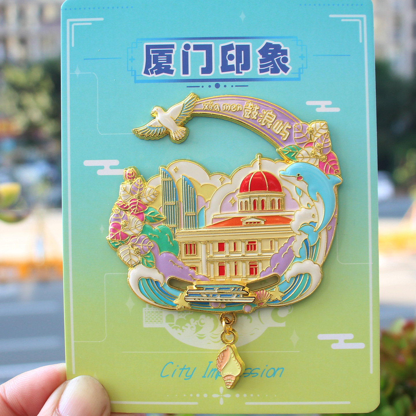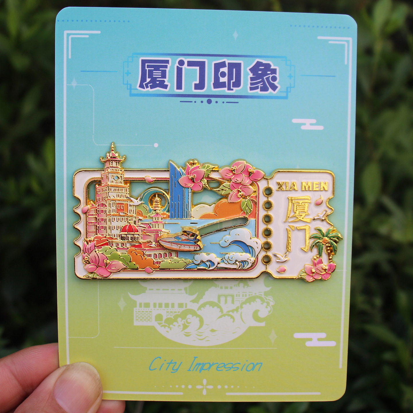 厦门金属冰箱贴旅游纪念品鼓浪屿南普陀寺滑轨磁吸冰箱贴伴手礼品