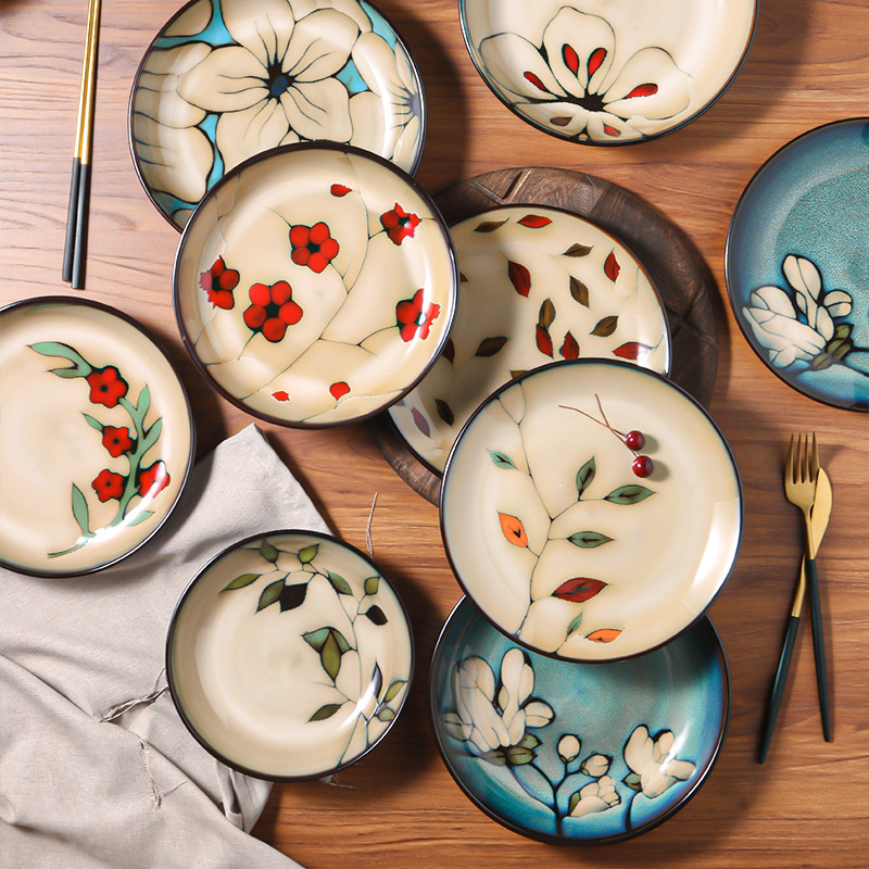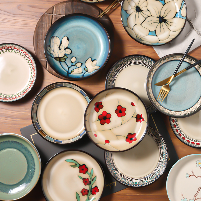 Европейская керамическая тарелка глазурованная тарелка ручная тарелка домашняя тарелка салатная тарелка творческая тарелка фруктовая тарелка стейк плоская тарелка