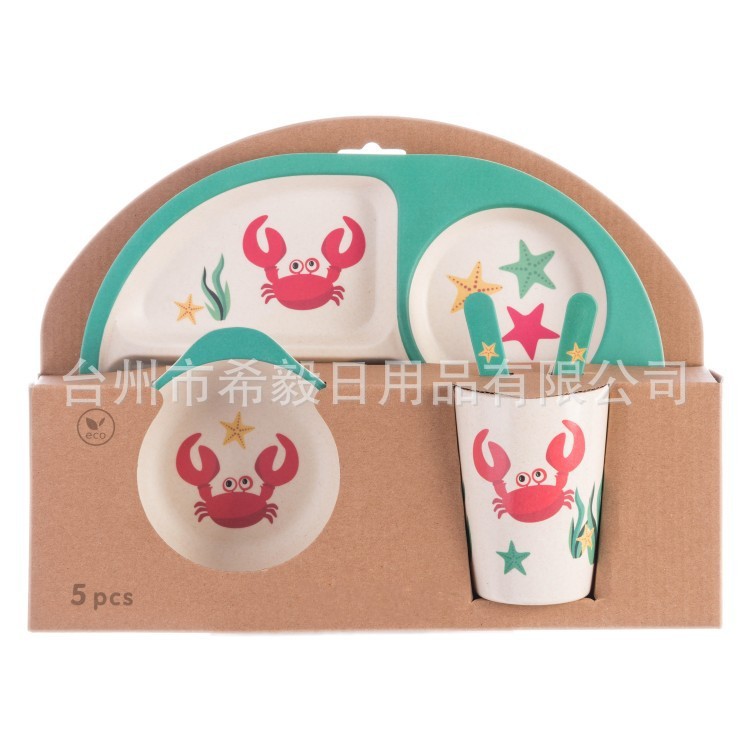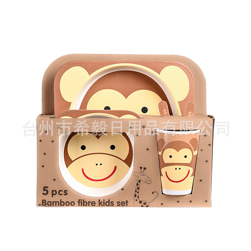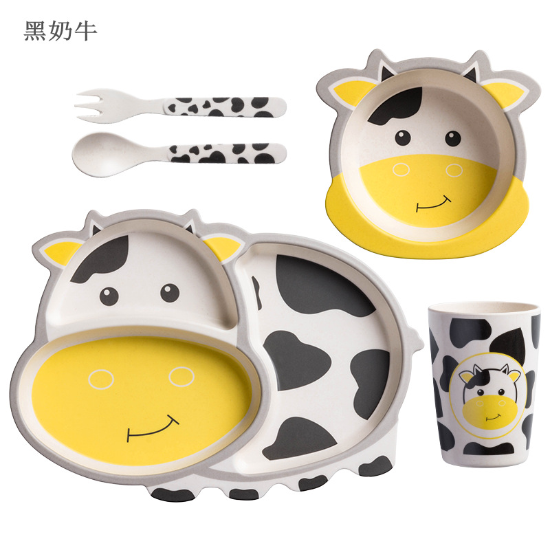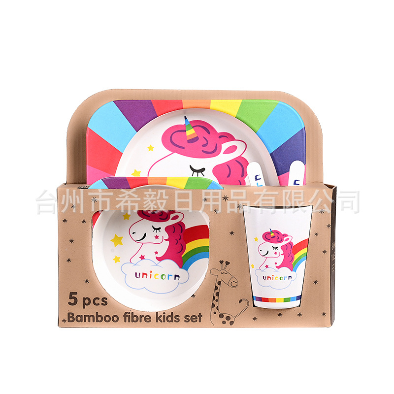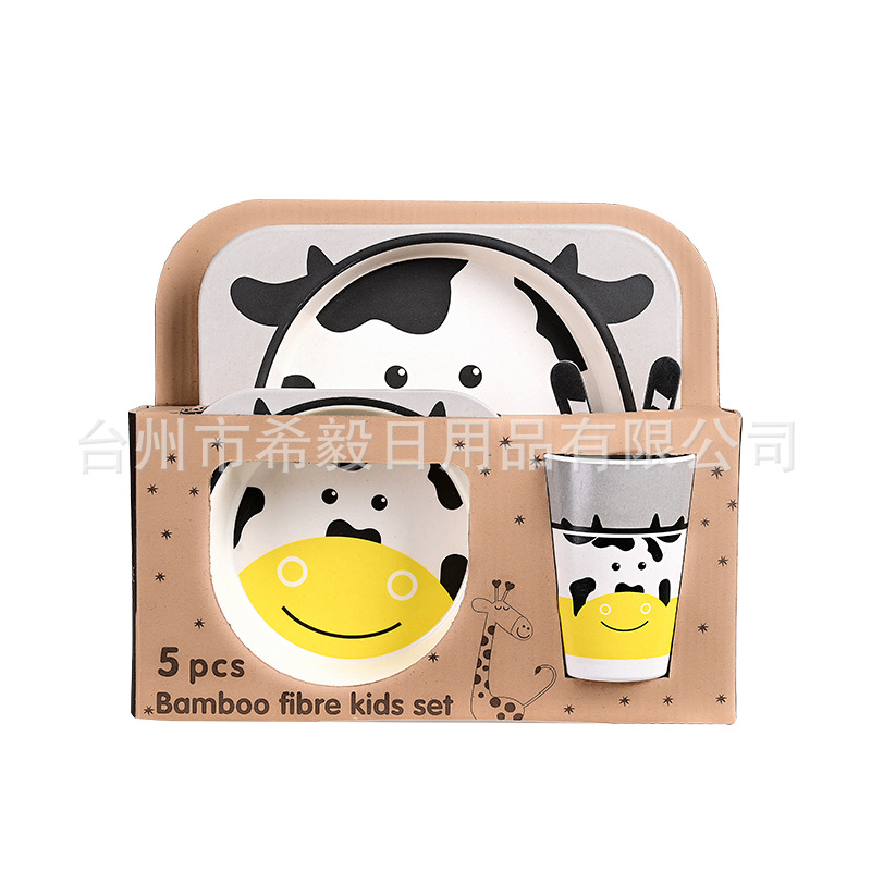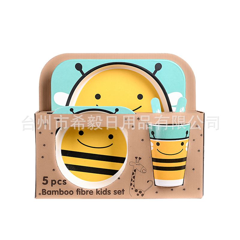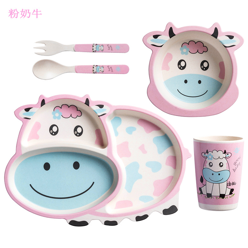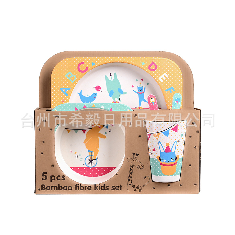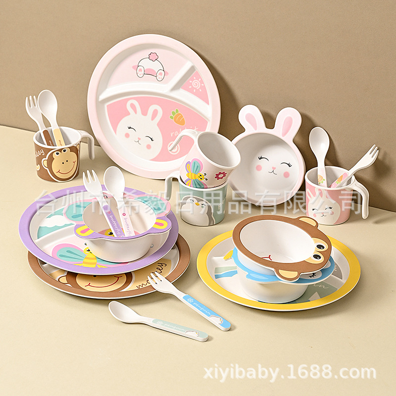Bamboo Fiber Creative Children's Tableware Set Kindergarten Baby Cartoon Bowl Complementary Food Grid Plate Five Piece Set Wholesale