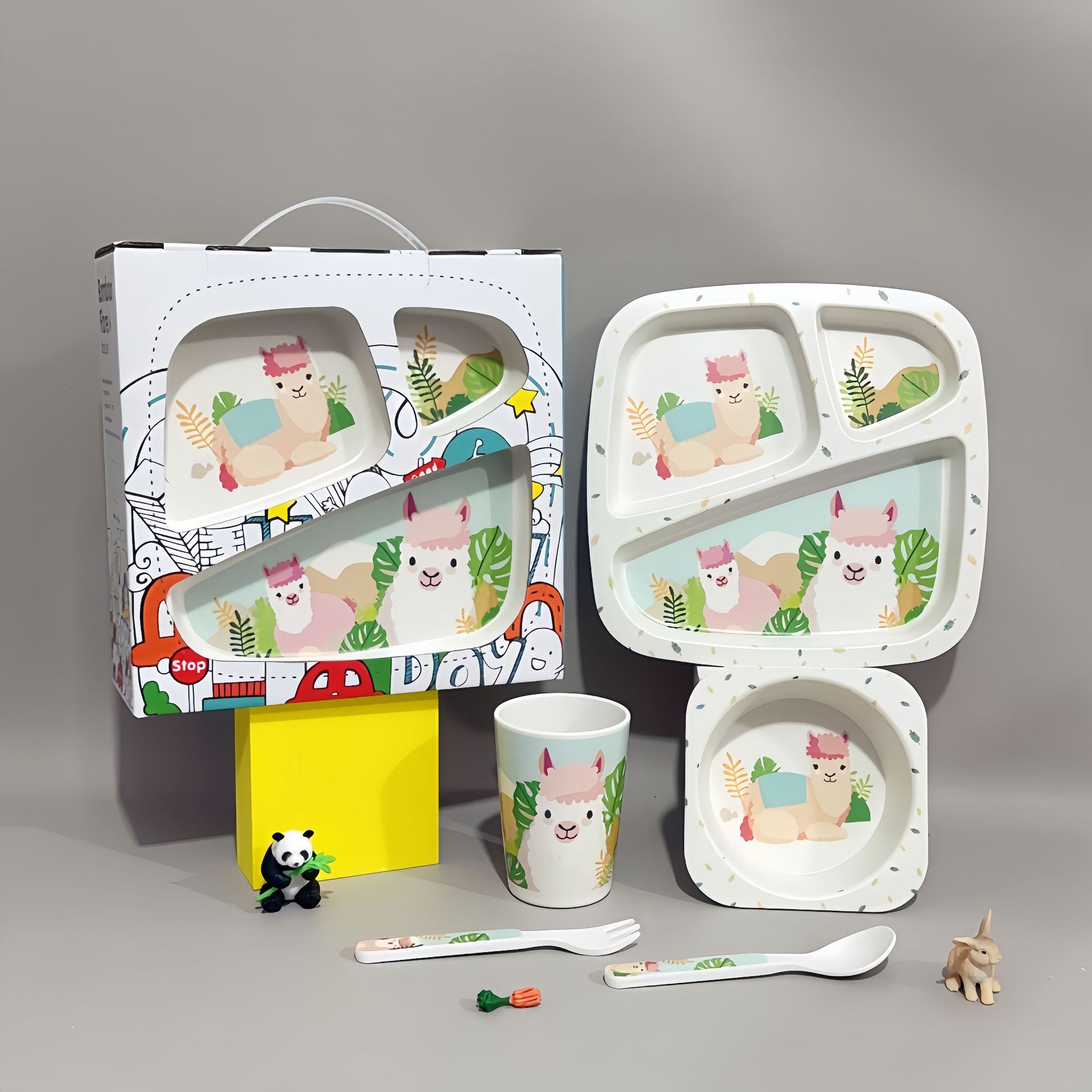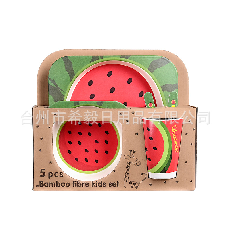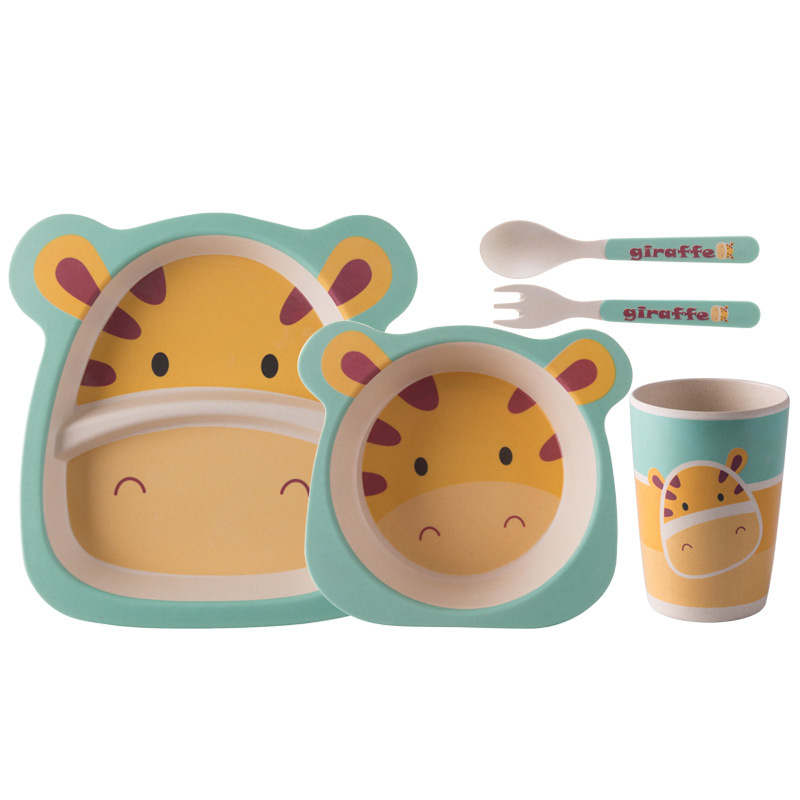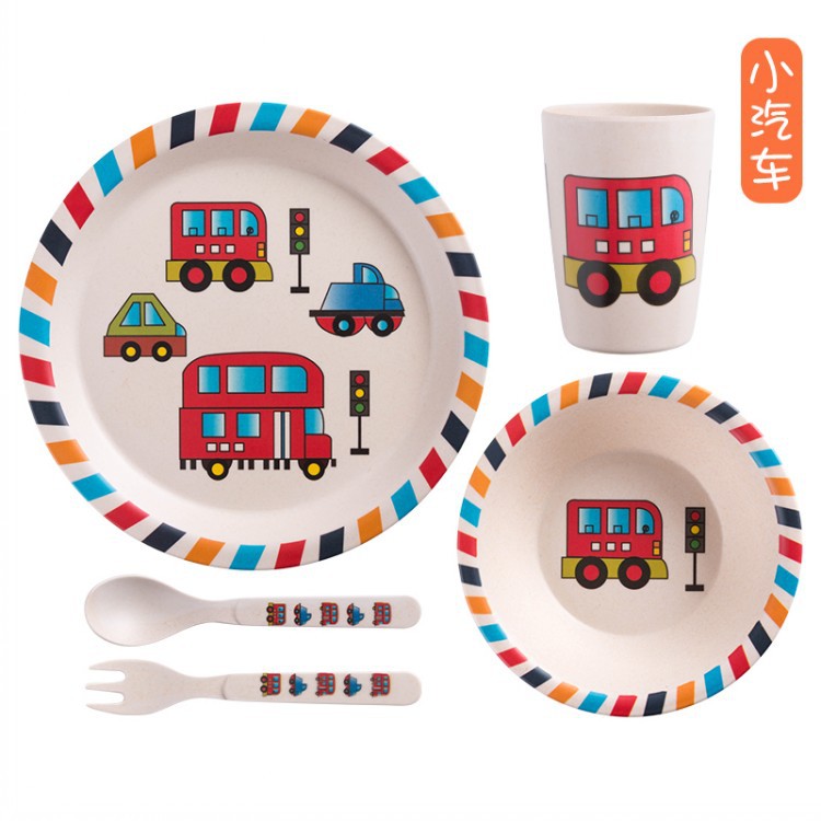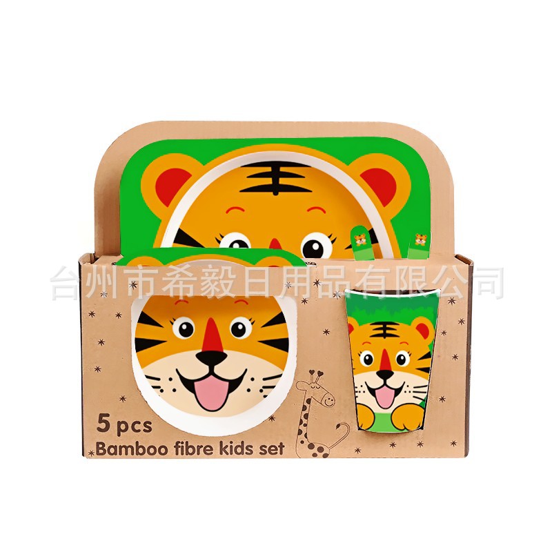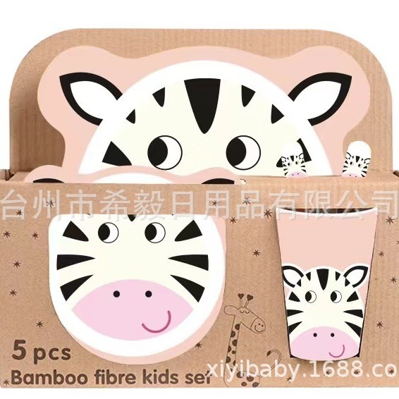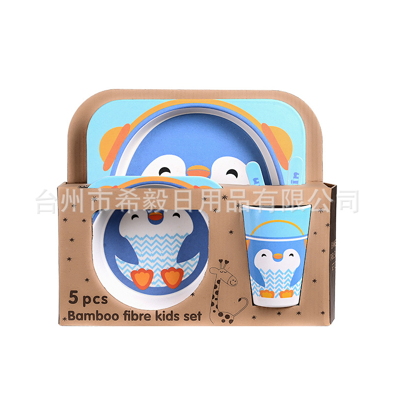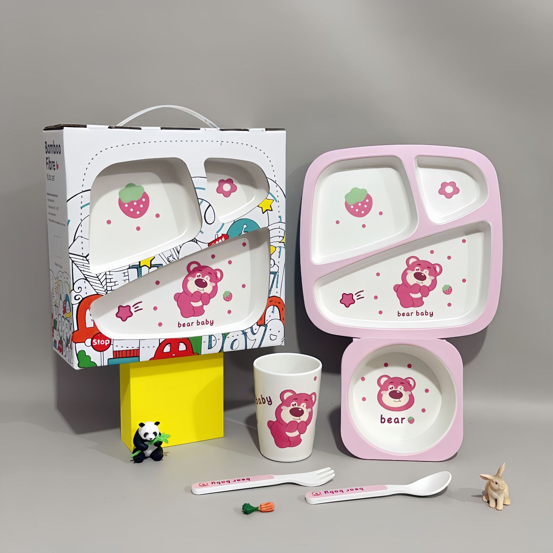 Bamboo Fiber Creative Children's Tableware Set Kindergarten Baby Cartoon Bowl Complementary Food Grid Plate Five Piece Set Wholesale