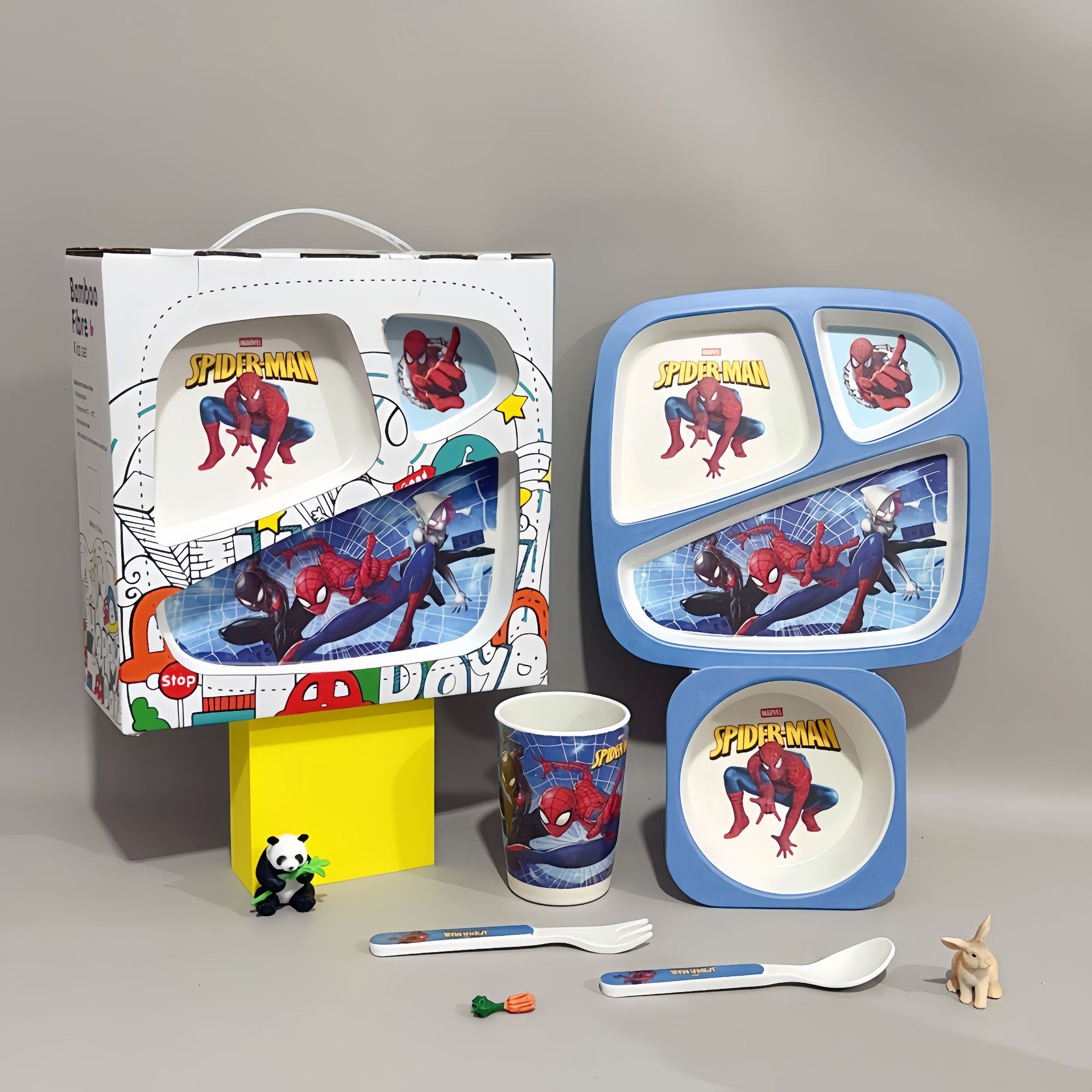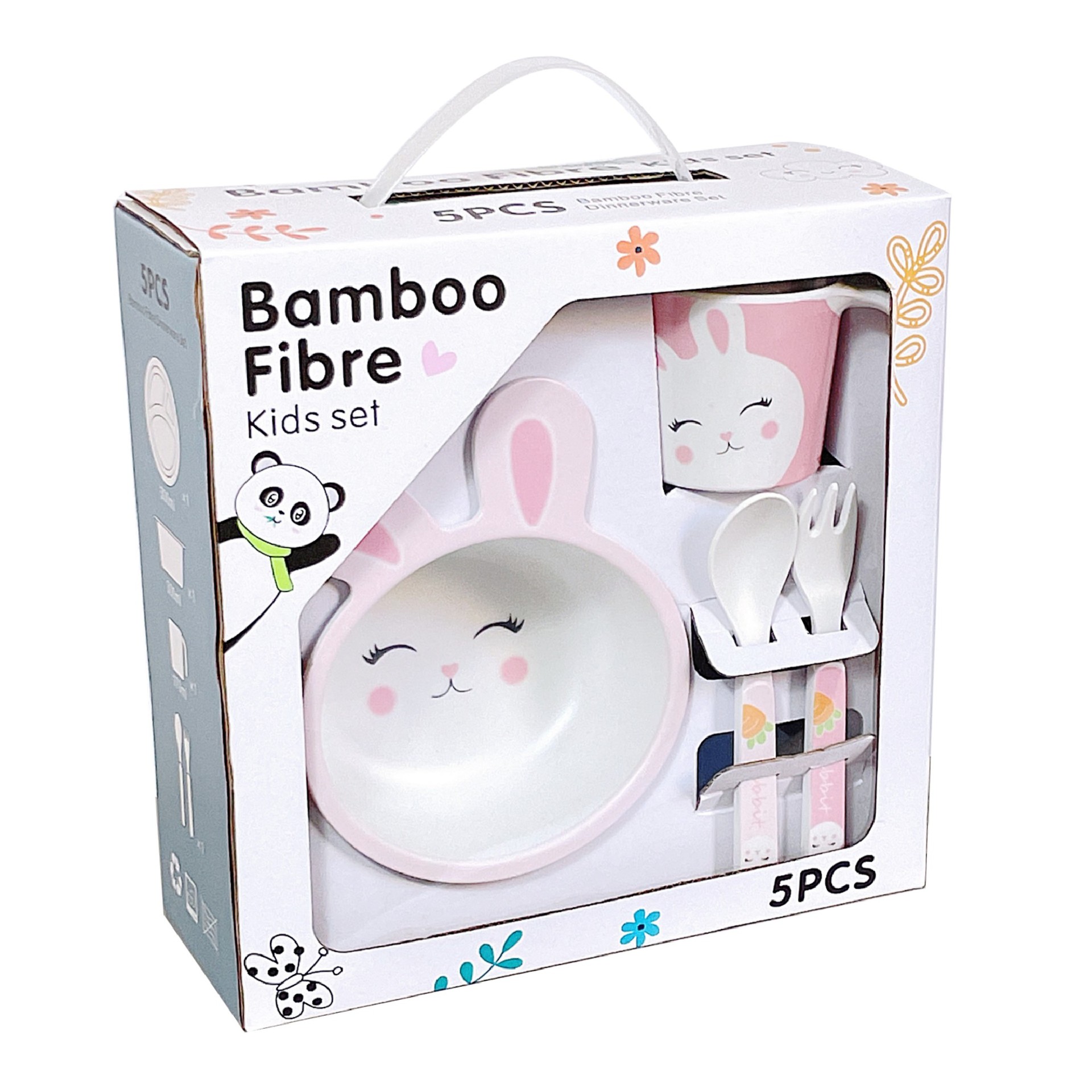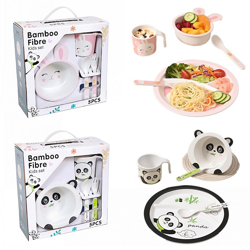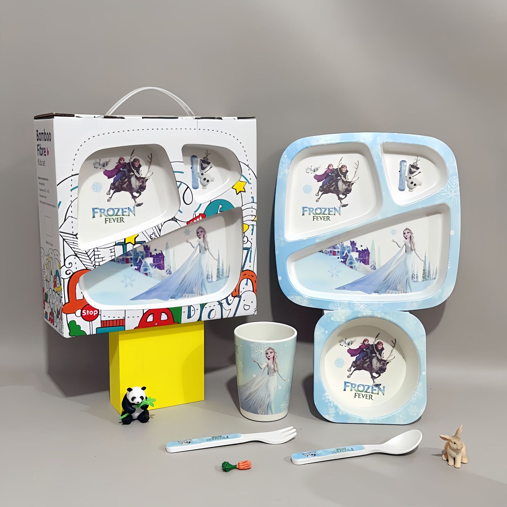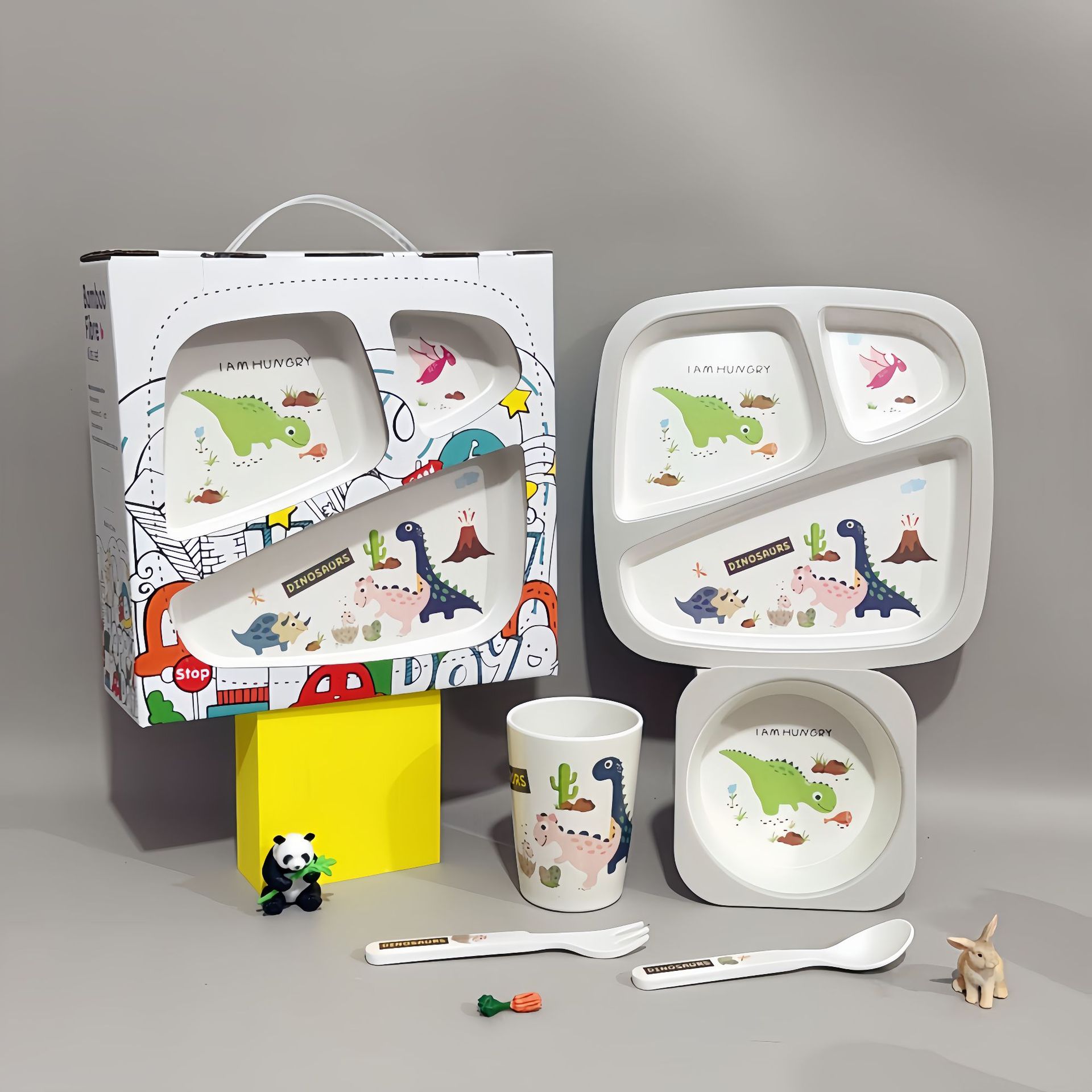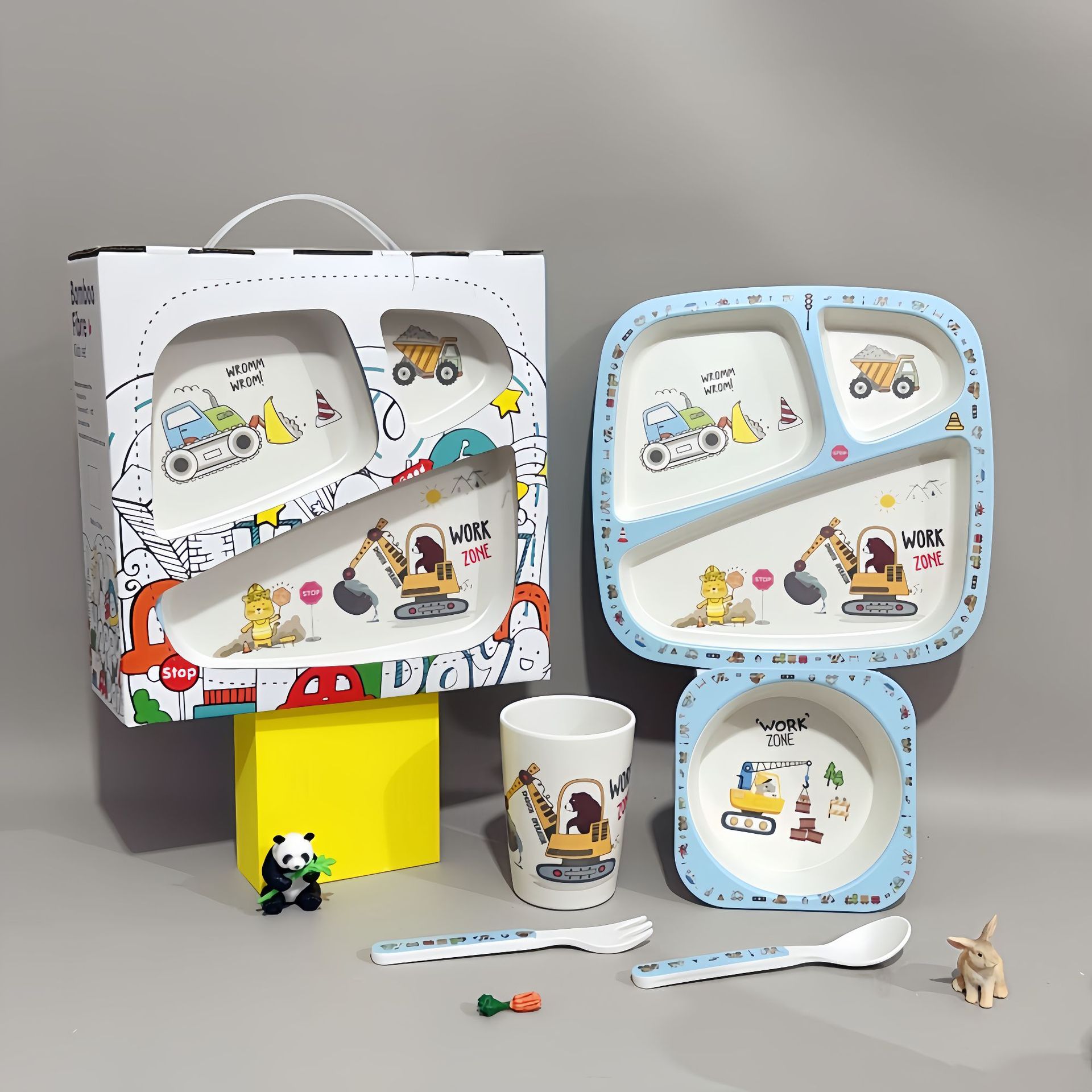 Bamboo Fiber Creative Children's Tableware Set Kindergarten Baby Cartoon Bowl Complementary Food Grid Plate Five Piece Set Wholesale