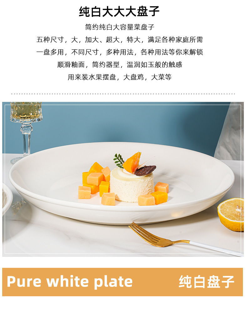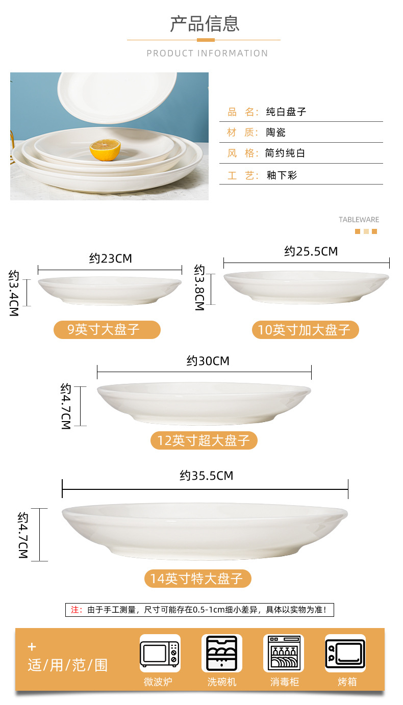 Керамическая домашняя большая тарелка, увеличенный диск, большая глубокая тарелка, плоская фруктовая тарелка, креативная 14 - дюймовая тарелка, нарезанная перцем