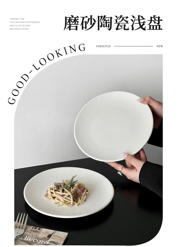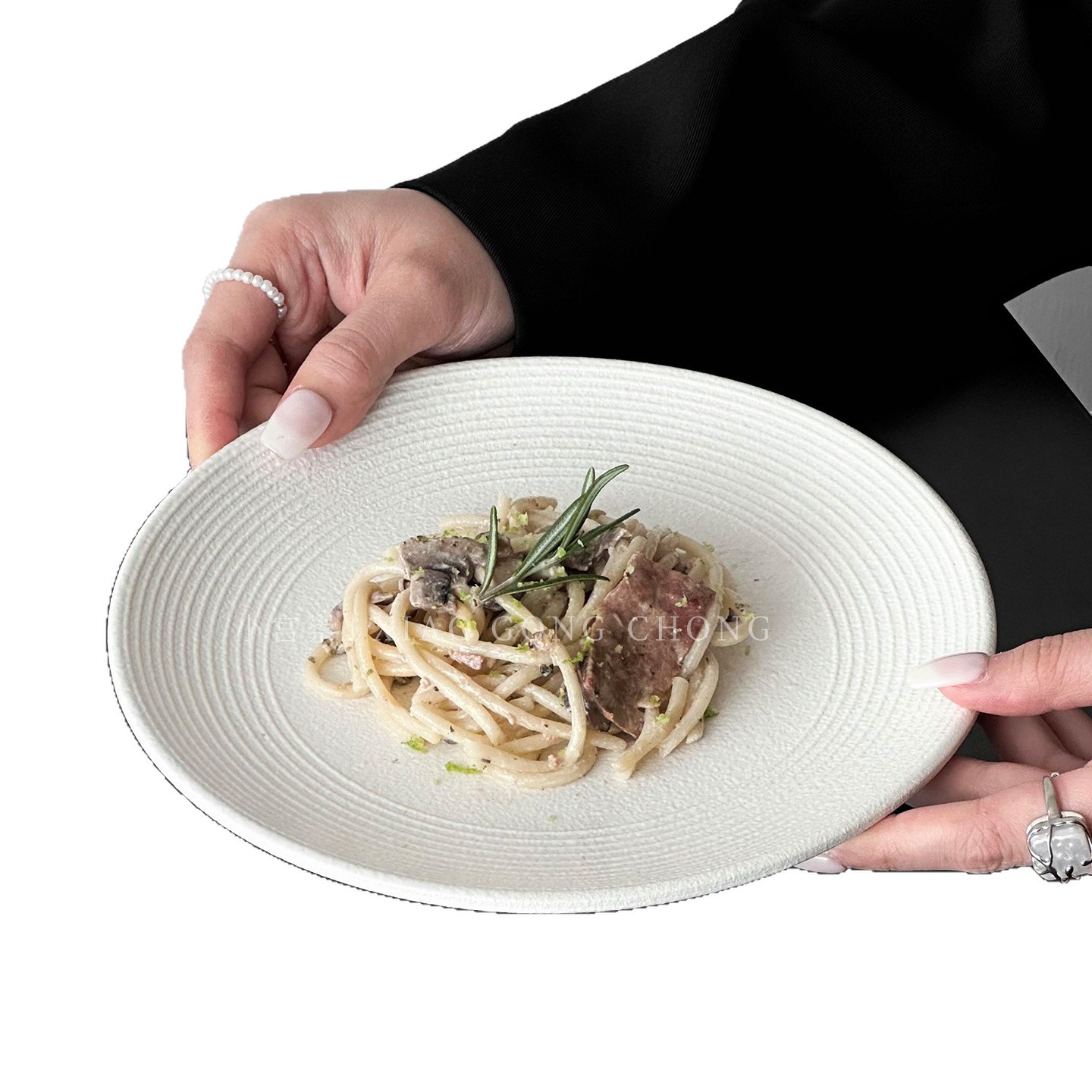 Minimally threaded ceramic pasta dish with high-end and creative Western cuisine dish, steak dish, household vegetable dish, fruit salad dish