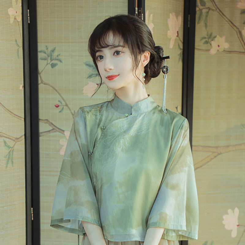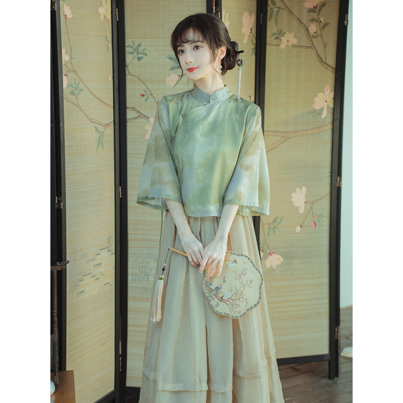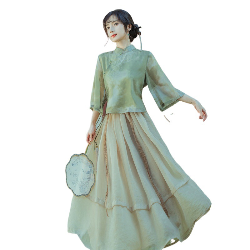 Новый китайский дзэн чай костюм халат два набора ежедневных улучшений китайская одежда литература и искусство стиль тонкое нежное платье лето