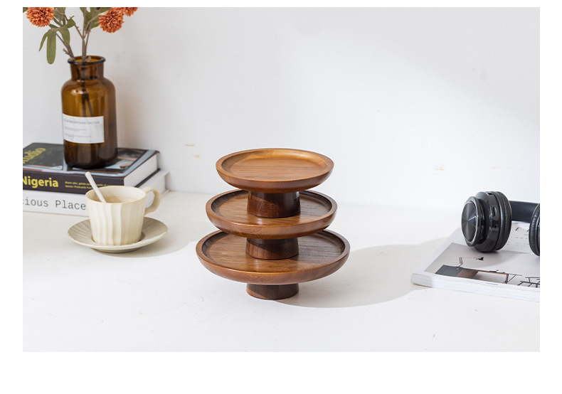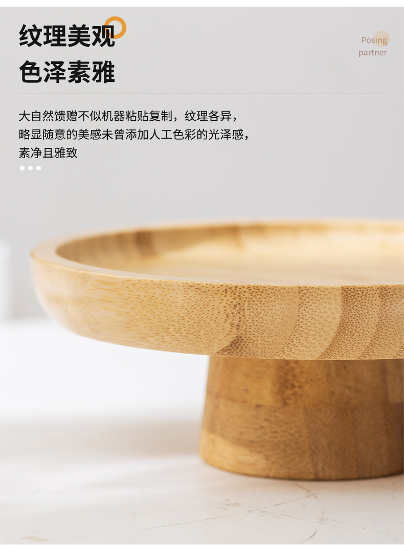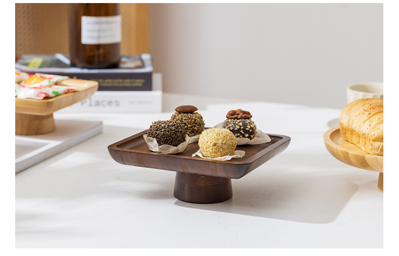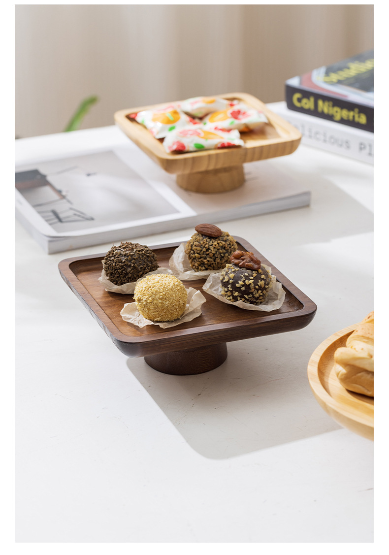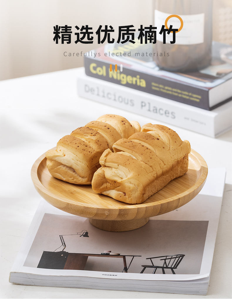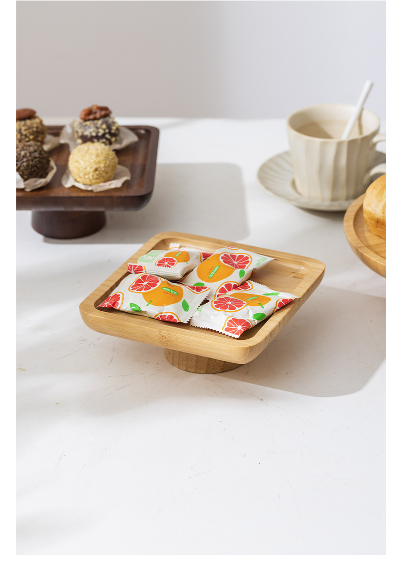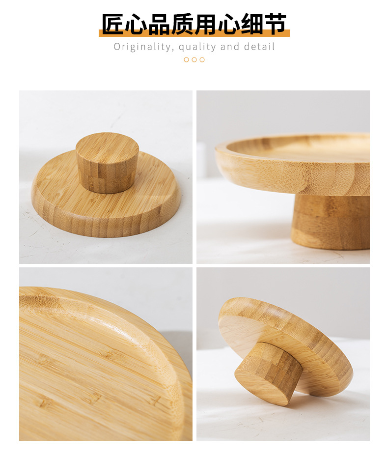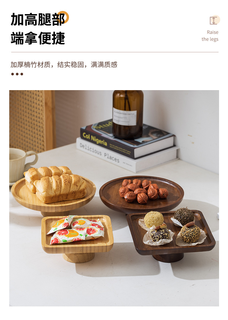 Simple and retro wooden high leg plate for household living room Dim sum tray dessert table display frame bamboo high leg fruit plate