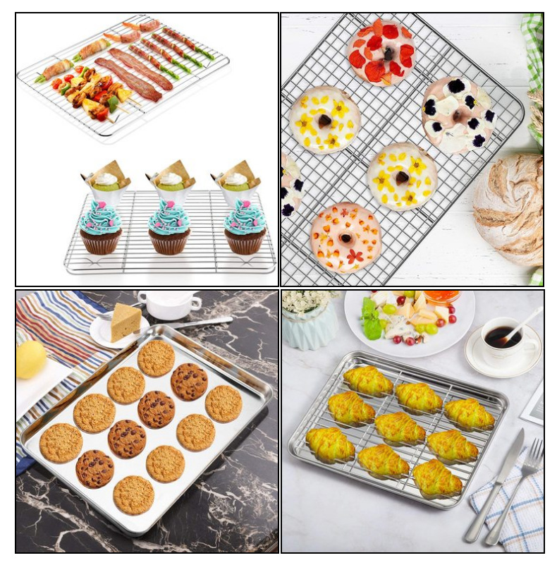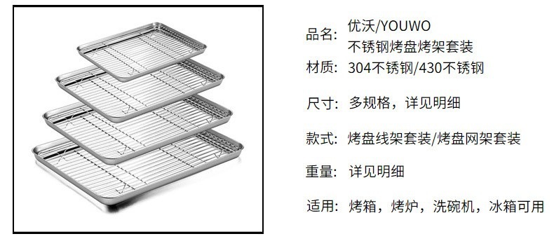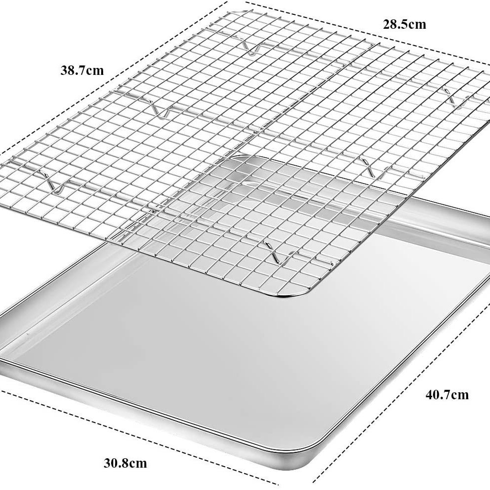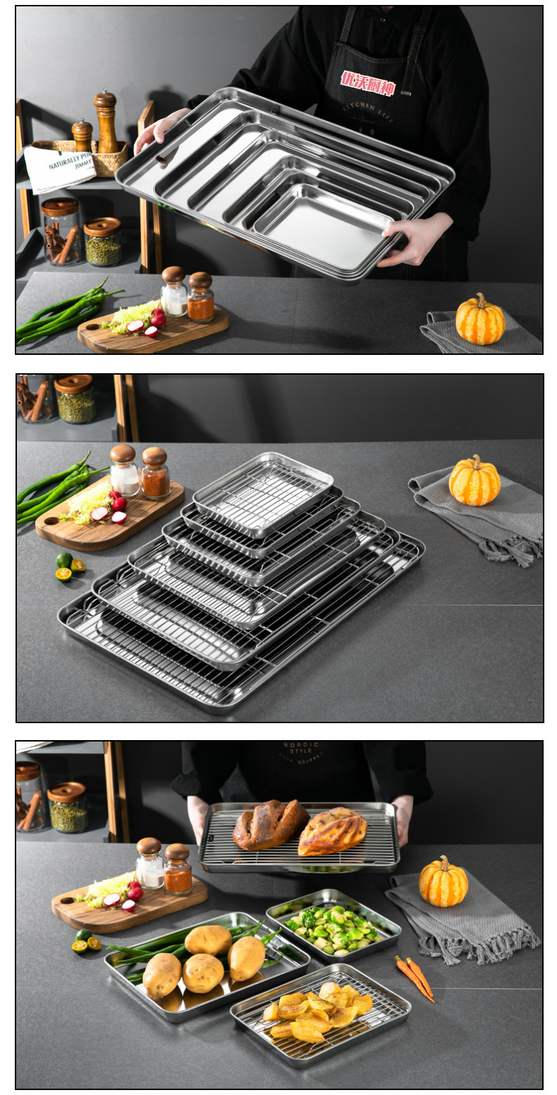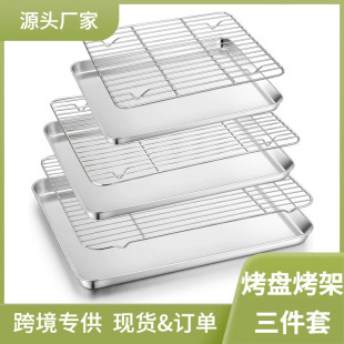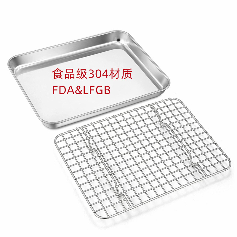 Household flat bottomed stainless steel baking tray cooling rack set, grid distribution frame, 304 square tray, multi-purpose oven tray