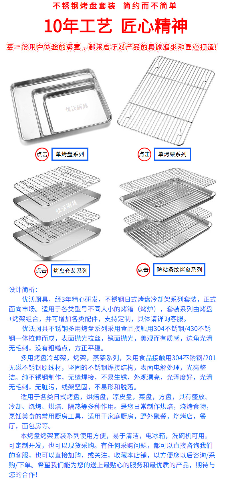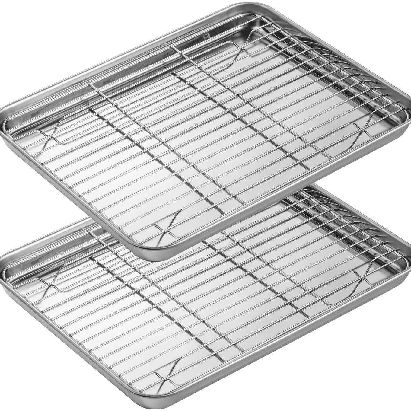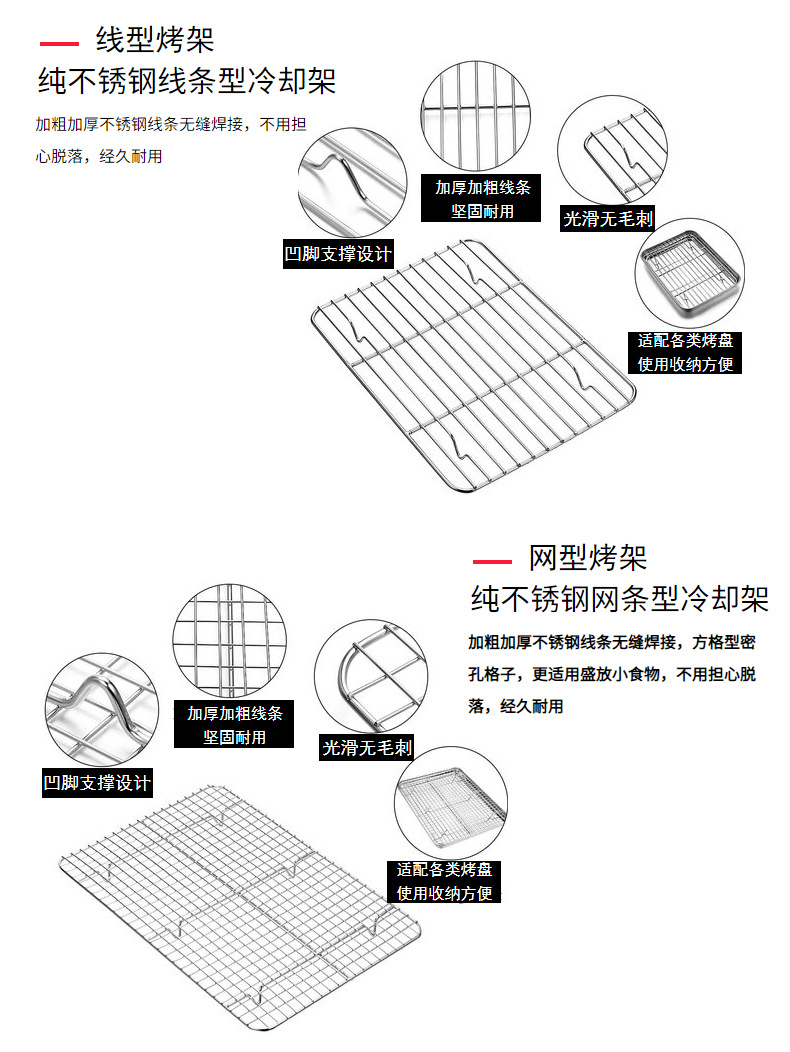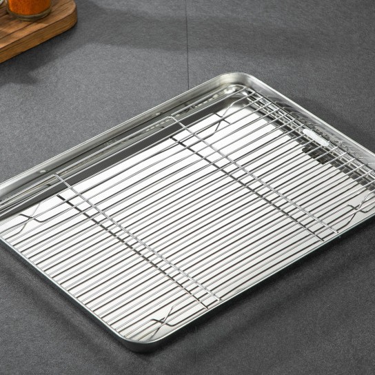 Household flat bottomed stainless steel baking tray cooling rack set, grid distribution frame, 304 square tray, multi-purpose oven tray