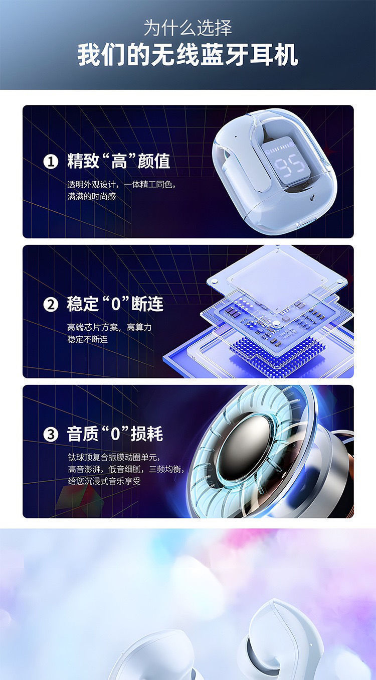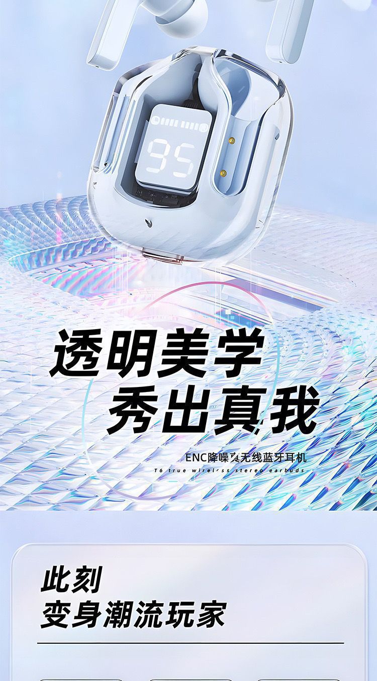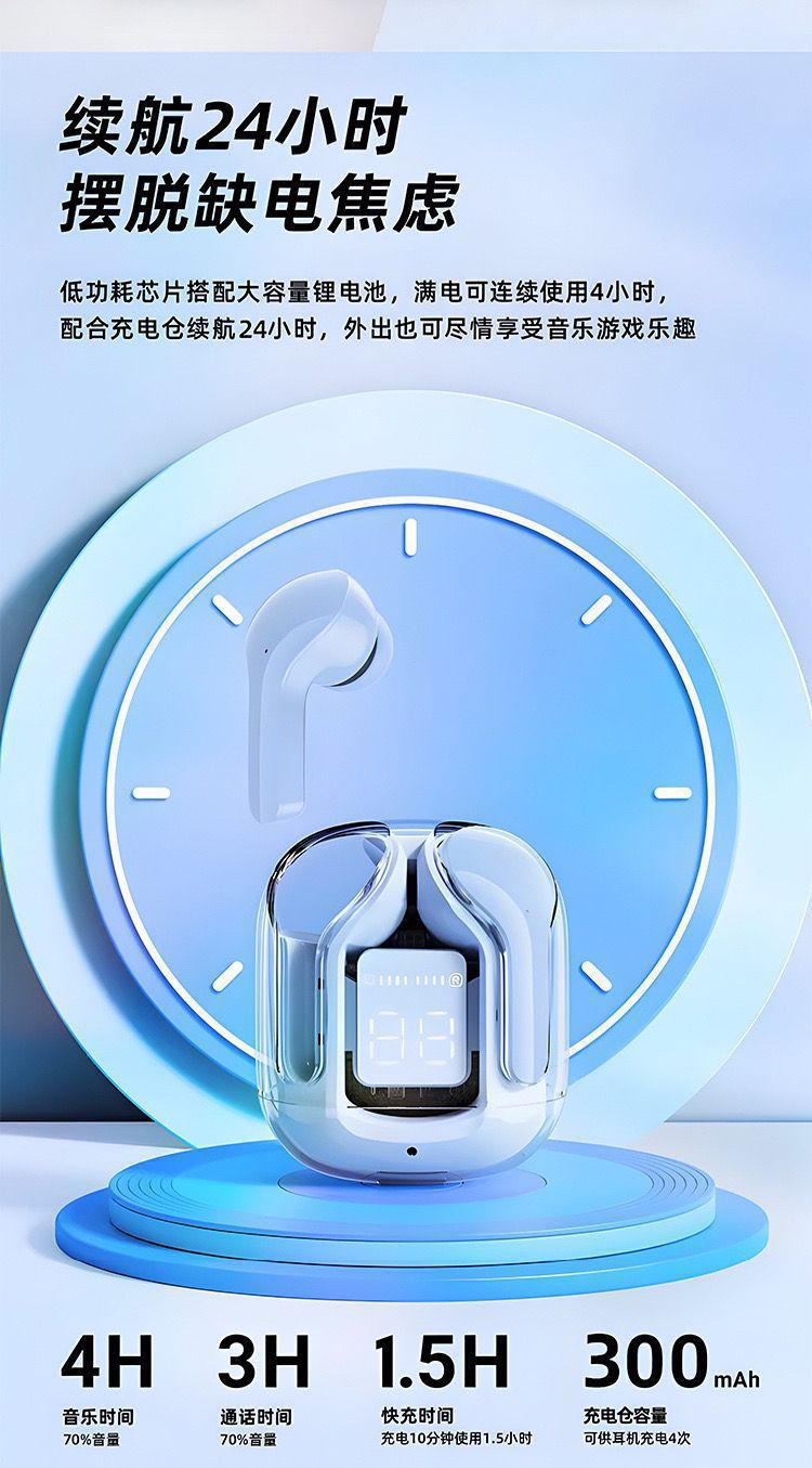 Ultra high aesthetic air31 transparent high quality in ear sports digital display wireless Bluetooth earphones from the factory