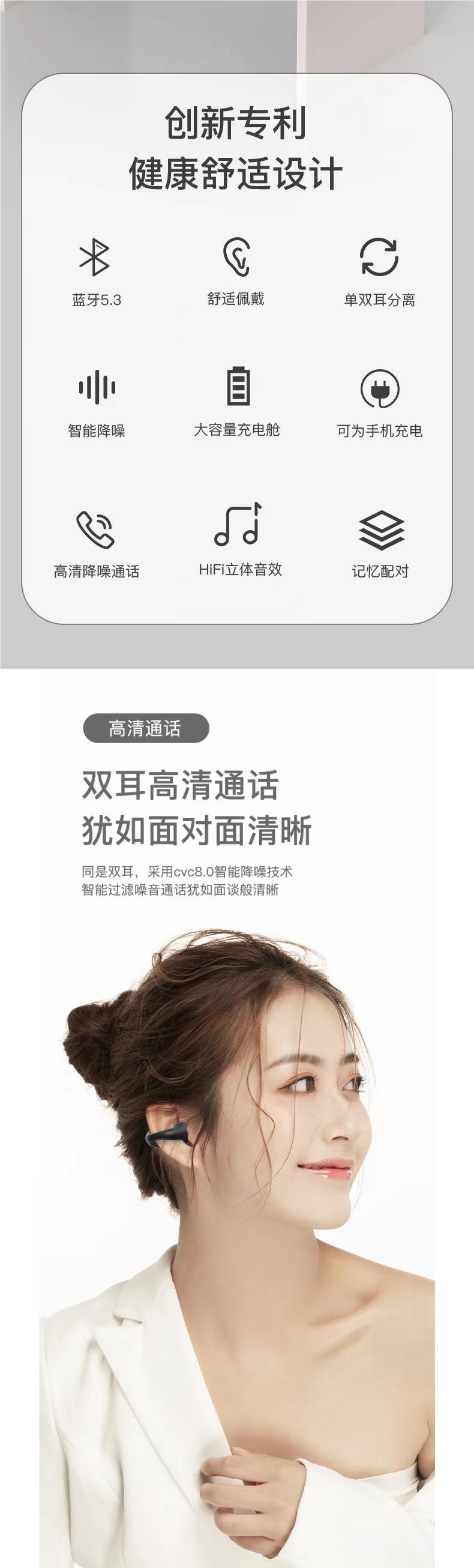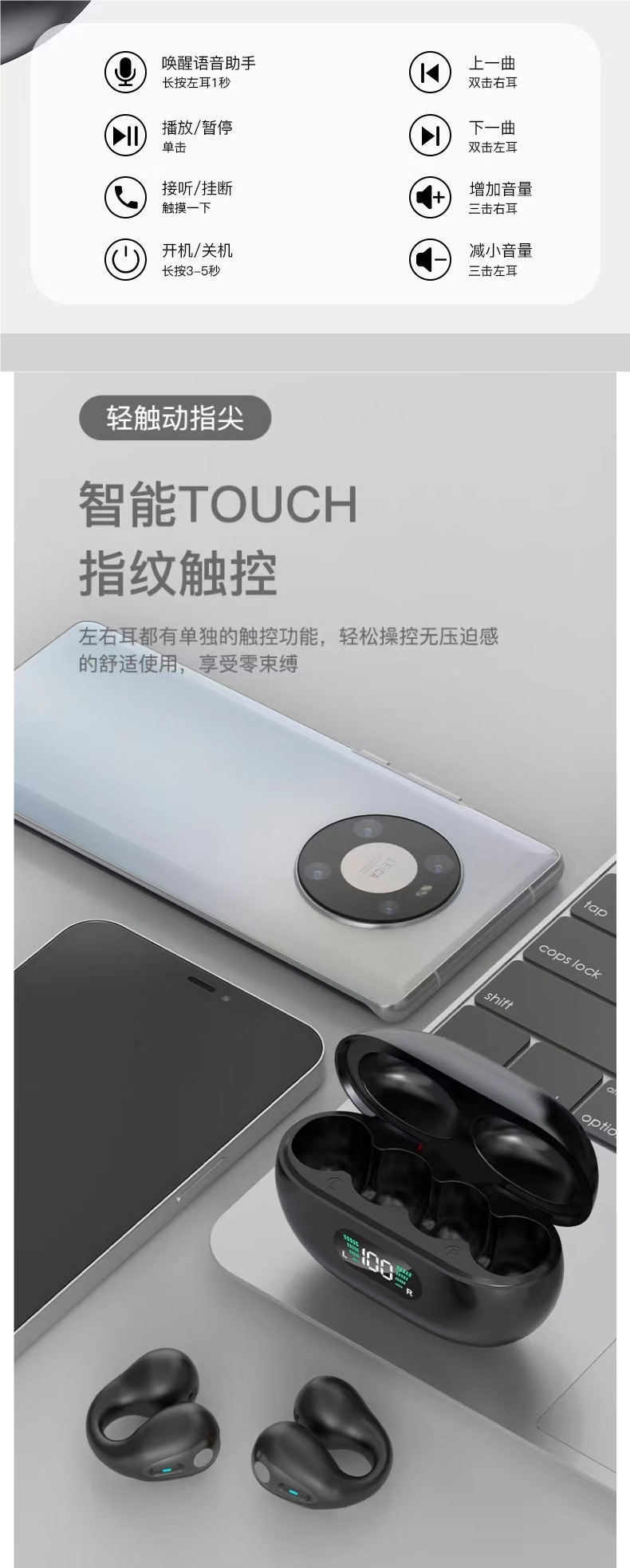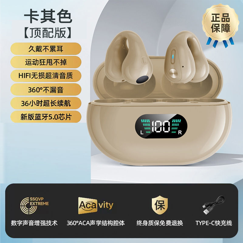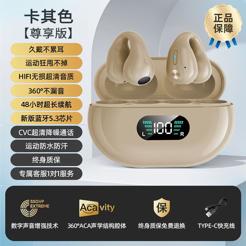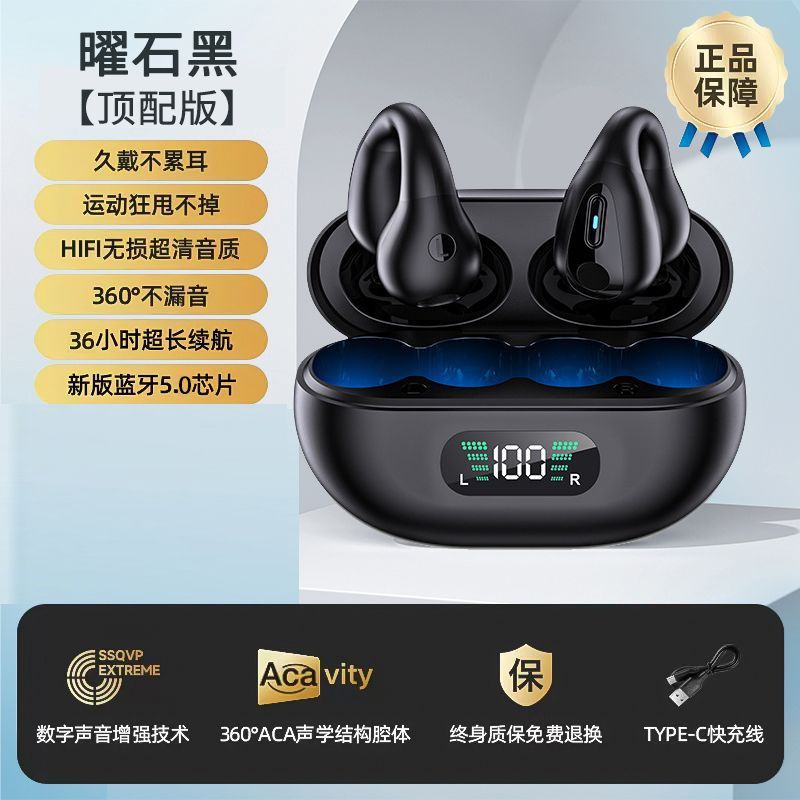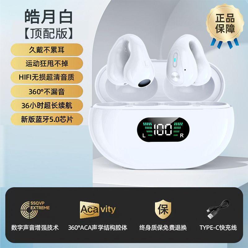 True bone conduction clip on Bluetooth earphones wireless 2025 new dual ear high aesthetic value ultra clear sound quality ultra long standby