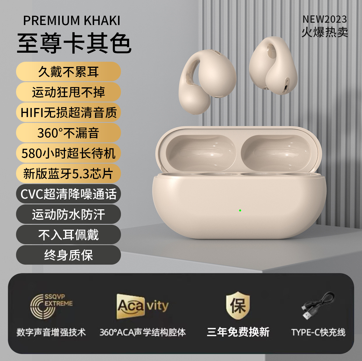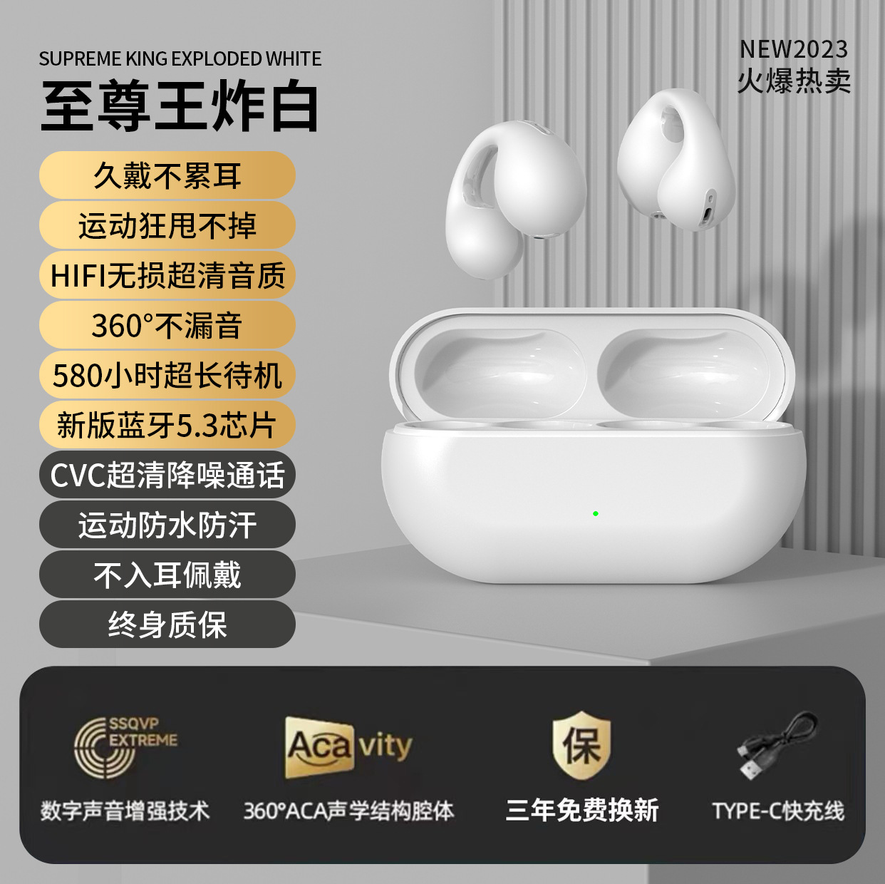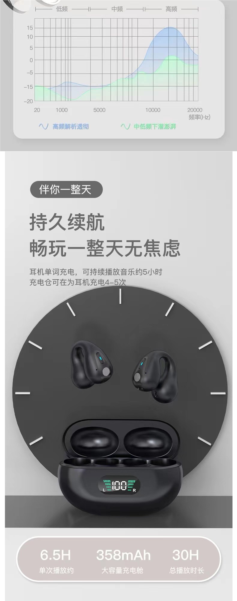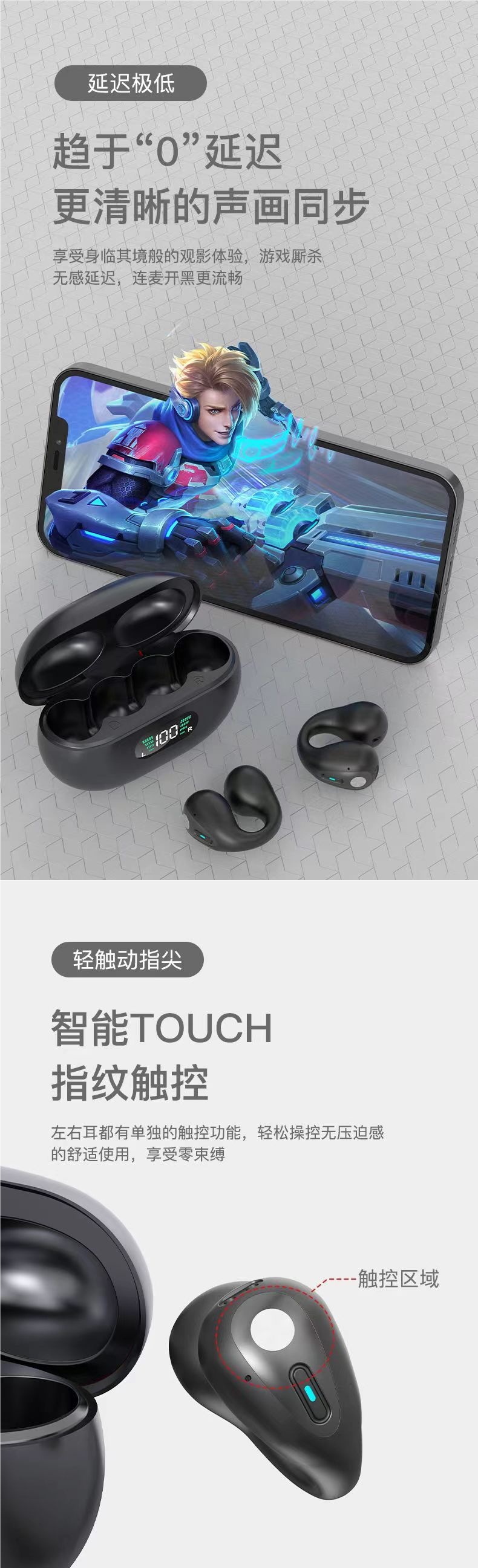 True bone conduction clip on Bluetooth earphones wireless 2025 new dual ear high aesthetic value ultra clear sound quality ultra long standby